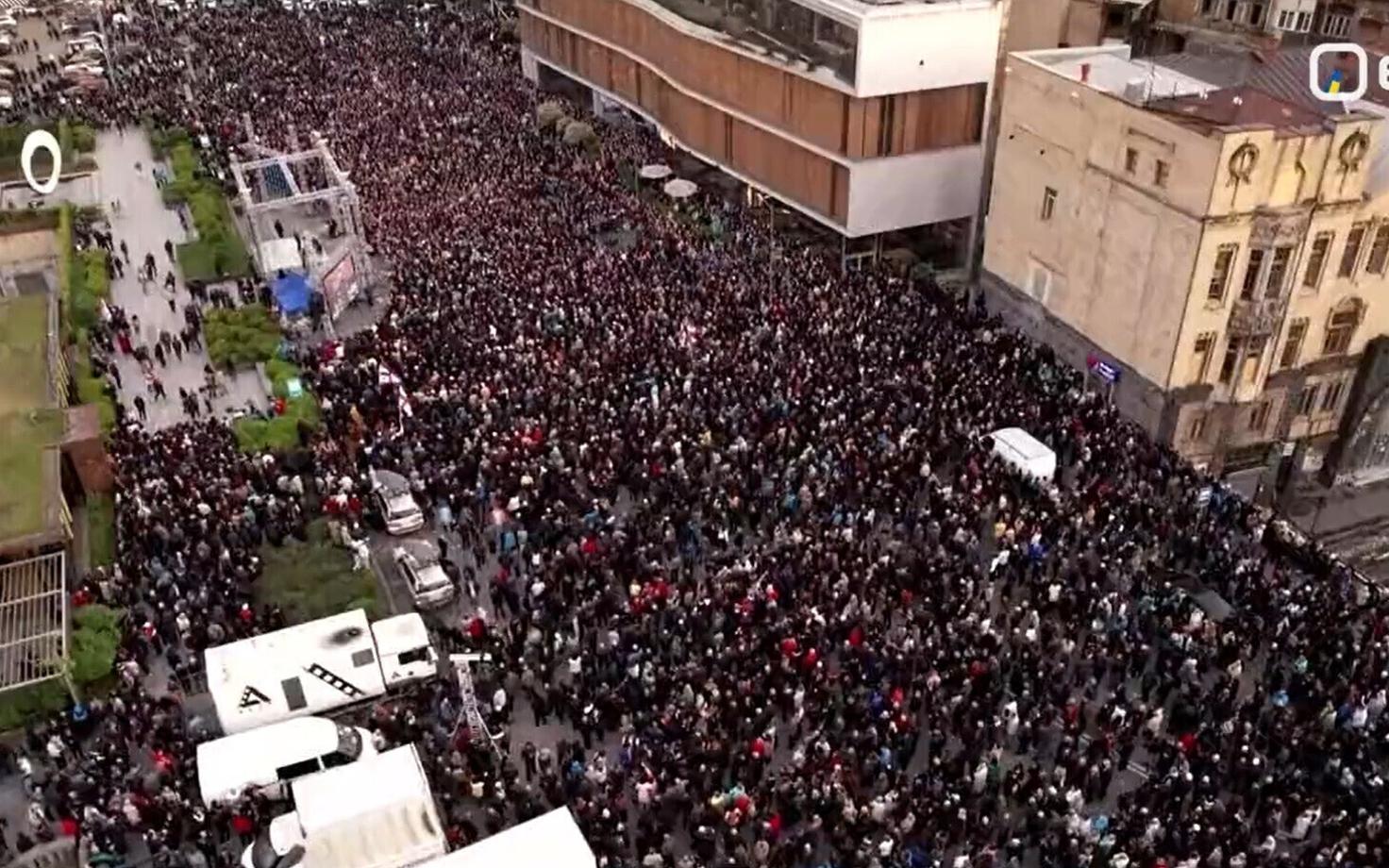 Тысячи людей собрались в понедельник, 1 мая, в столице Грузии Тбилиси, выразить свой протест против войны. Демонстрация, организованная гражданскими активистами, требовала действий от правительства, чтобы предотвратить втягивание страны в иностранный военный конфликт.