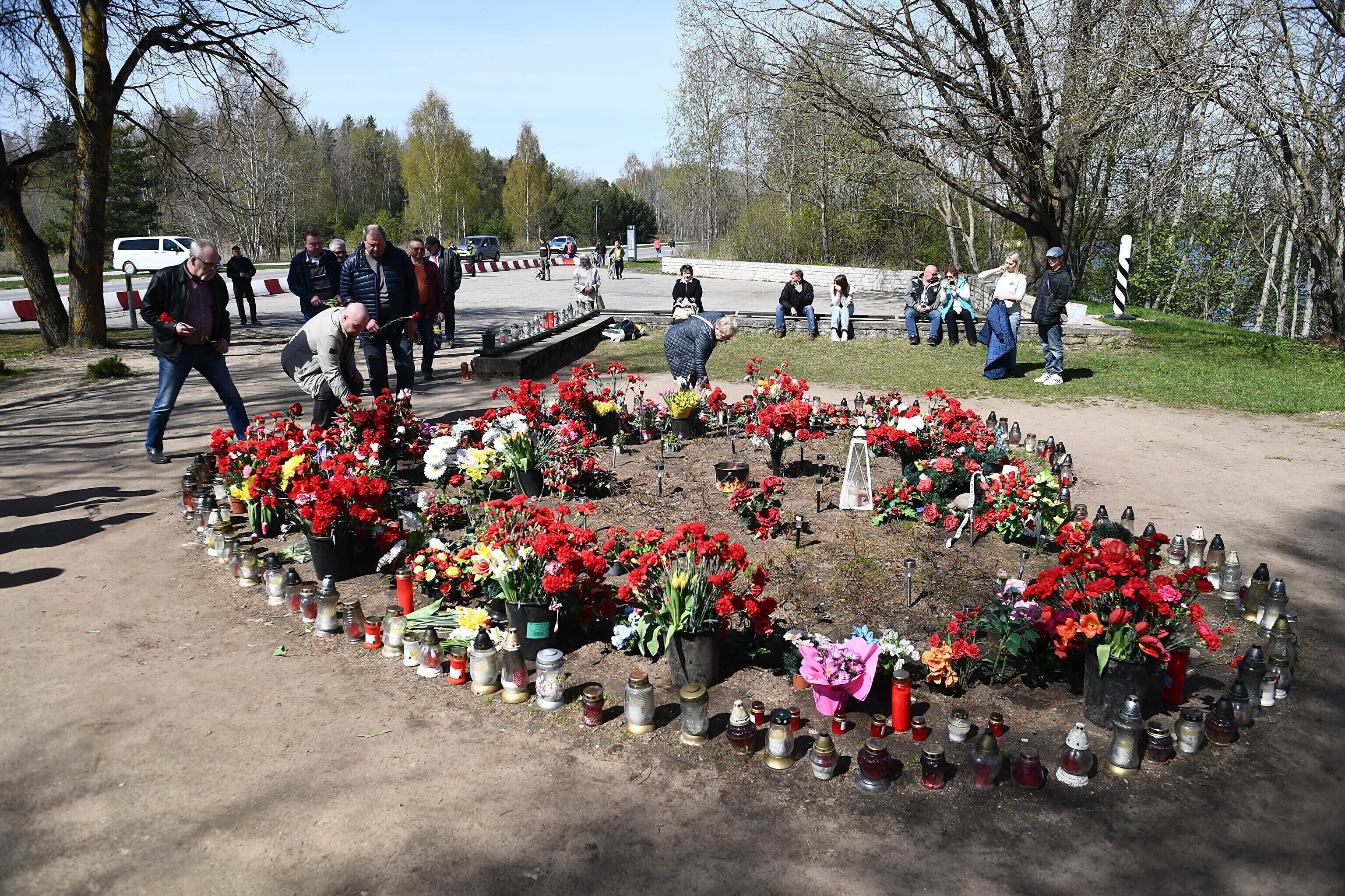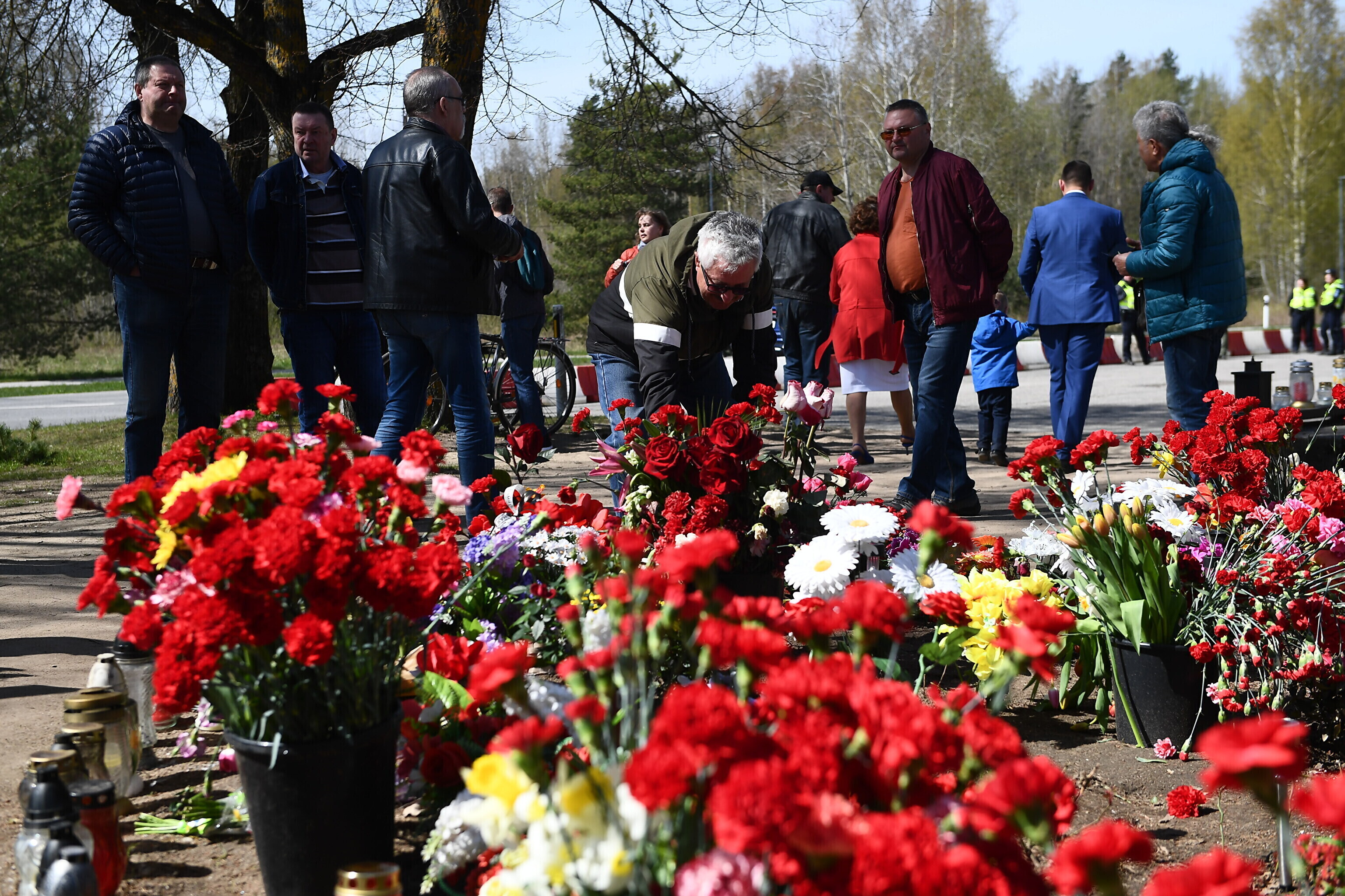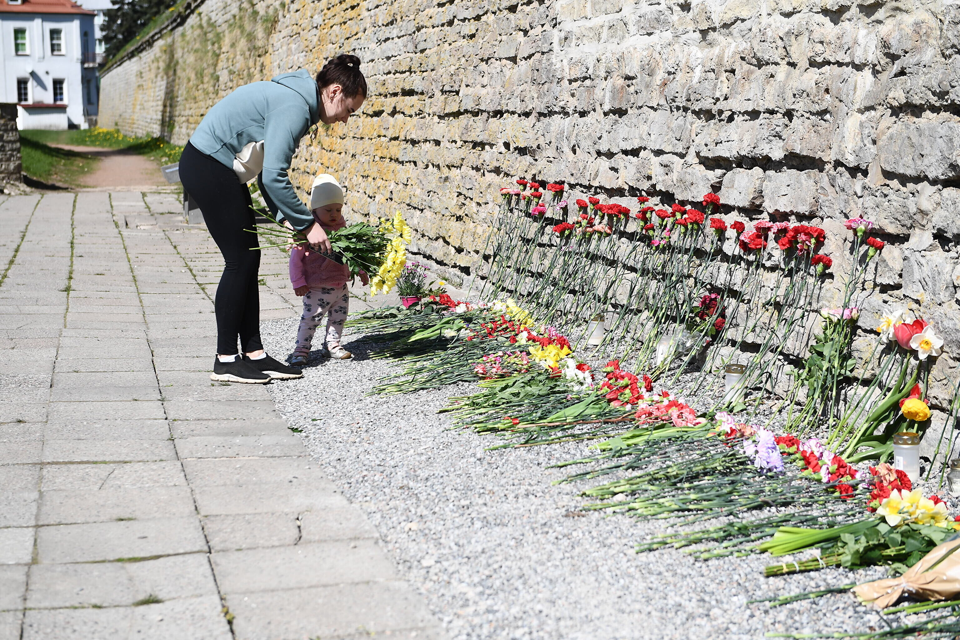 Как отмечает корреспондент ERR в Нарве, возлагают цветы в том числе в тех местах, где ранее стояли памятники, демонтированные по решению правительства в прошлом году.