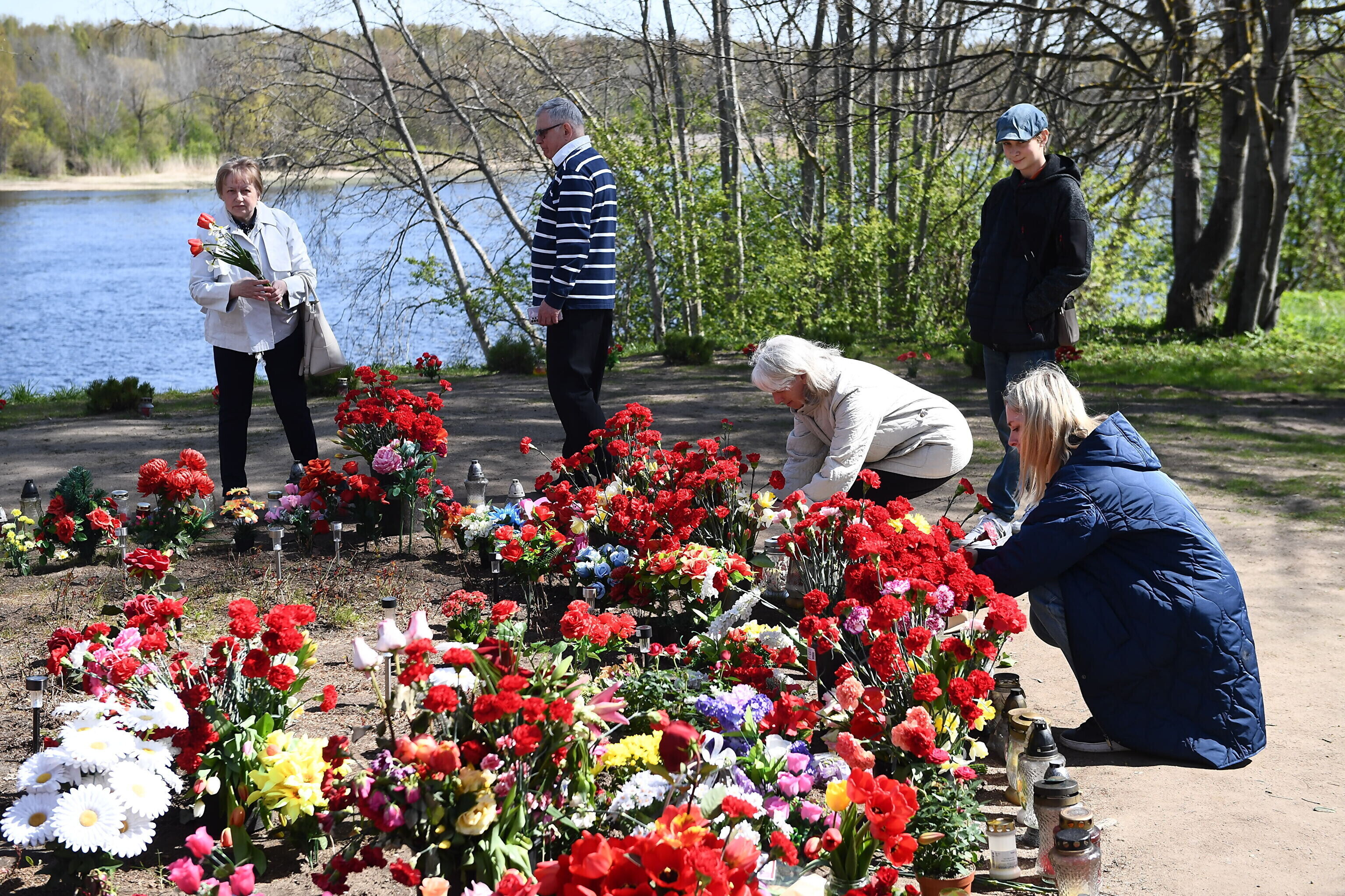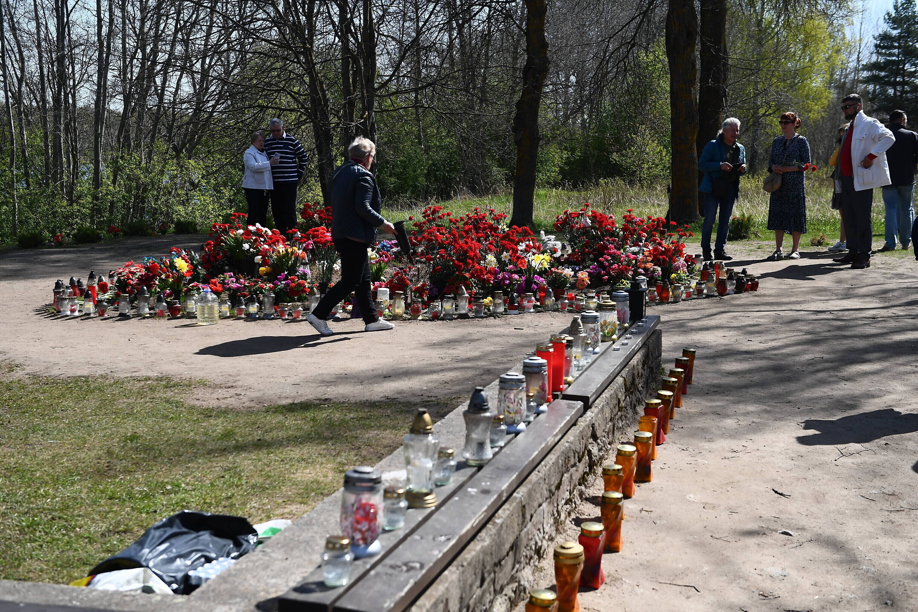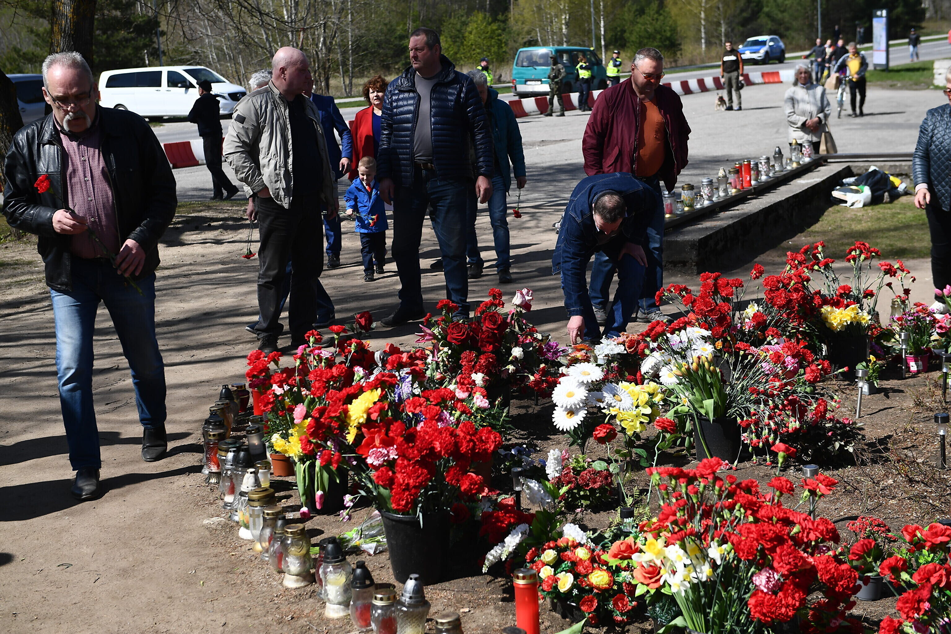Как отмечает корреспондент ERR в Нарве, возлагают цветы в том числе в тех местах, где ранее стояли памятники, демонтированные по решению правительства в прошлом году.