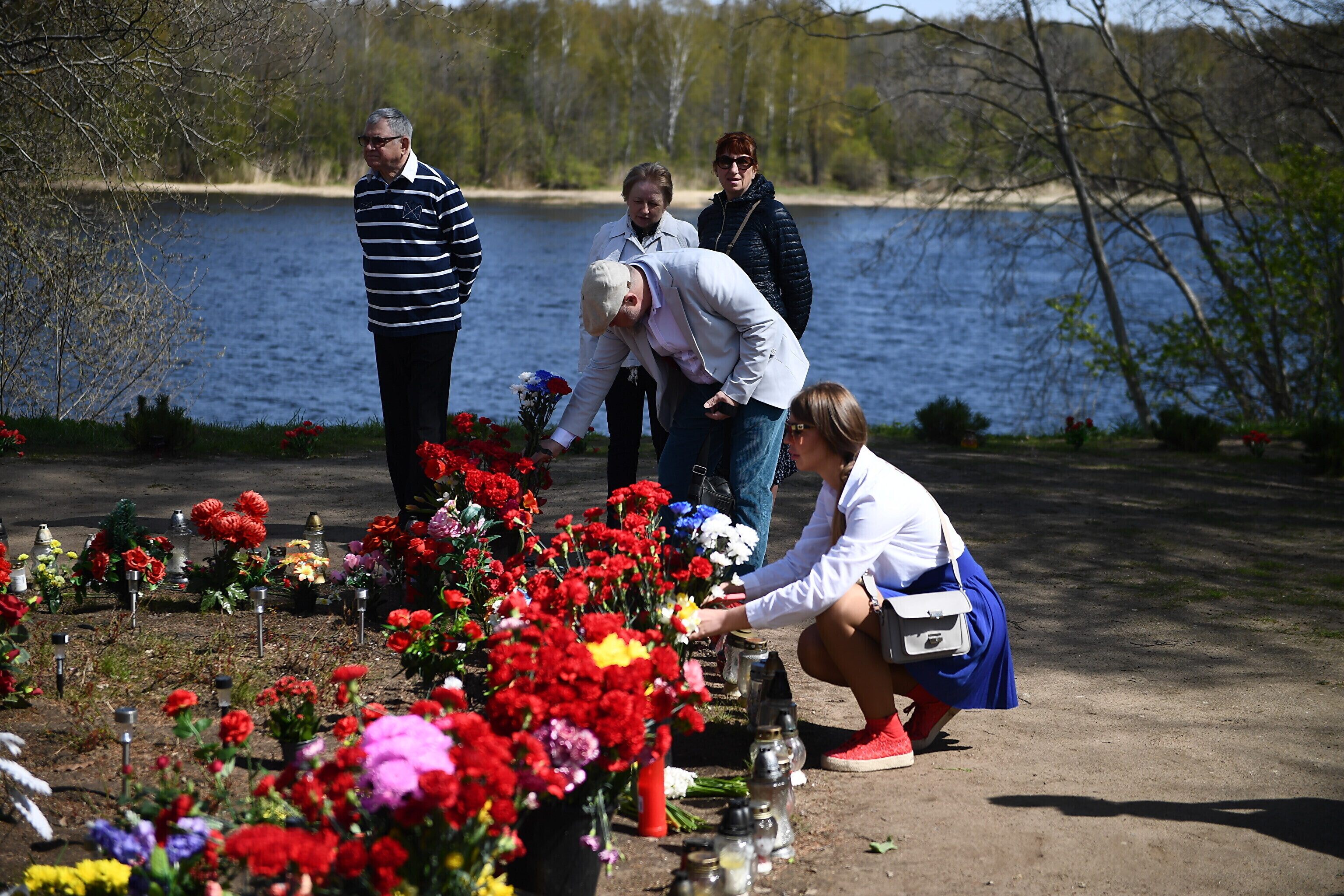 Собрались люди и на месте, где ранее был установлен советский танк.