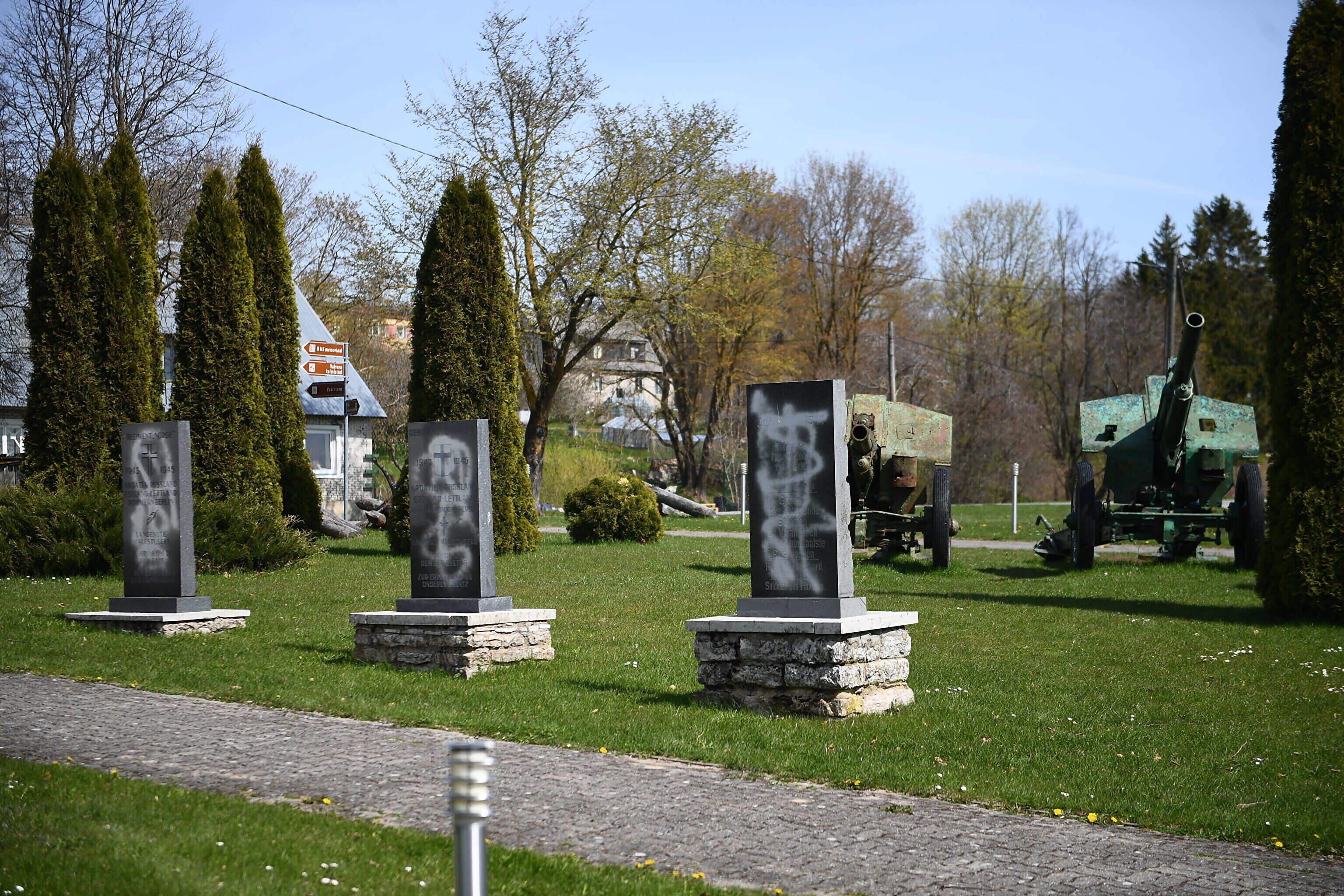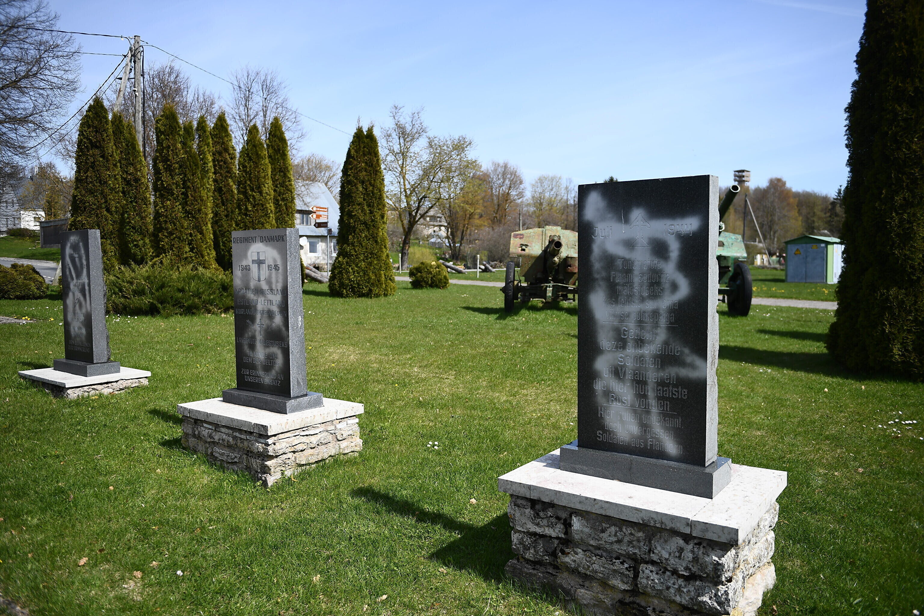 "В месте, где стоит крест 20-й дивизии Ваффен СС, уничтожены три мемориальных камня. Они полностью разрушены. Помимо этого вандалы облили краской мемориальные плиты, которые находятся рядом с местным музеем. Друг от друга эти объекты находятся на расстоянии примерно 700-800 метров", - рассказал с места событий корреспондент ERR Сергей Степанов.