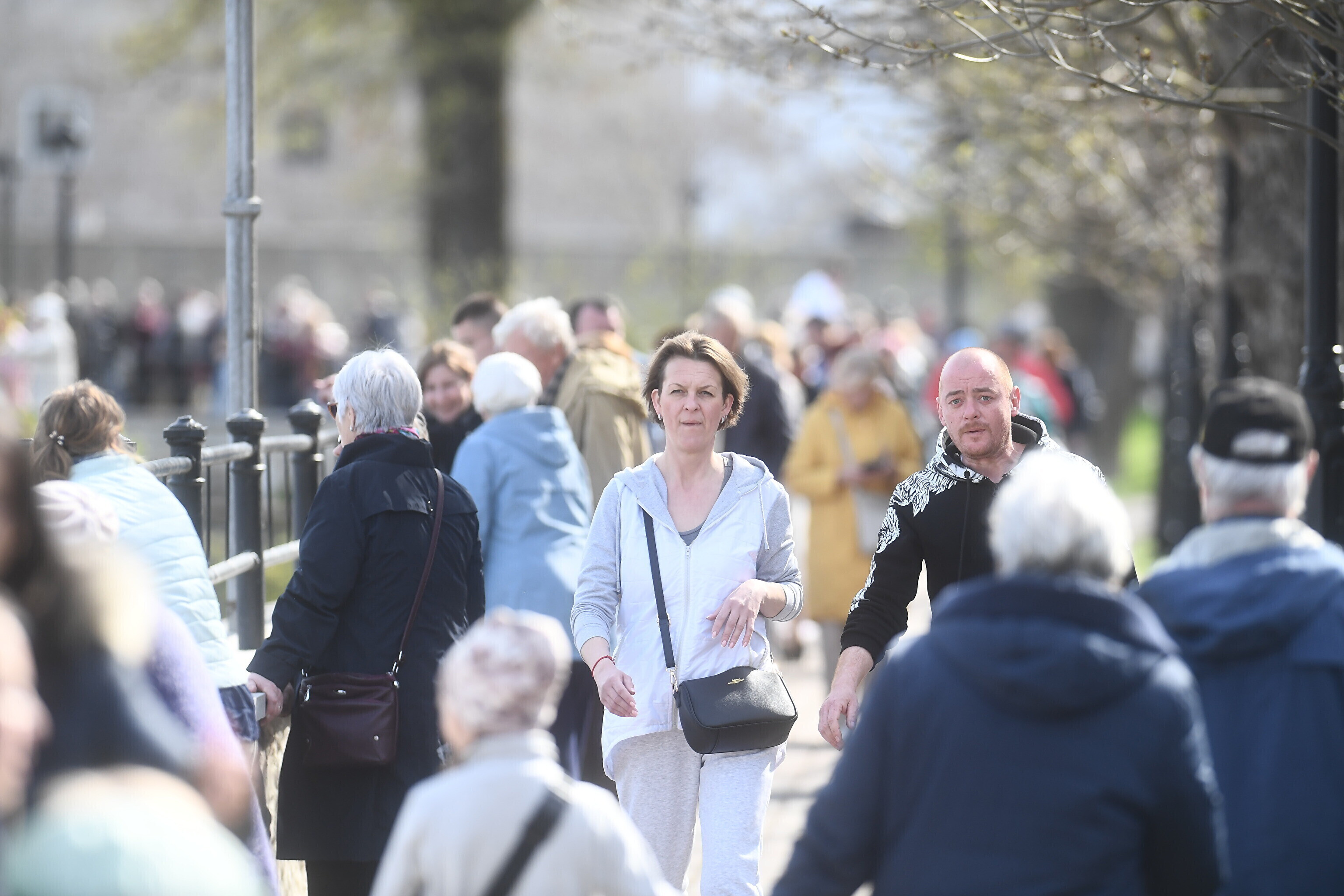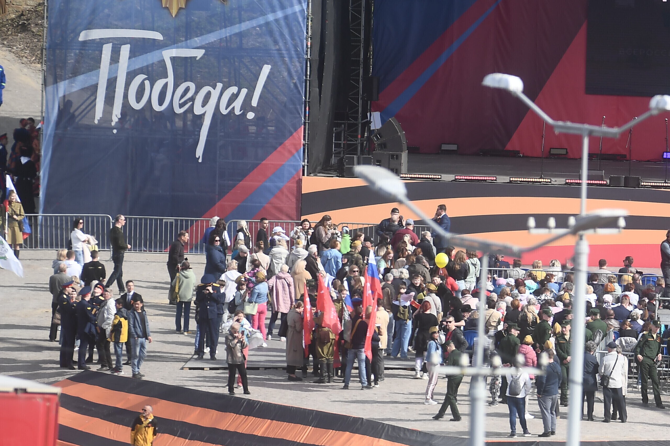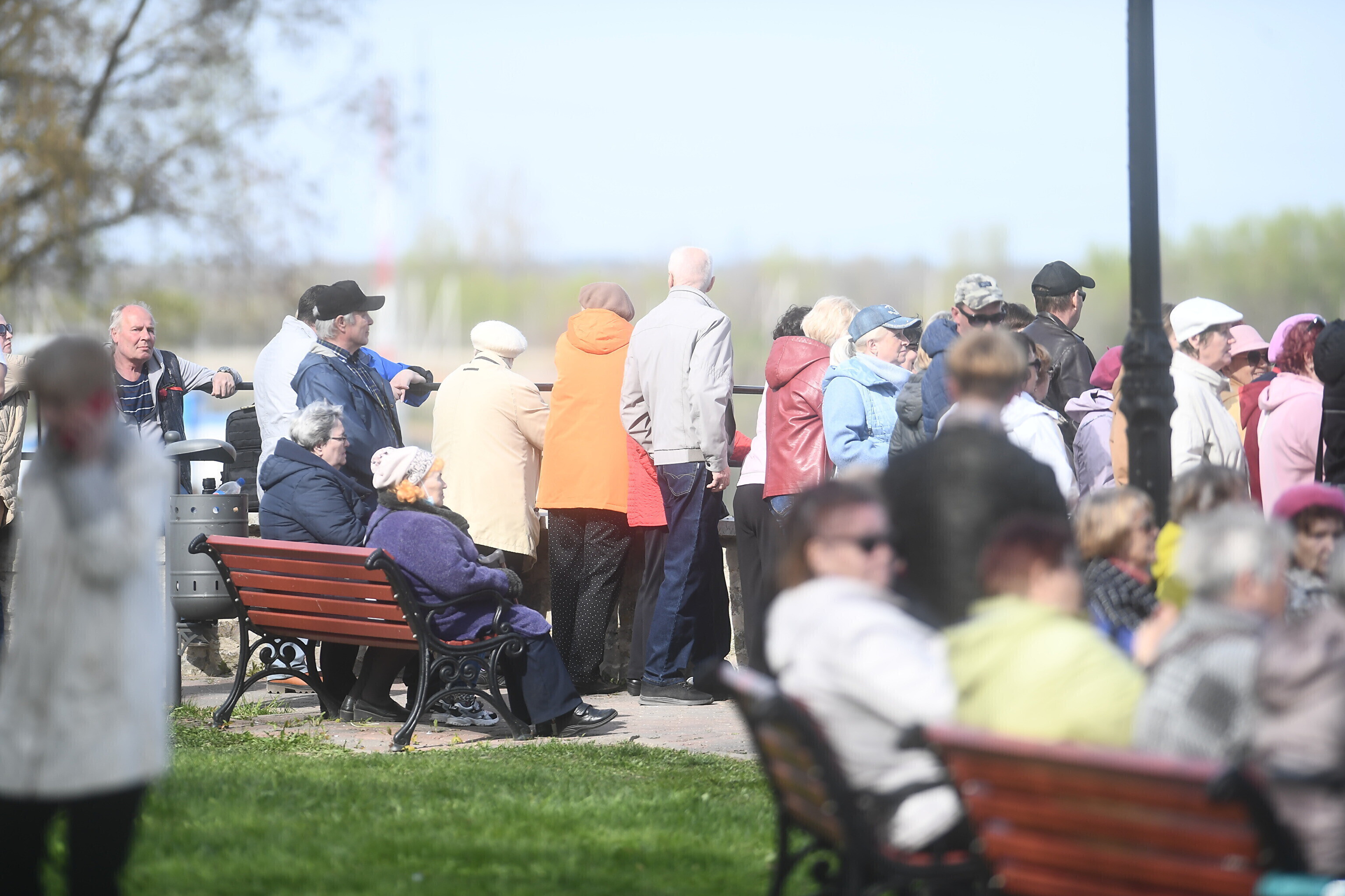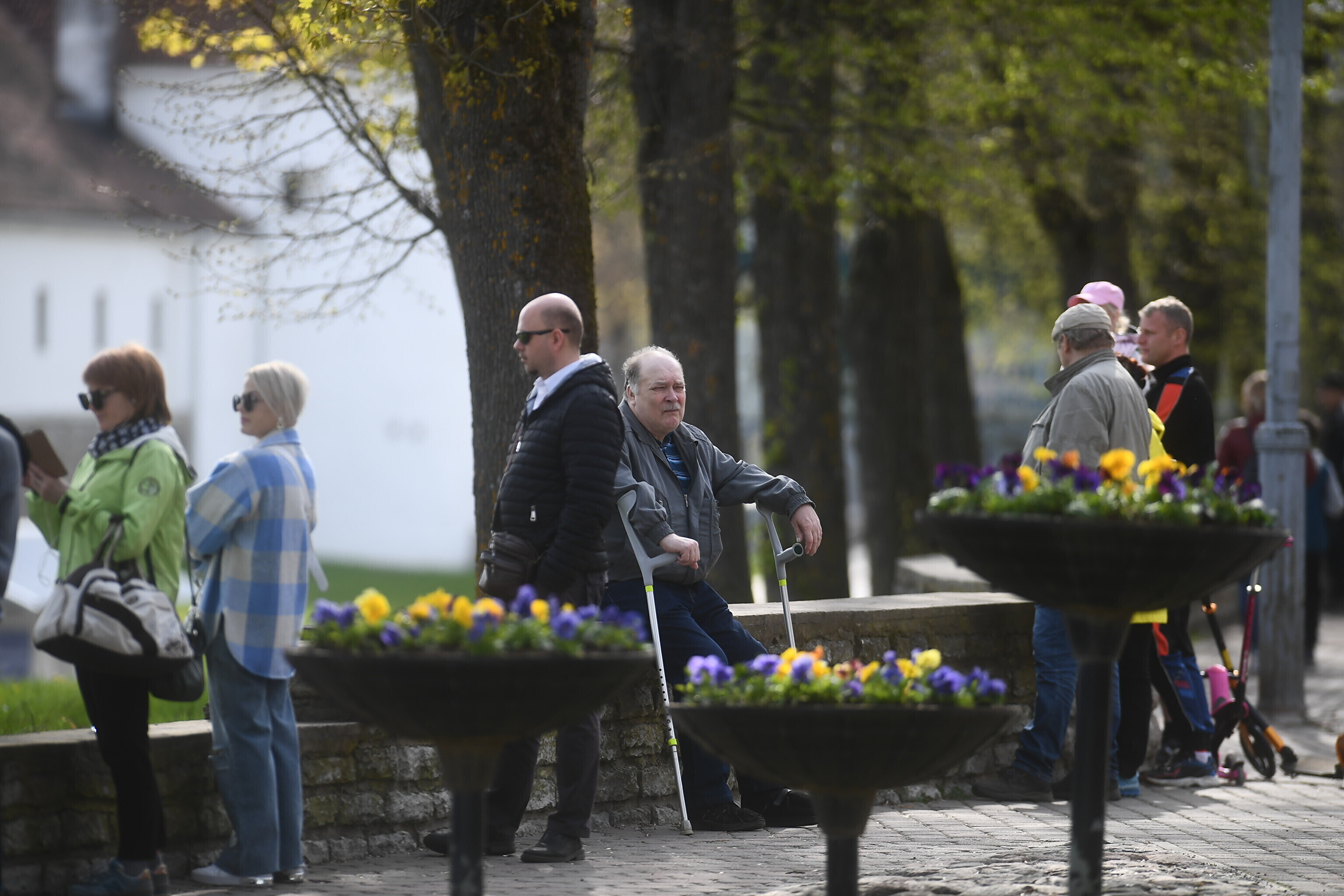Около четырех часов дня на Нарвском променаде собрались несколько сотен человек, сообщил корреспондент ERR Сергей Степанов. В это время на Ивангородской стороне планировали начать концерт в честь 9 мая.