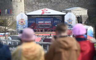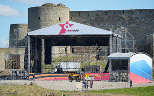 Плакат с надписью "Путин – военный преступник" был вывешен на стене Нарвского замка в ответ на организованный Ивангородом концерт по случаю Дня победы 9 мая. Концерт закончился, но плакат остался на стене, и теперь в городе обсуждают, что с ним делать.