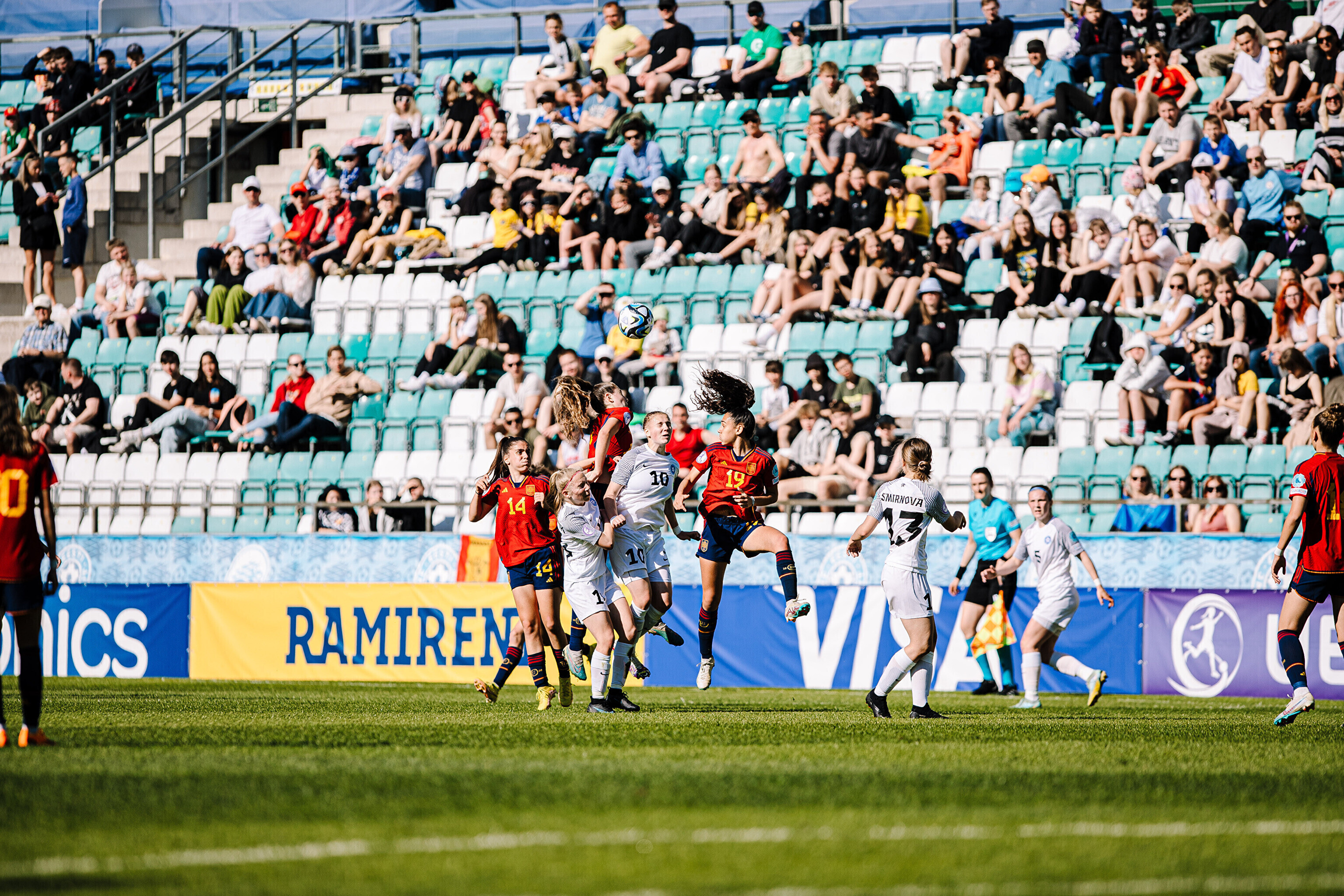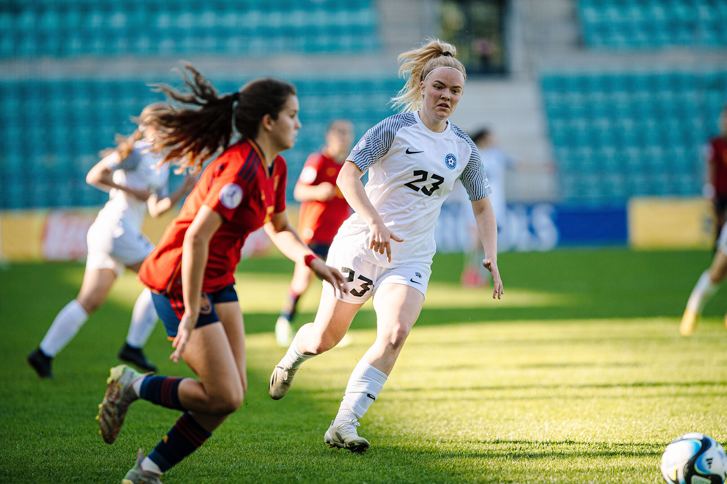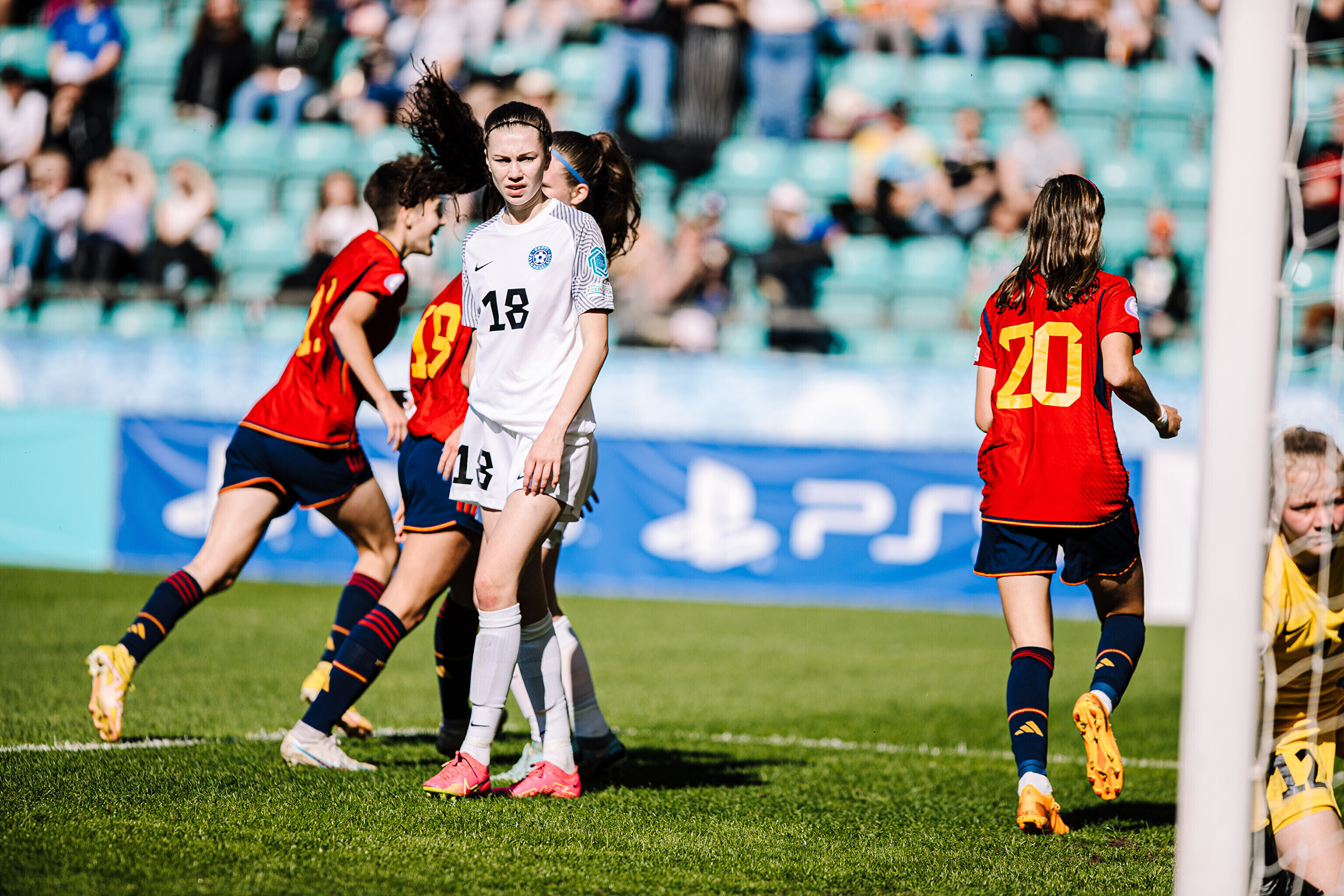 ФОТО: сборная Эстонии по футболу проиграла Испании в матче ЧЕ-2023 среди девушек до 17 лет