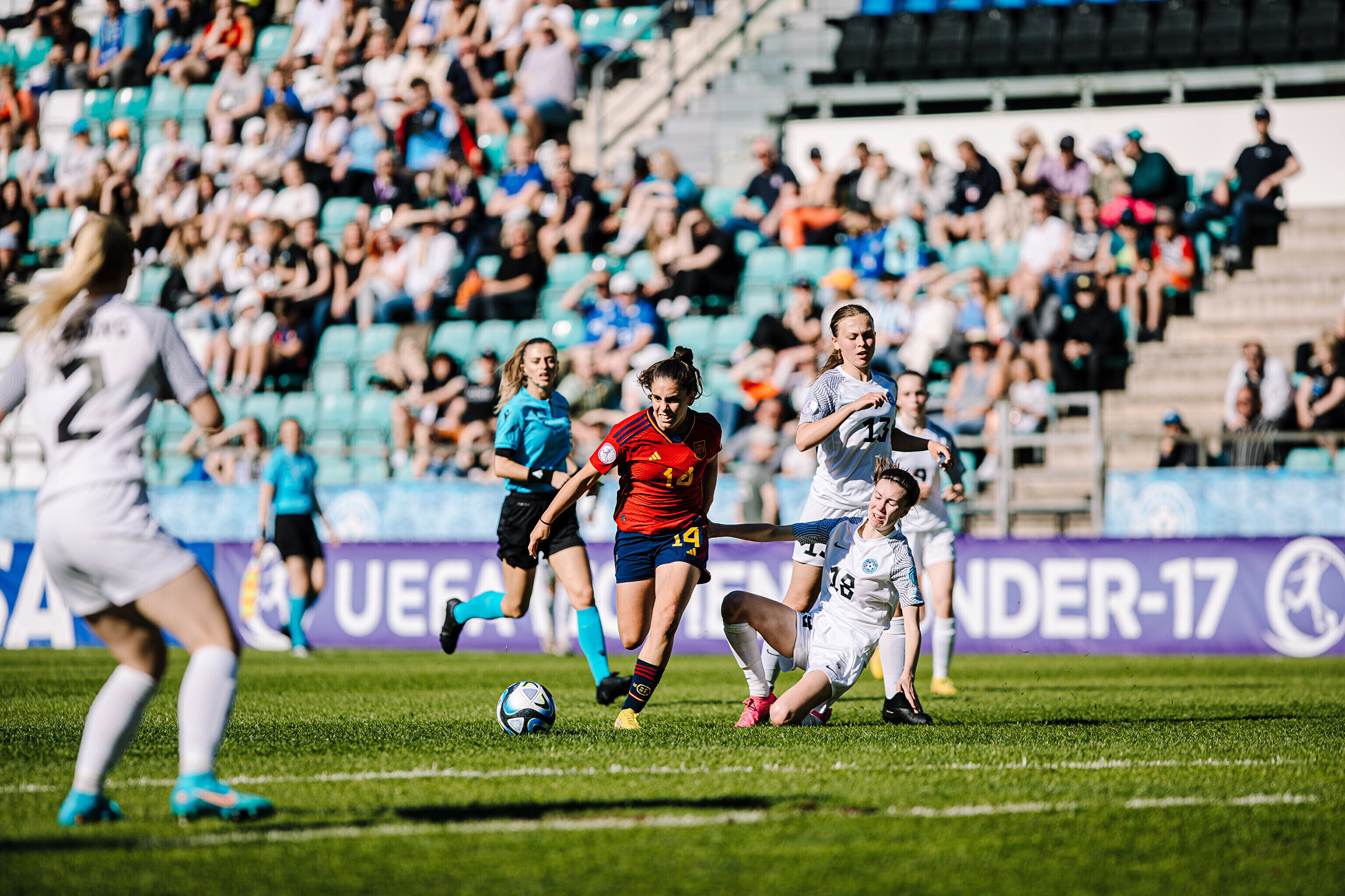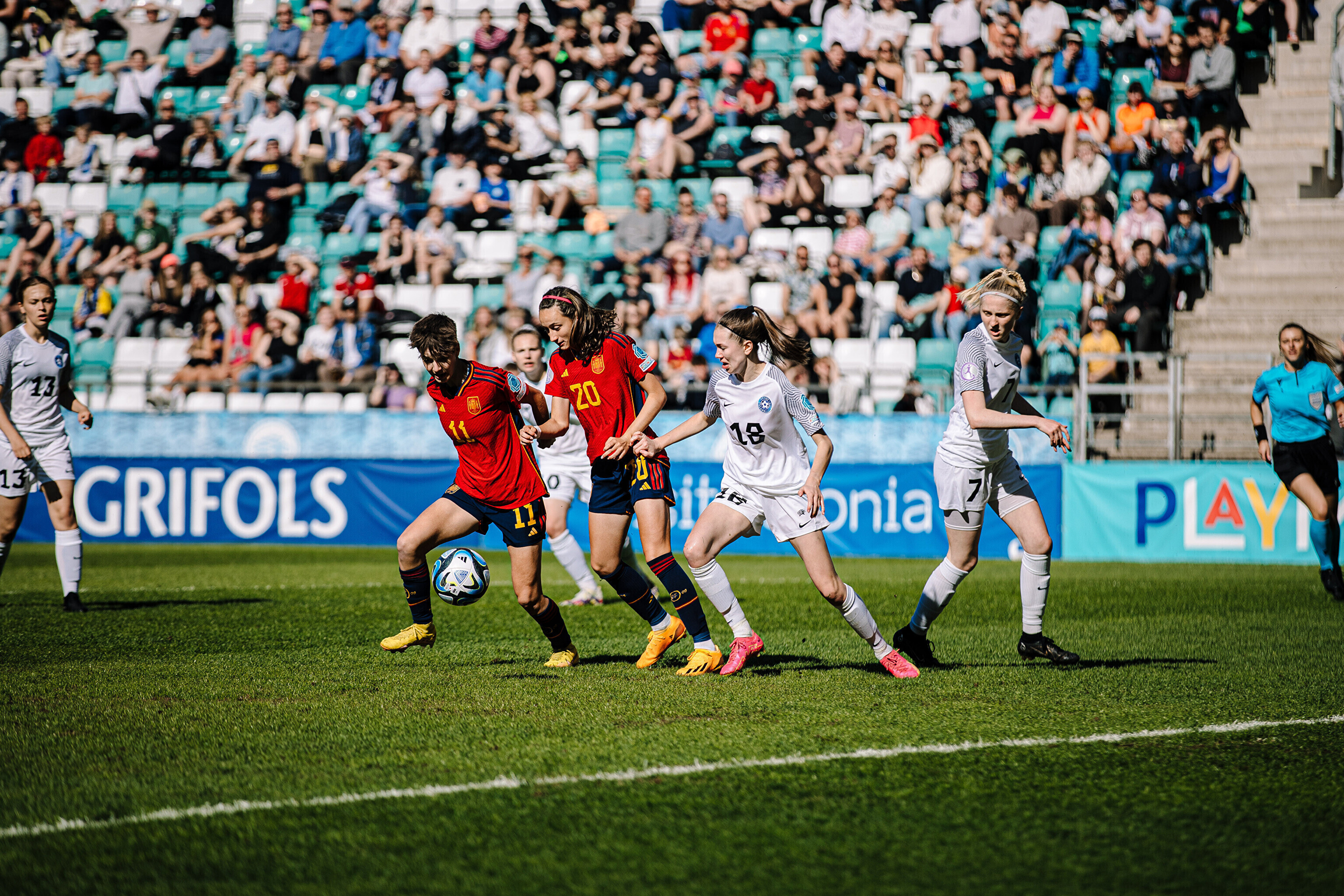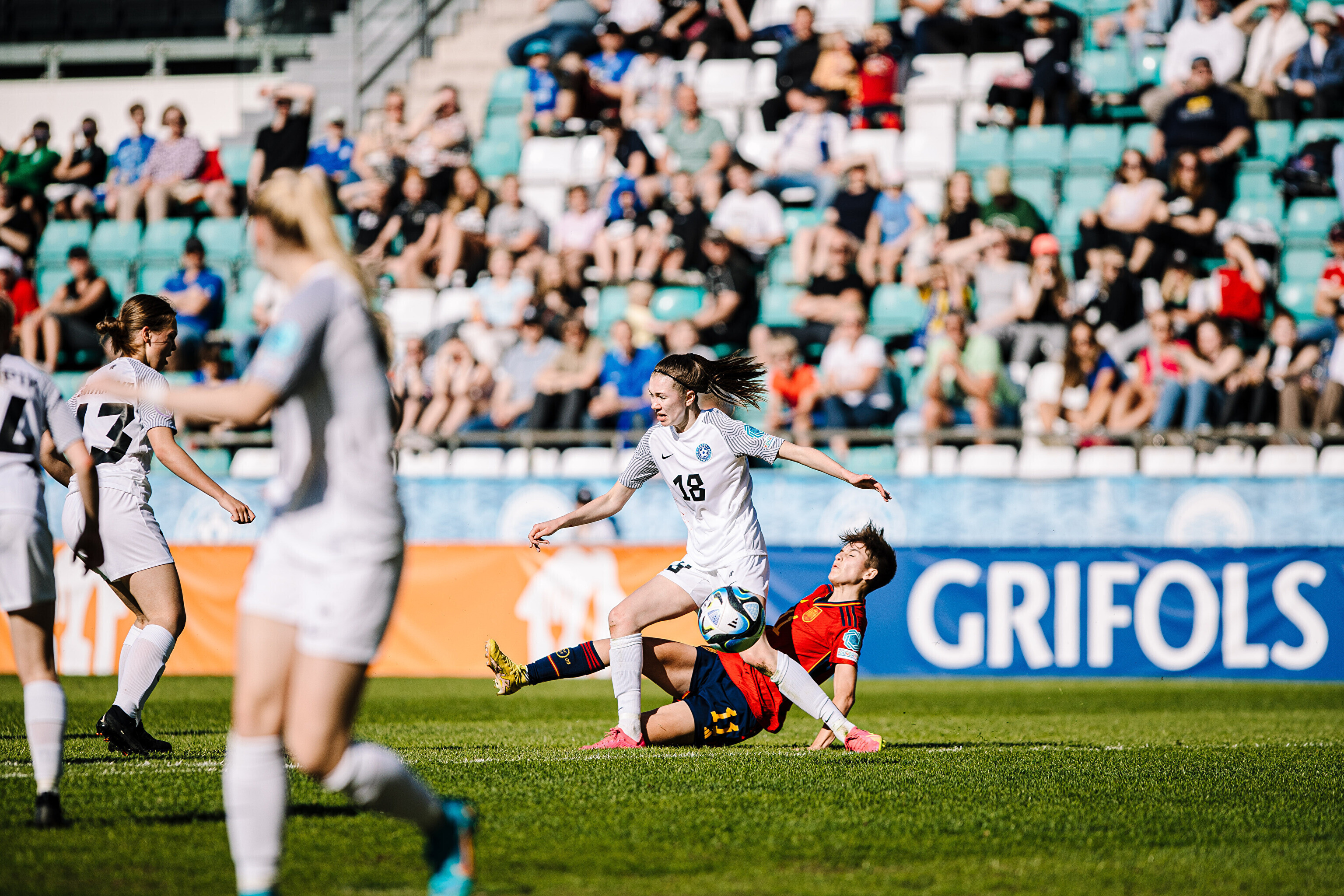 ФОТО: сборная Эстонии по футболу проиграла Испании в матче ЧЕ-2023 среди девушек до 17 лет
