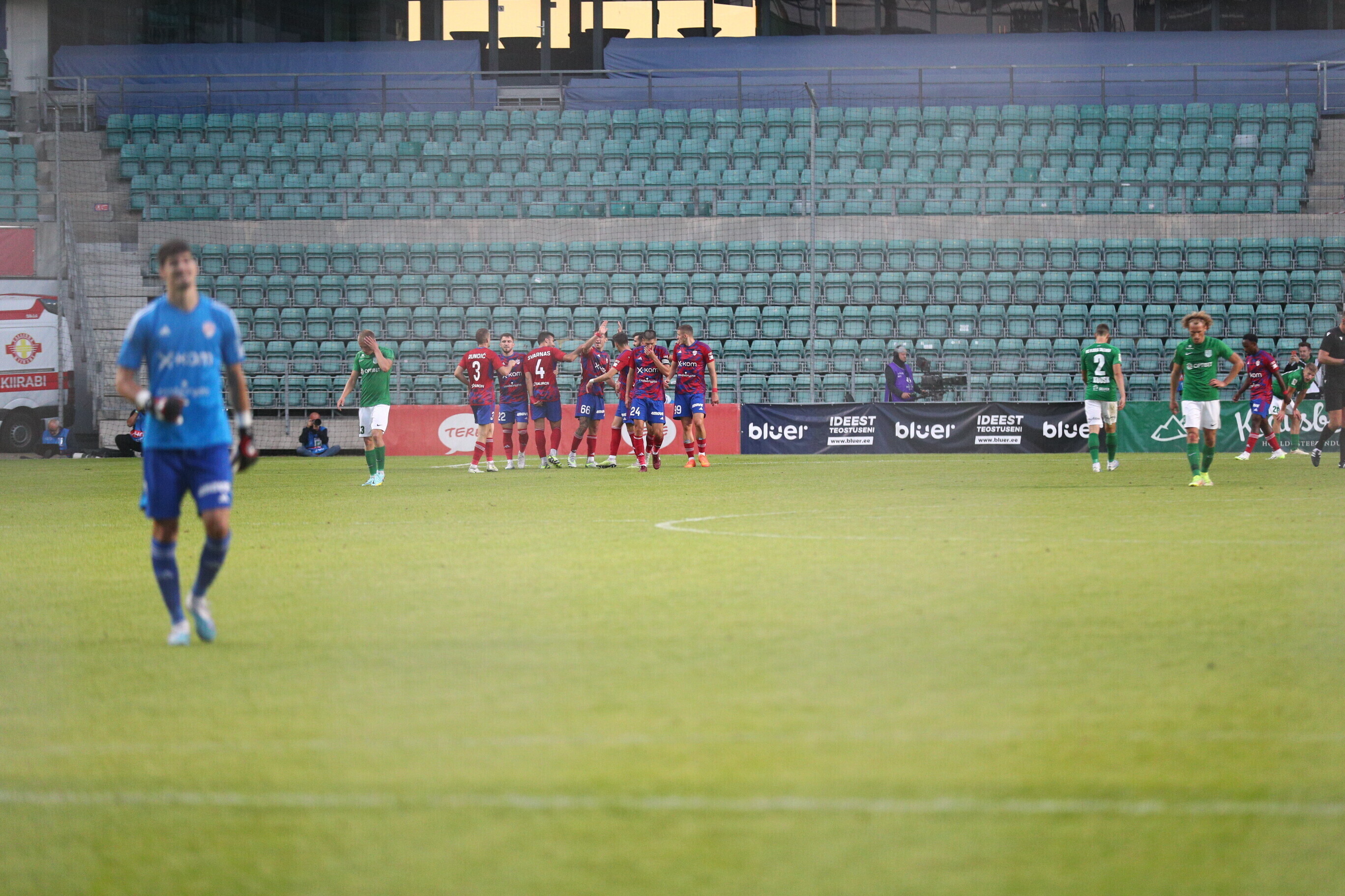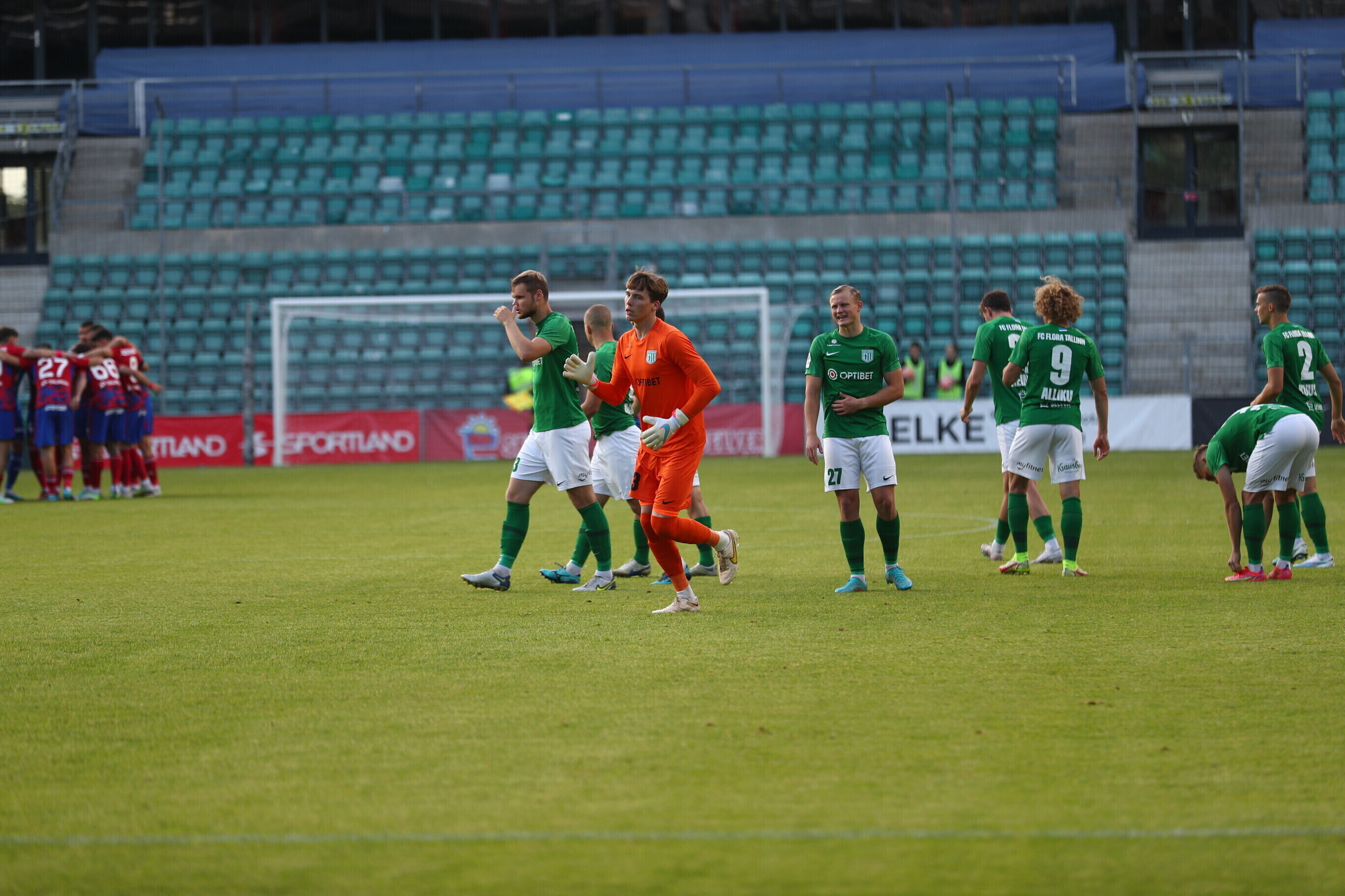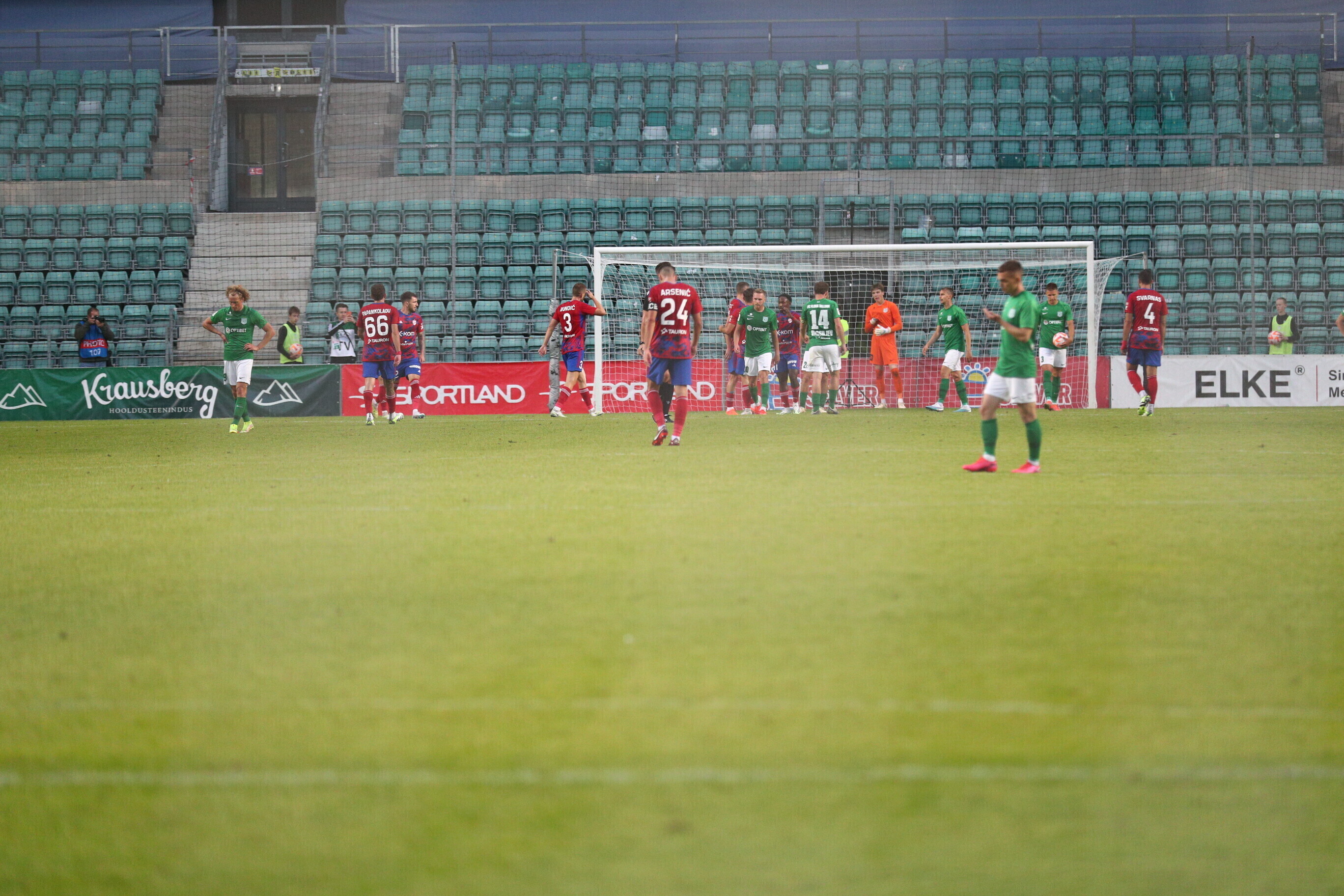 На 85-й минуте Джаннис Папаниколау с дальнего удара забил еще один мяч в ворота "Флоры", а на 88-й минуте Фабиан Пясецкий головой направил мяч в ворота, но гол не был засчитан VAR из-за офсайда.
