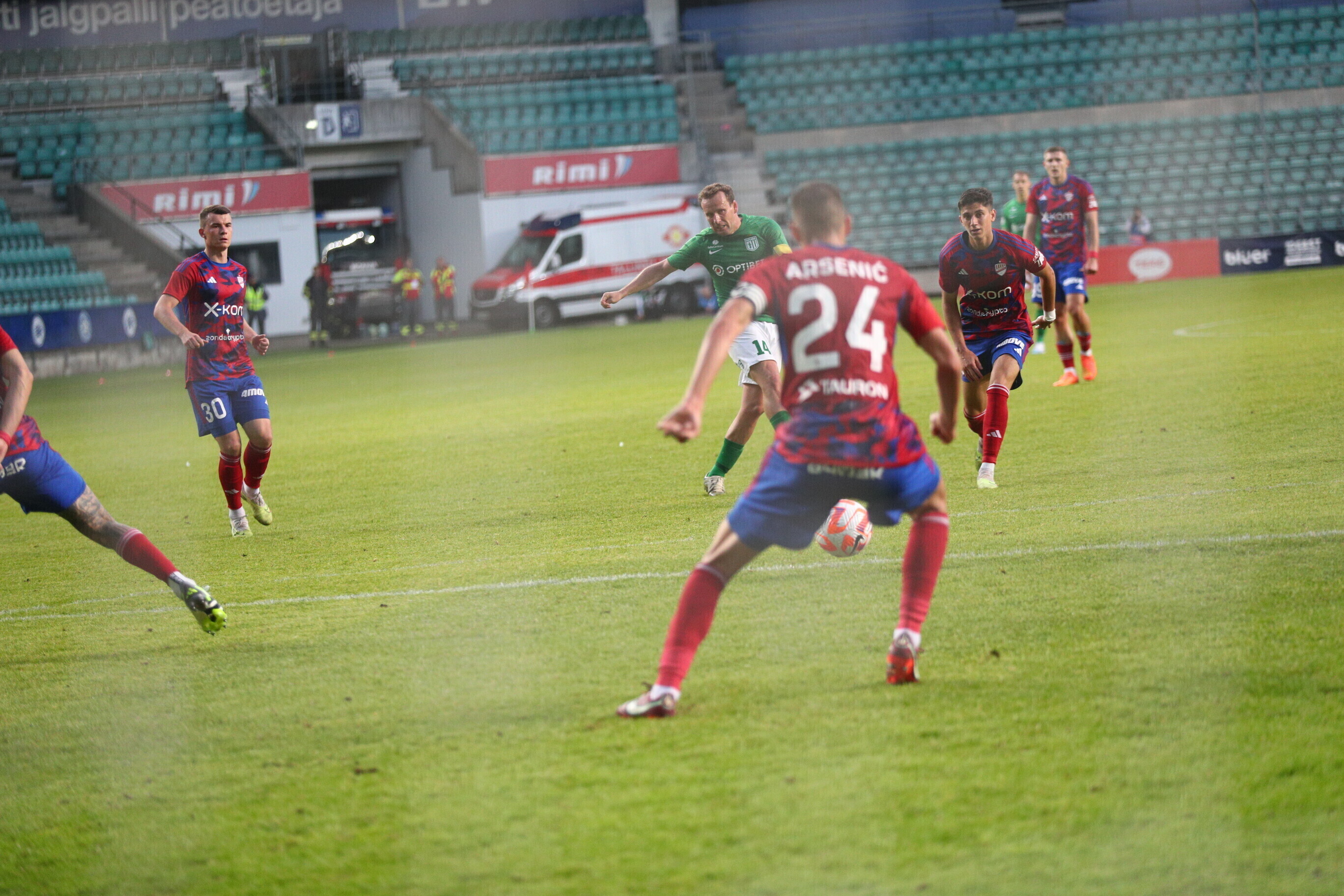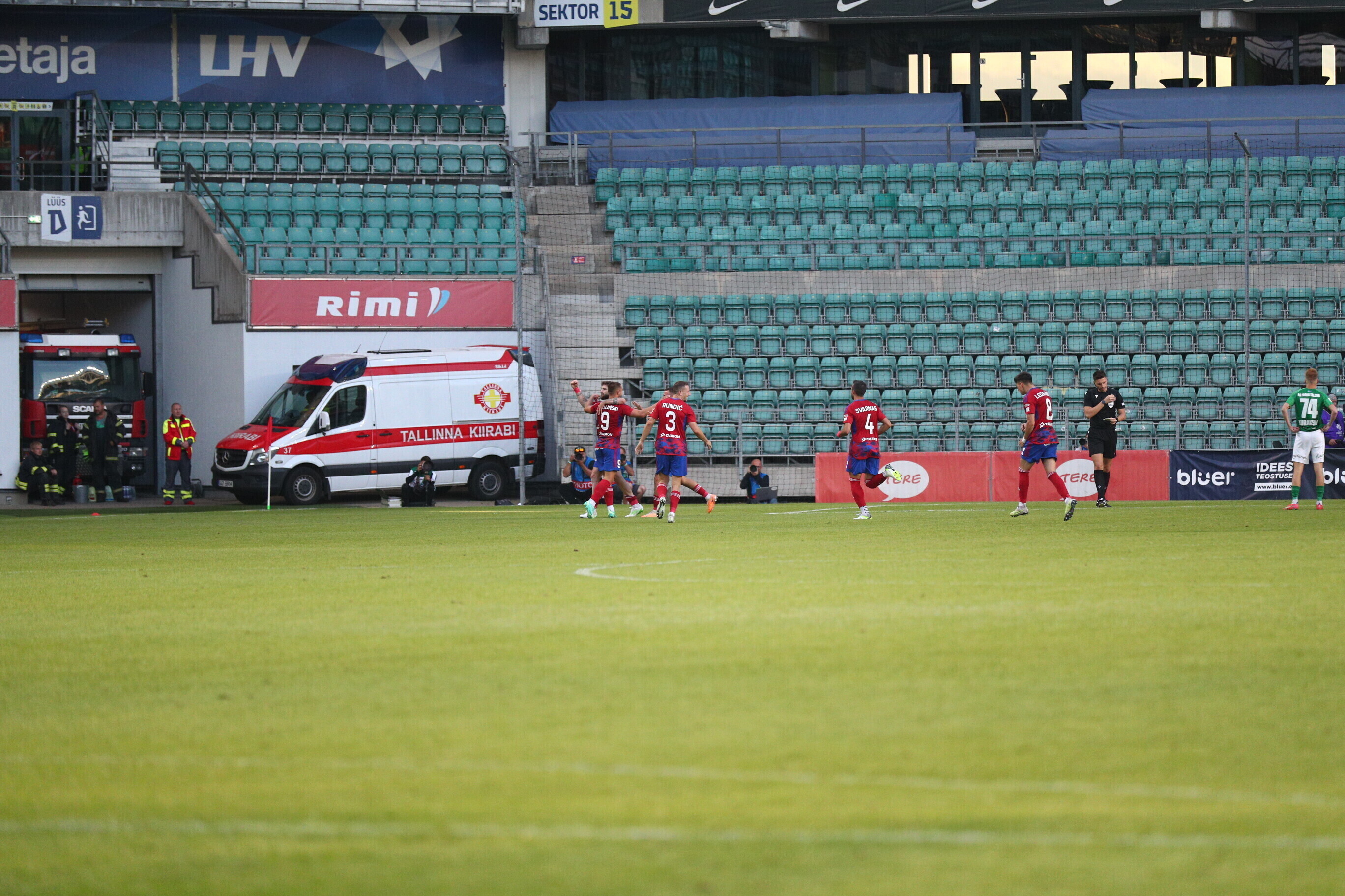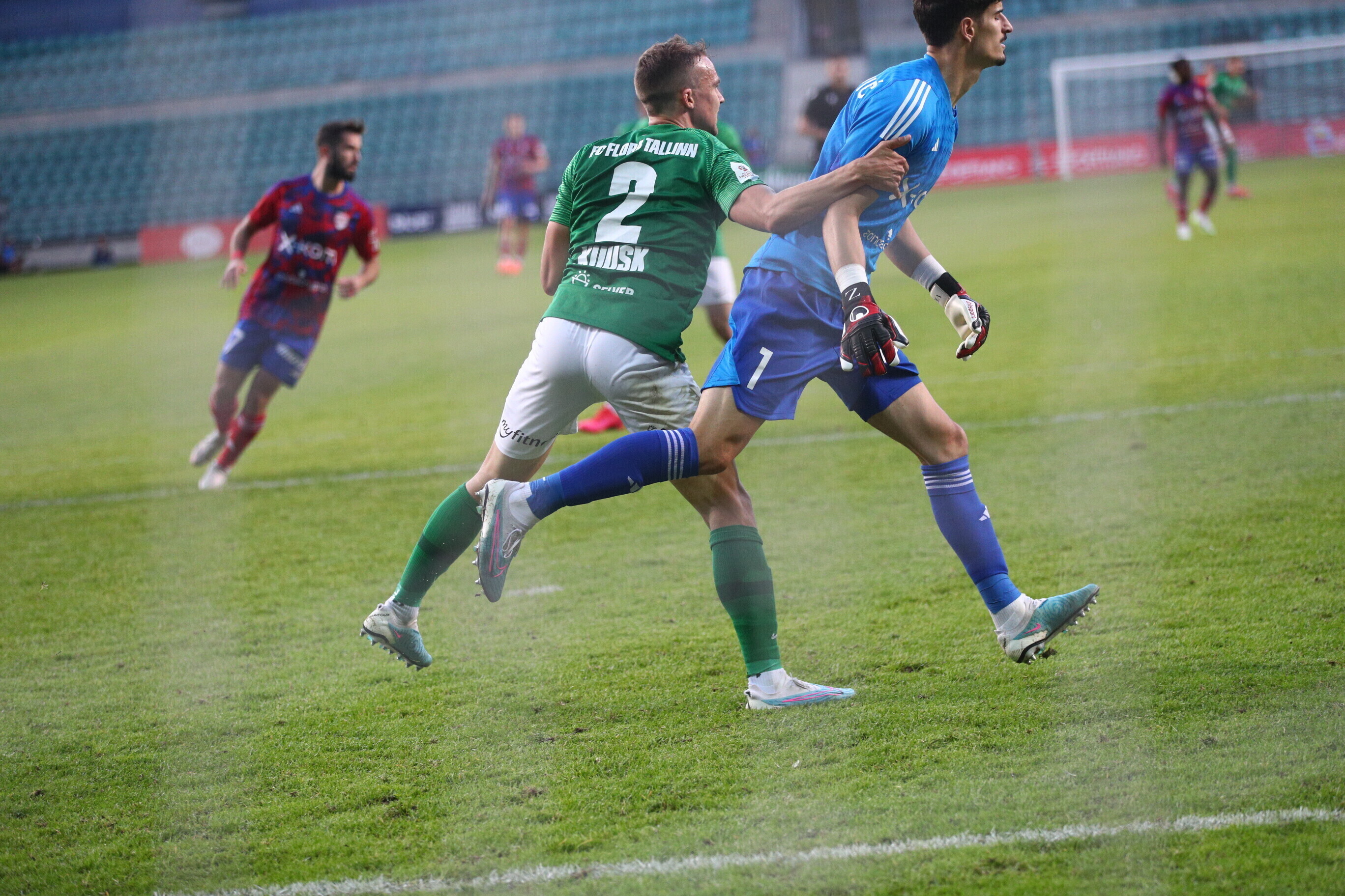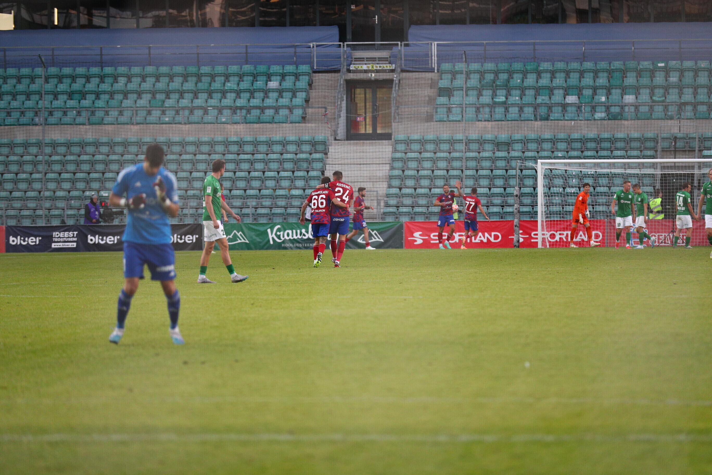 На 85-й минуте Джаннис Папаниколау с дальнего удара забил еще один мяч в ворота "Флоры", а на 88-й минуте Фабиан Пясецкий головой направил мяч в ворота, но гол не был засчитан VAR из-за офсайда.