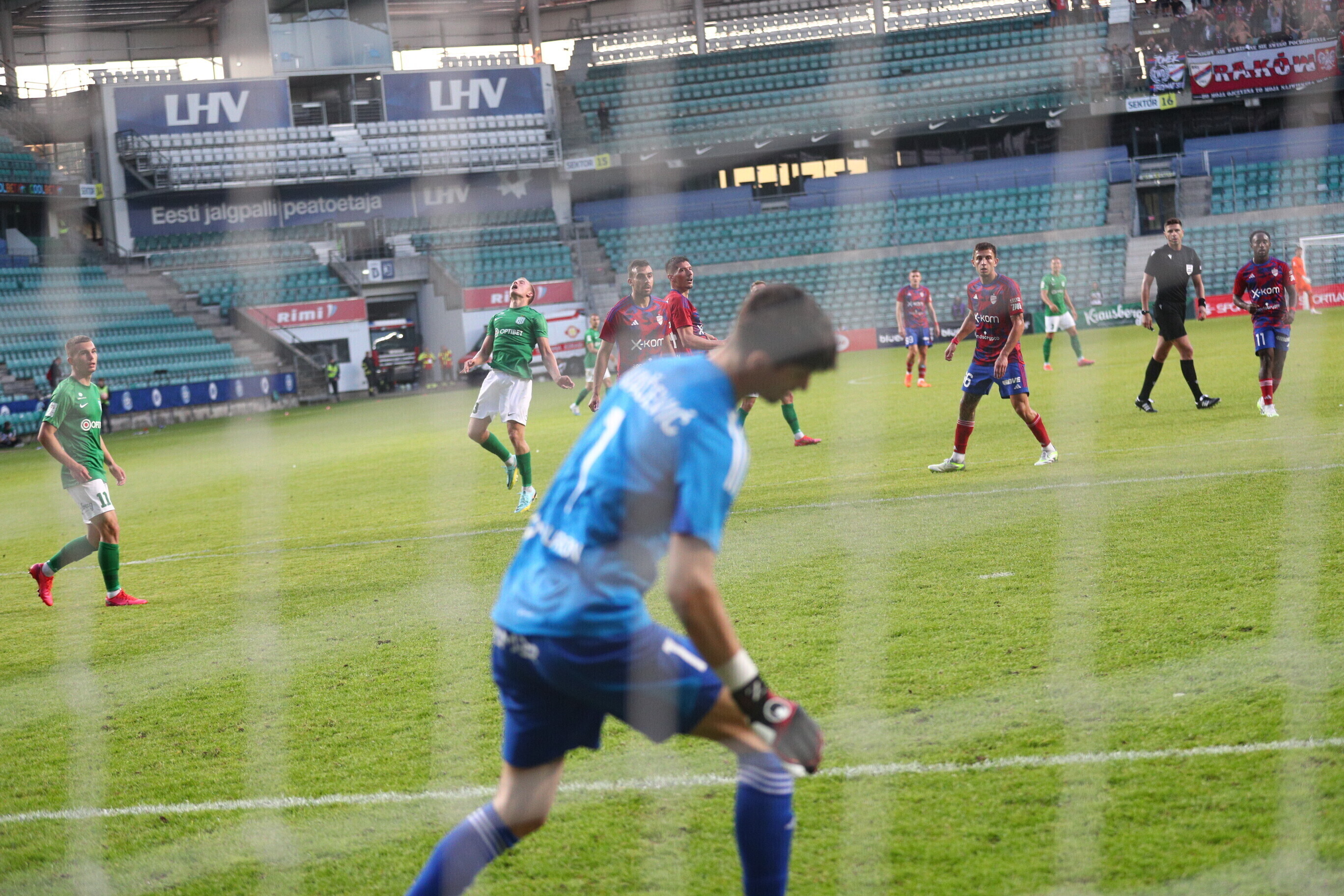В первом тайме игроки "Ракува" несколько раз пытались открыть счет, но вратарь "Флоры" Эверт Грюнвальд успешно реагировал. В конце тайма также была заявка на пенальти, но он не был назначен.
