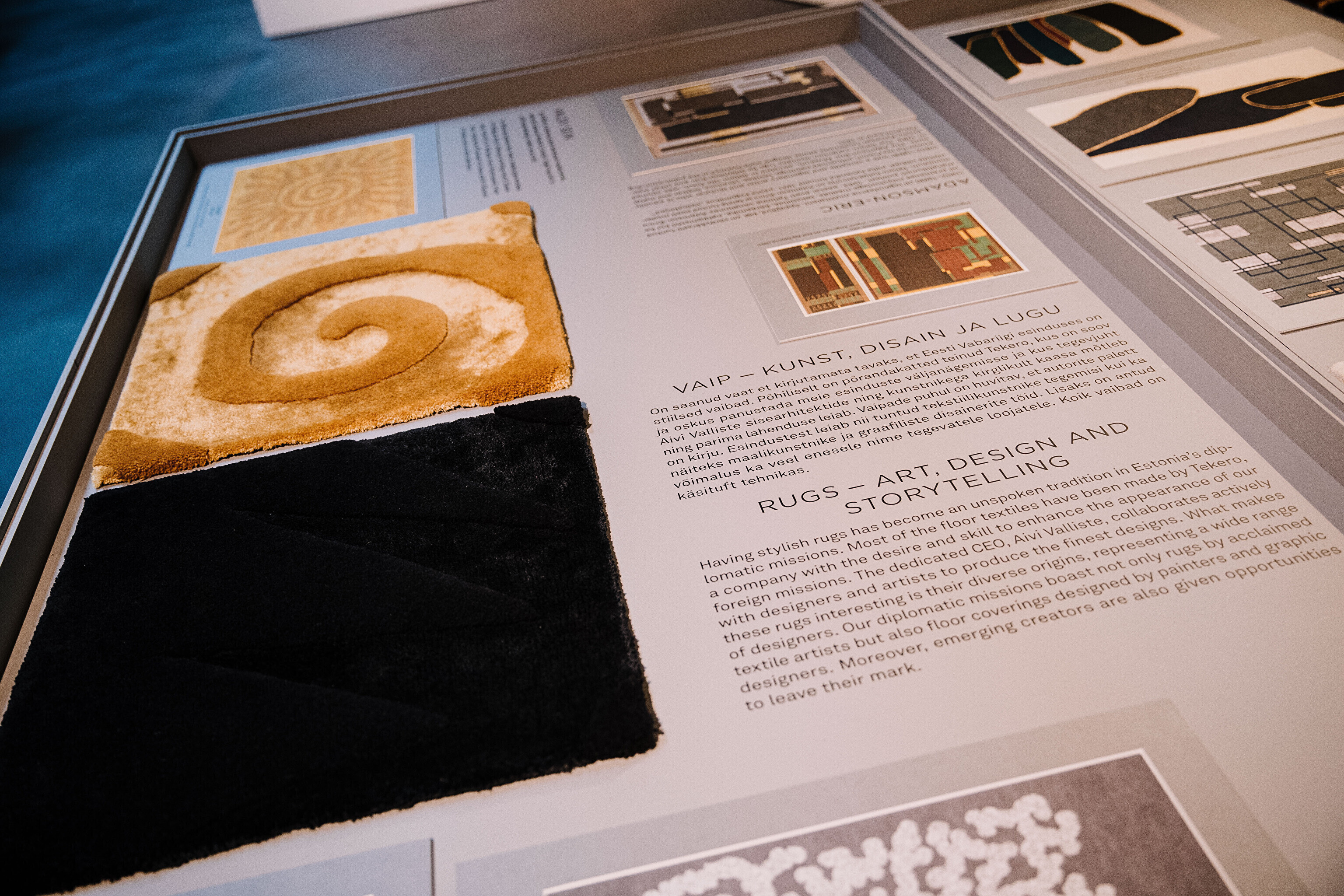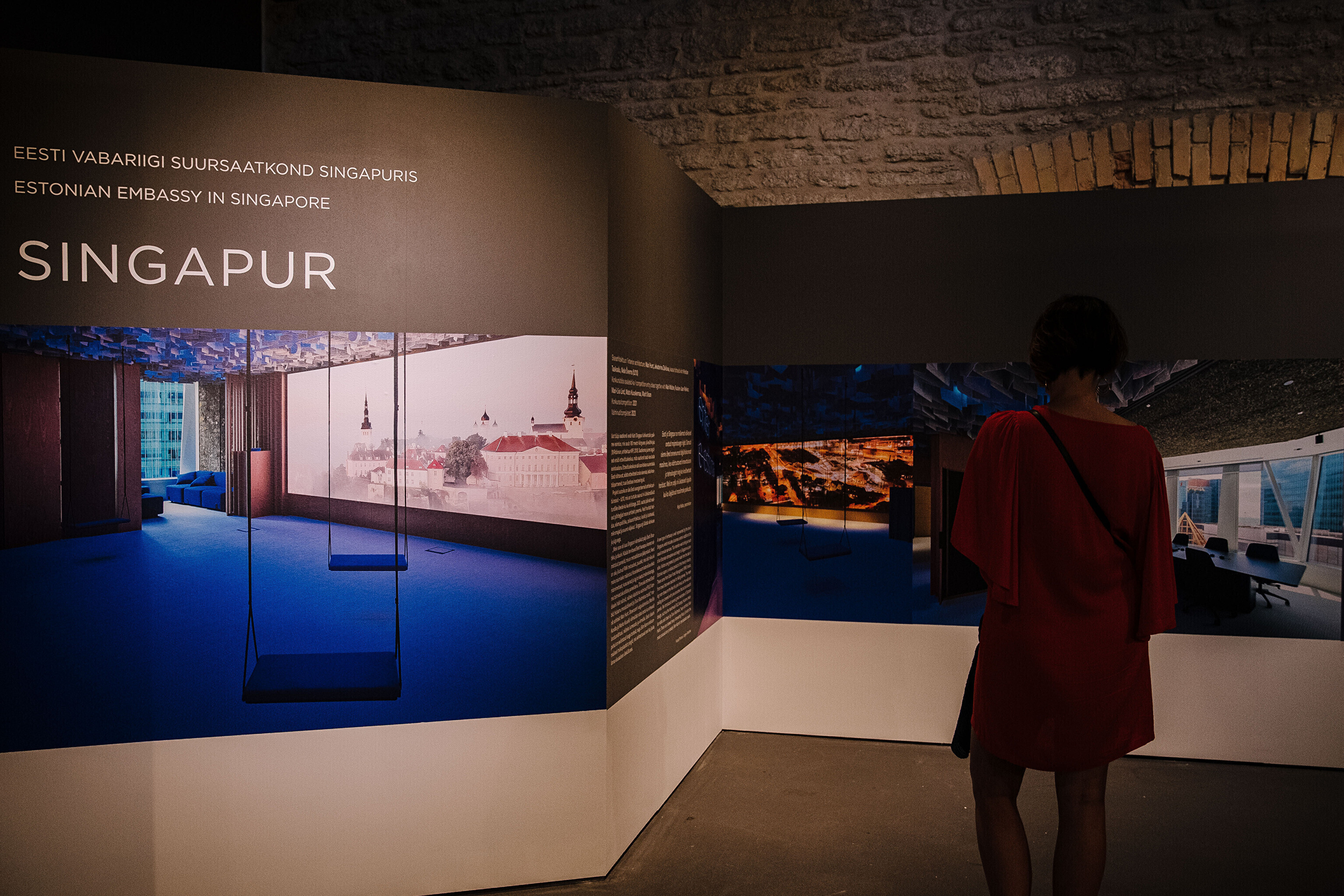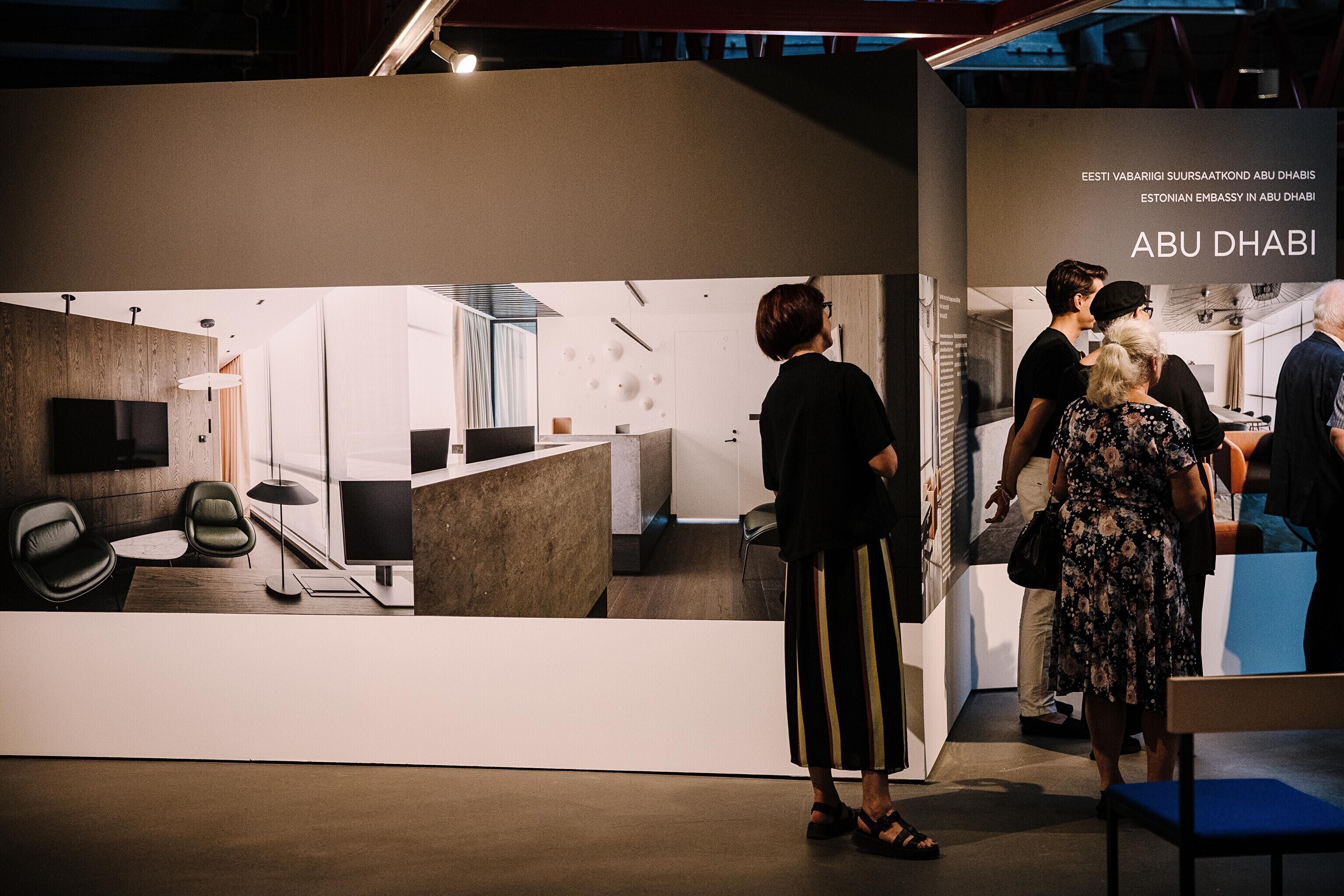 Куратор выставки, искусствовед Карин Паулус была приятно удивлена тем, насколько осознанно дизайнеры интерьеров выявили уникальность Эстонии при помощи мебели, ковров, материалов, искусства и атмосферы. "В зависимости от местоположения представительств используются совершенно разные приемы - 3D-печатные узлы в Абу-Даби, кора деревьев и скамейки из уникального материала в Сингапуре, шикарный европеизм в Брюсселе", - сказала она.