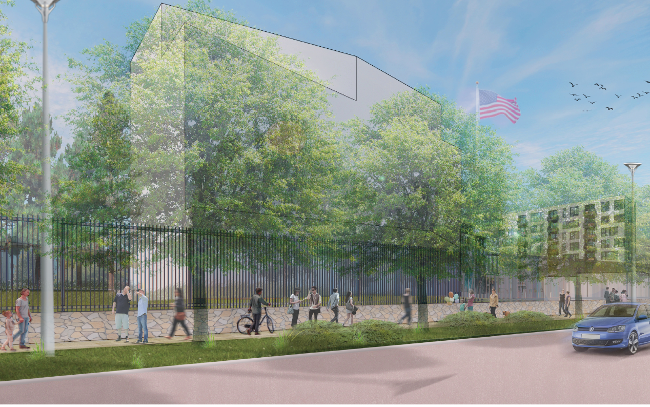 "Из-за небольшого размера участка (посольства США обычно располагаются на более крупных участках) спланировать общественное пространство (для этого места) не представляется возможным", - отмечается в детальной планировке.