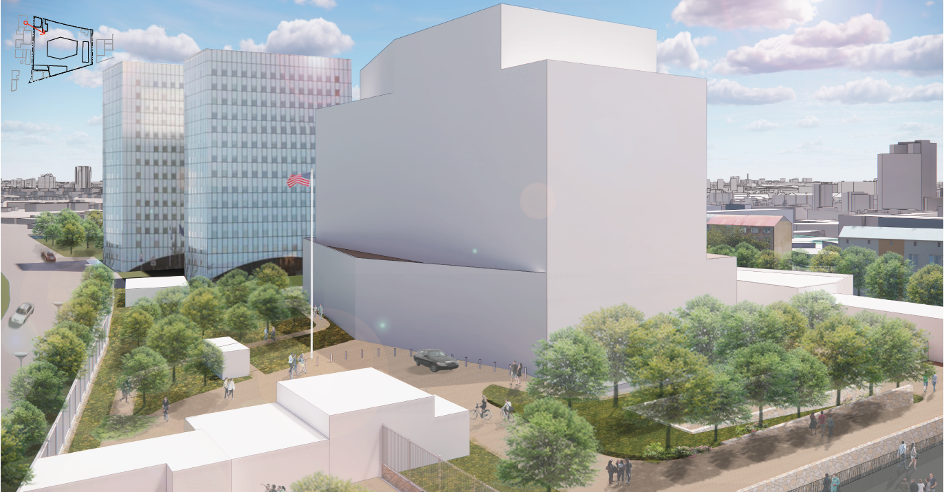 Новый проект посольства США находится в ведении Бюро по эксплуатации зданий за рубежом (OBO) Государственного департамента США совместно с местным консультантом Esplan OÜ.