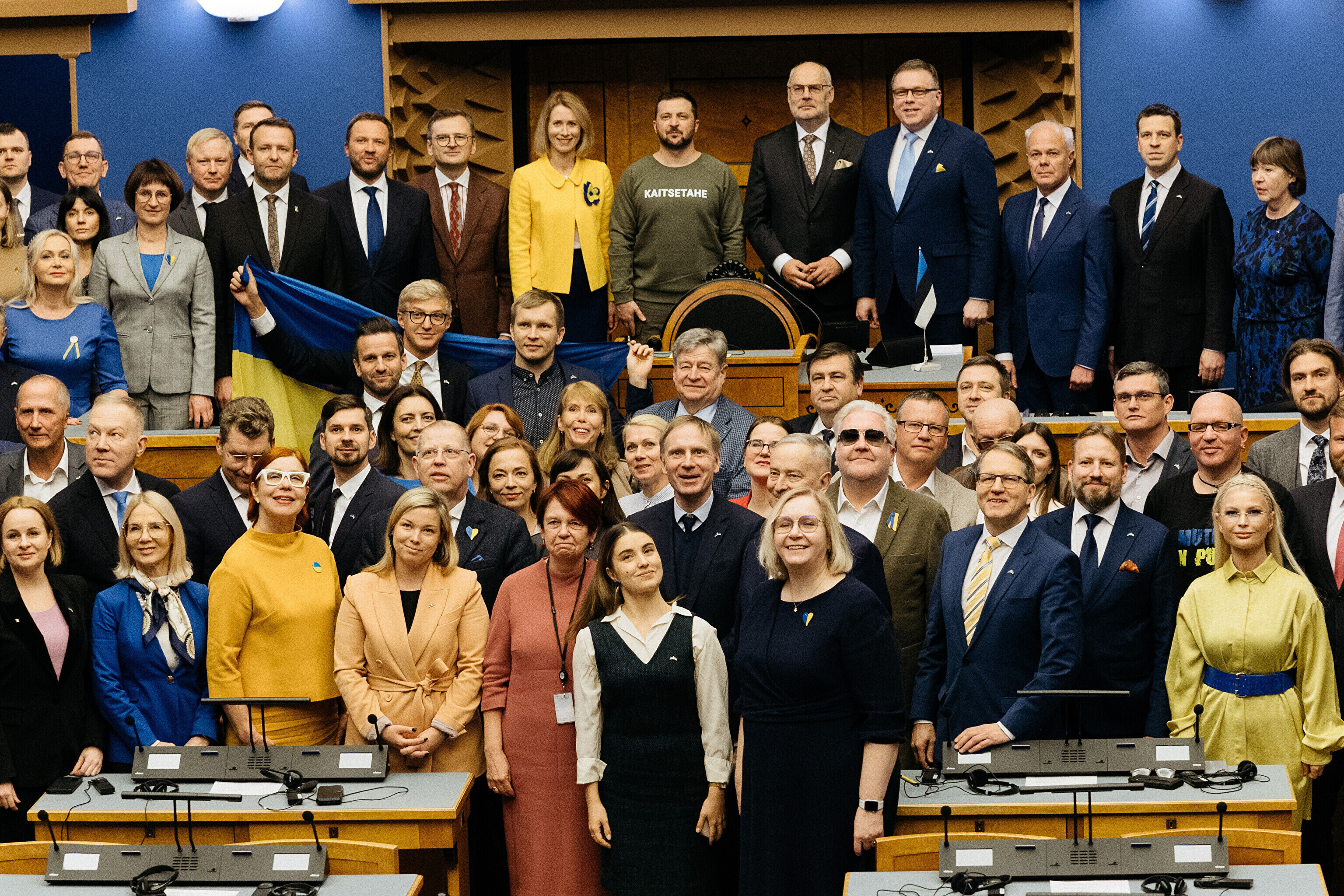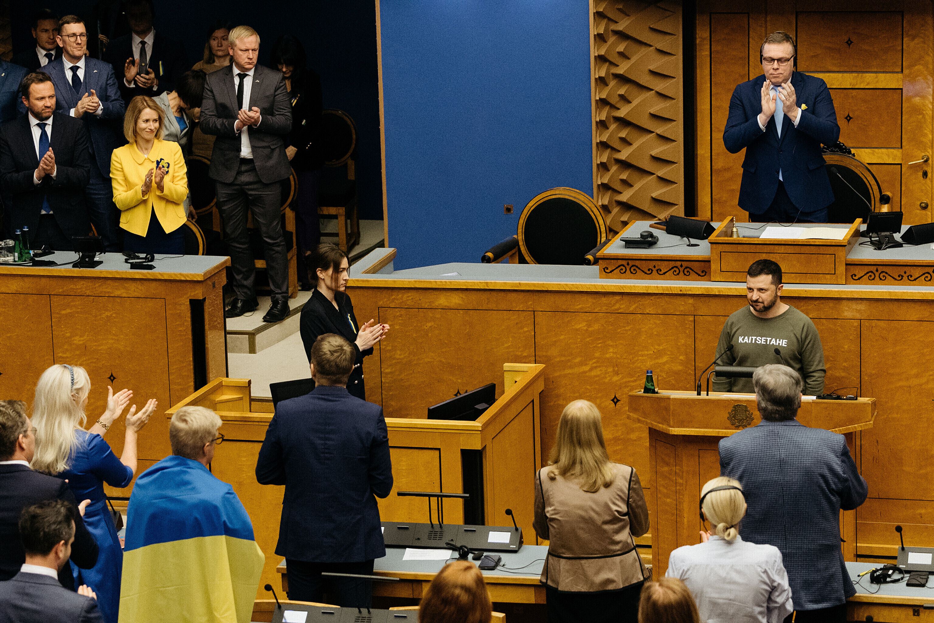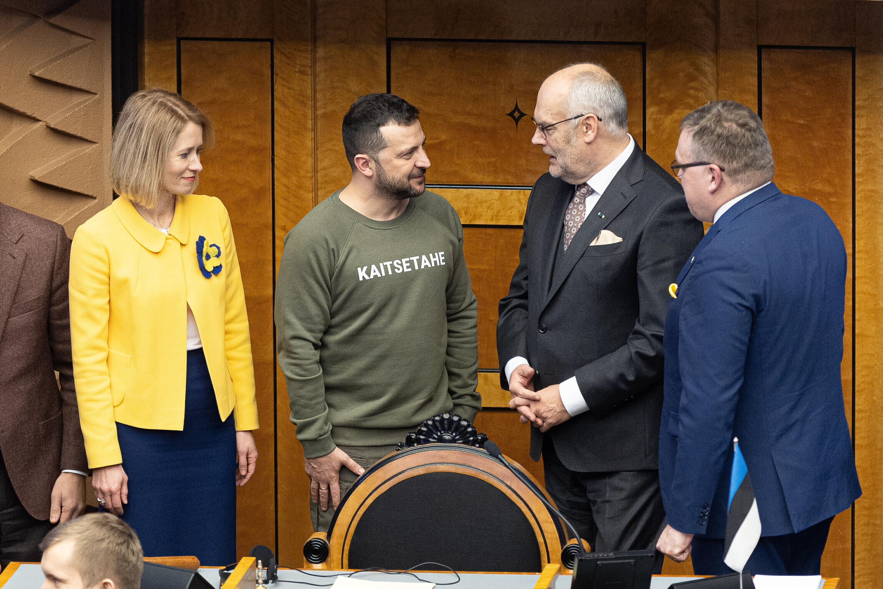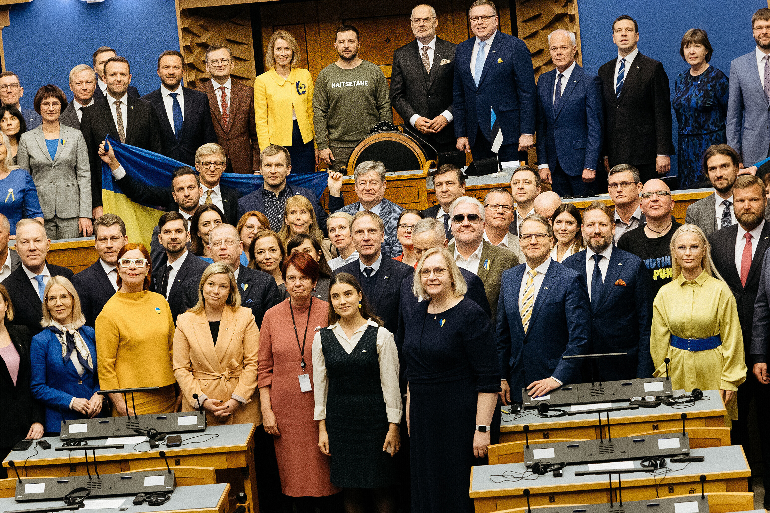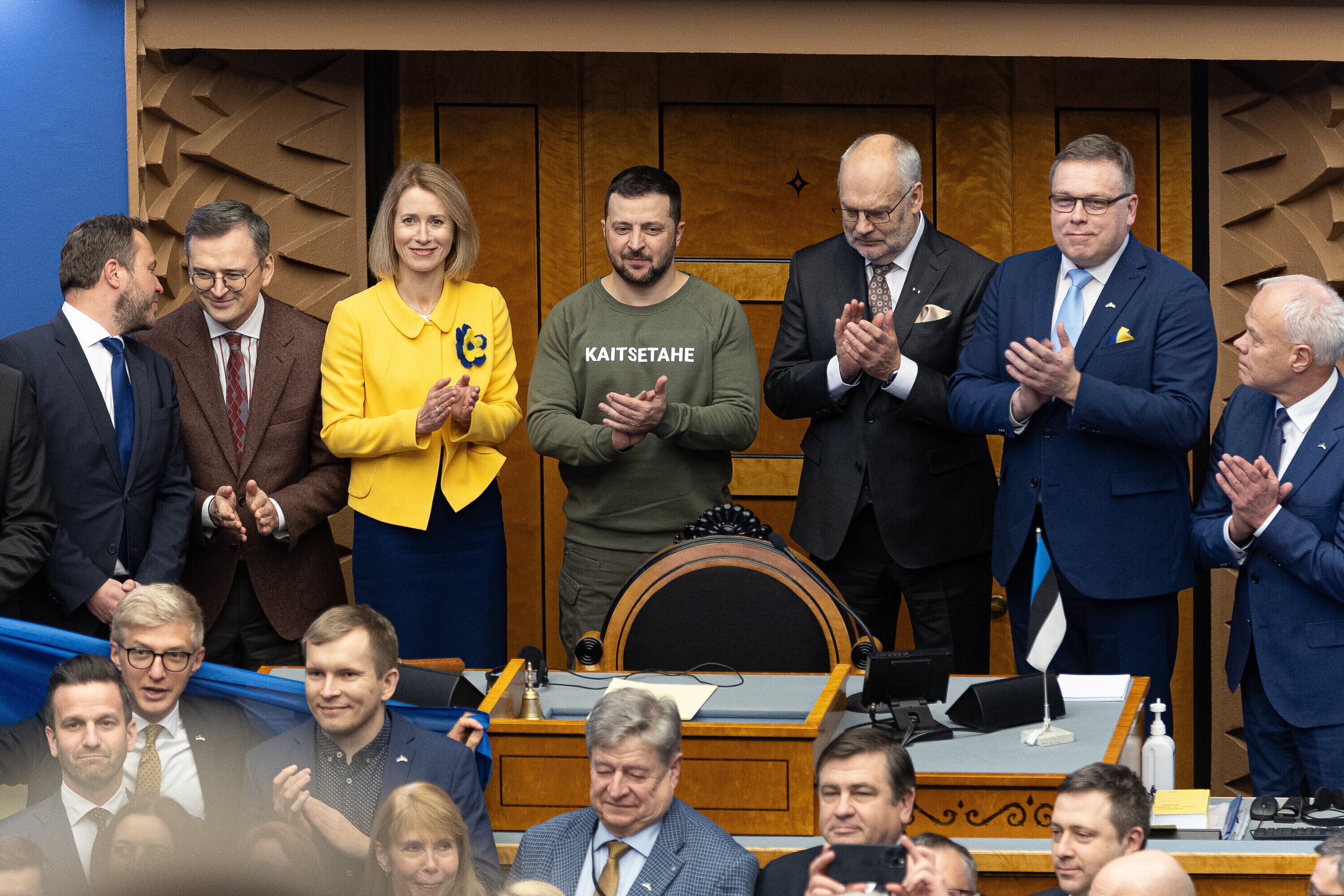 Когда я сегодня шел к вам в парламент, госпожа премьер-министр подарила мне этот свитшот. Она сказала, что значение этого слова – kaitsetahe – объединило многих из вас, многих эстонцев. Вы должны знать, то что здесь написано, запечатлено в сердцах многих украинцев. Воля к обороне. И я уверен, что непременно наступит тот день, когда всех нас объединит еще одно слово. Võidutahe. Воля к победе. И мы поздравим друг друга с победой. С победой над Россией в этой войне. Вместе. Всегда вместе.