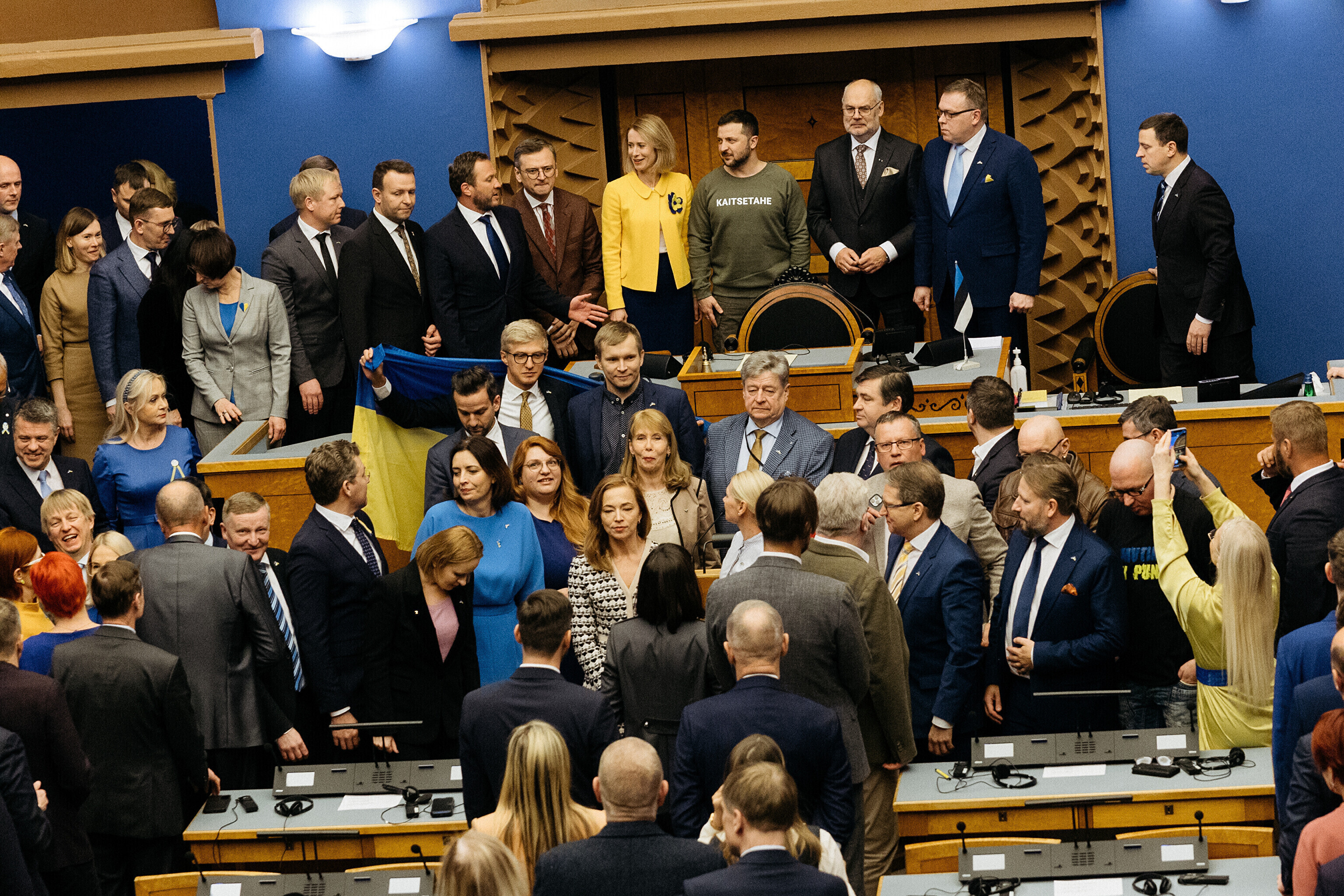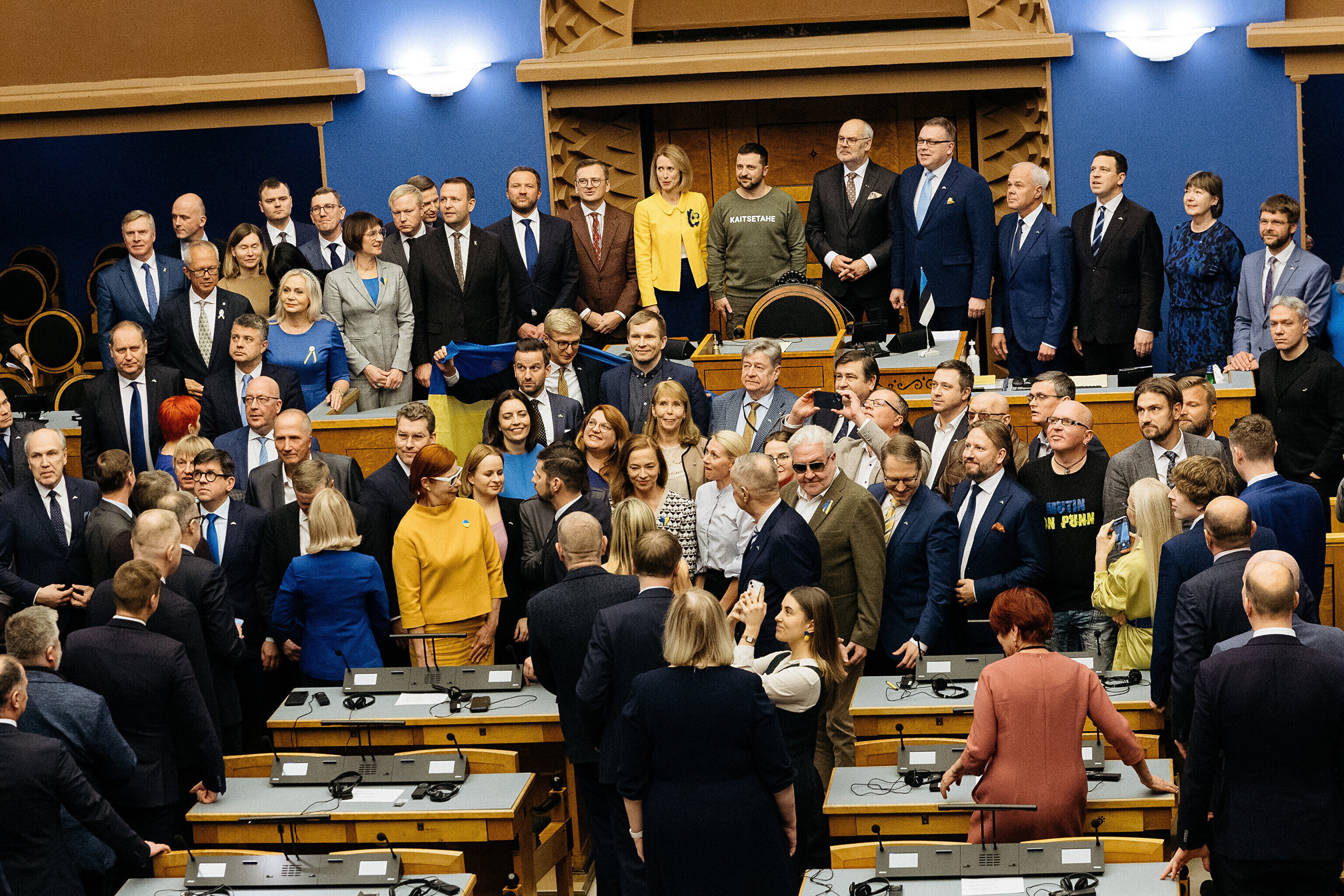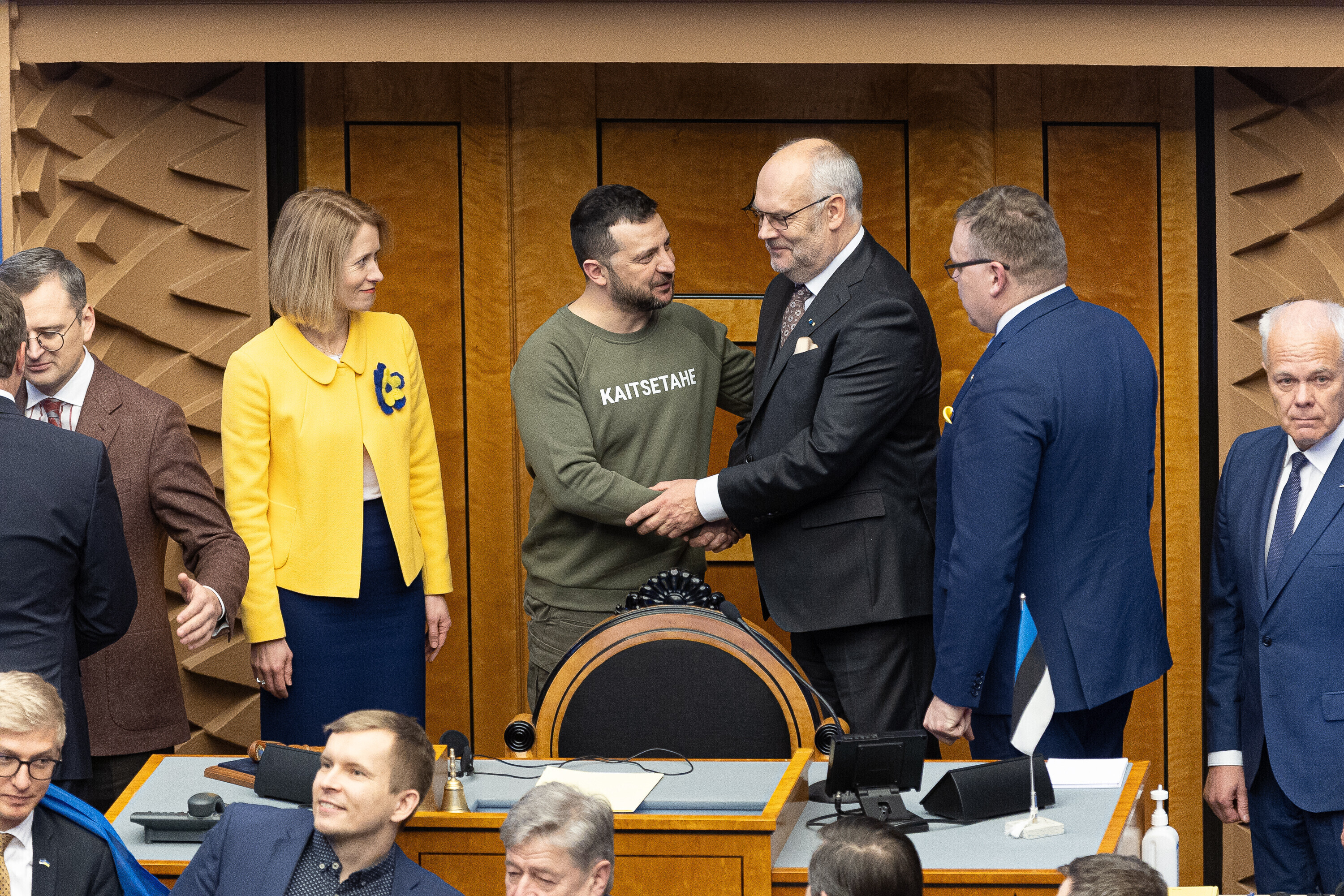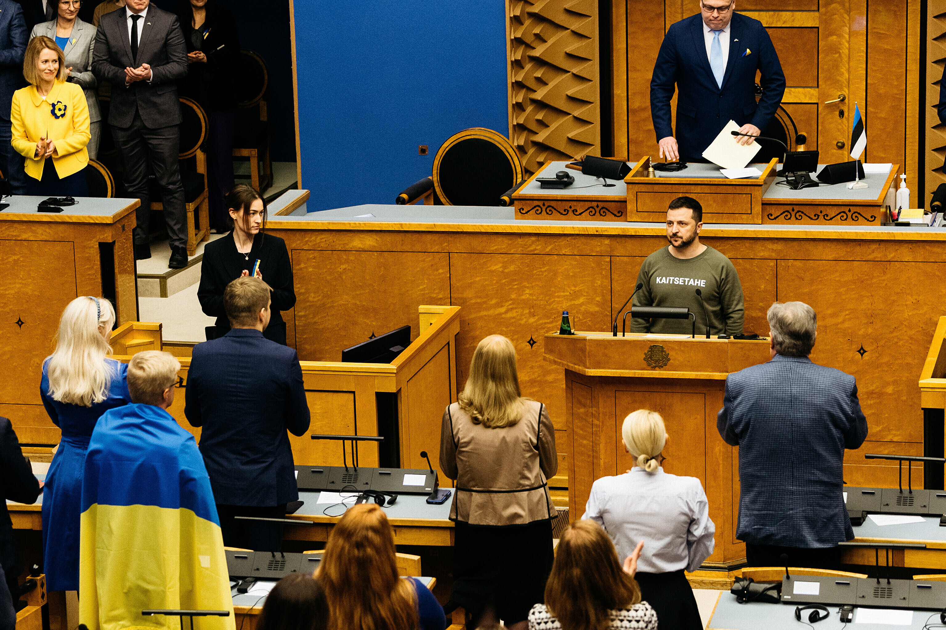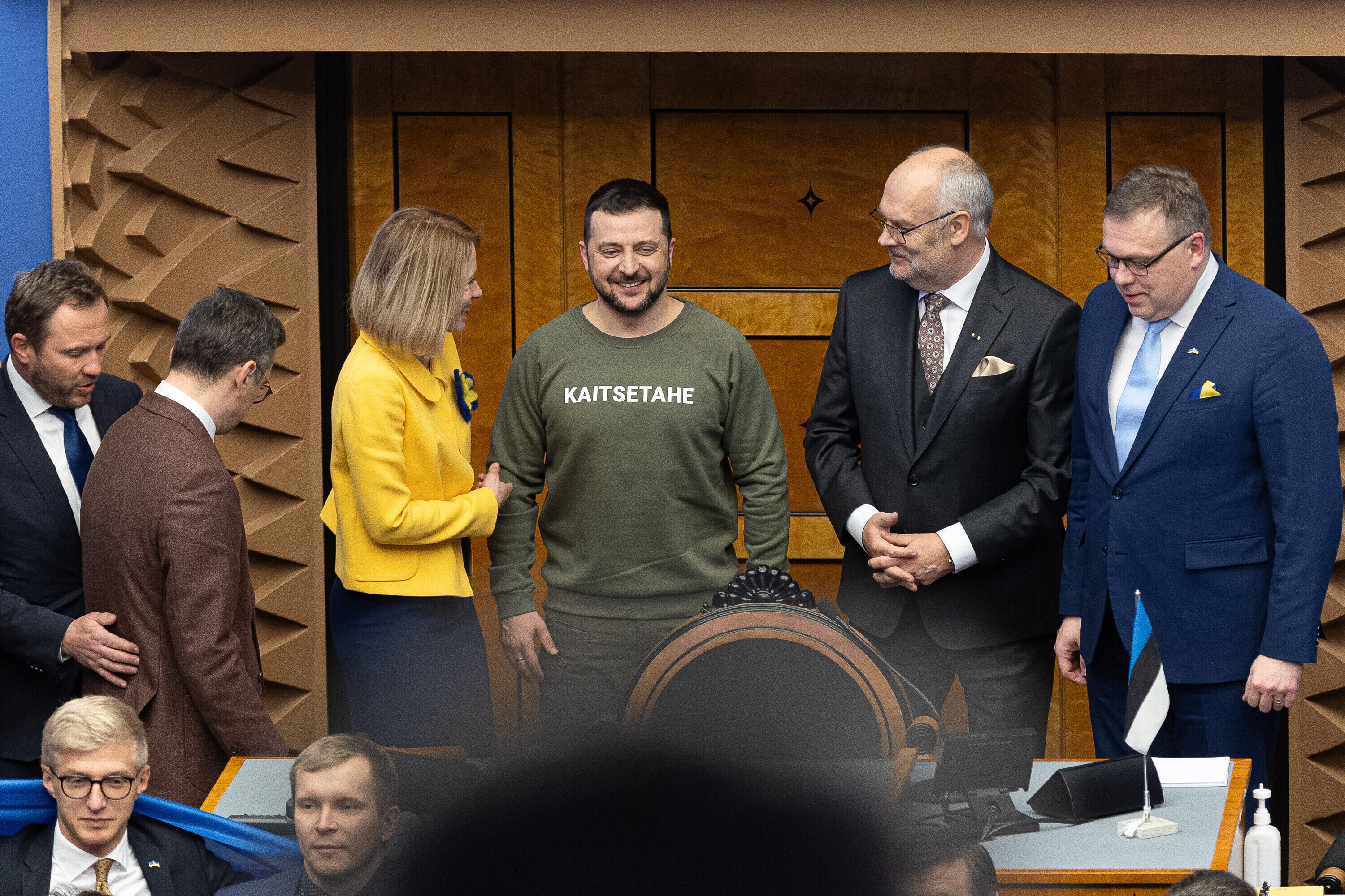 Когда я сегодня шел к вам в парламент, госпожа премьер-министр подарила мне этот свитшот. Она сказала, что значение этого слова – kaitsetahe – объединило многих из вас, многих эстонцев. Вы должны знать, то что здесь написано, запечатлено в сердцах многих украинцев. Воля к обороне. И я уверен, что непременно наступит тот день, когда всех нас объединит еще одно слово. Võidutahe. Воля к победе. И мы поздравим друг друга с победой. С победой над Россией в этой войне. Вместе. Всегда вместе.