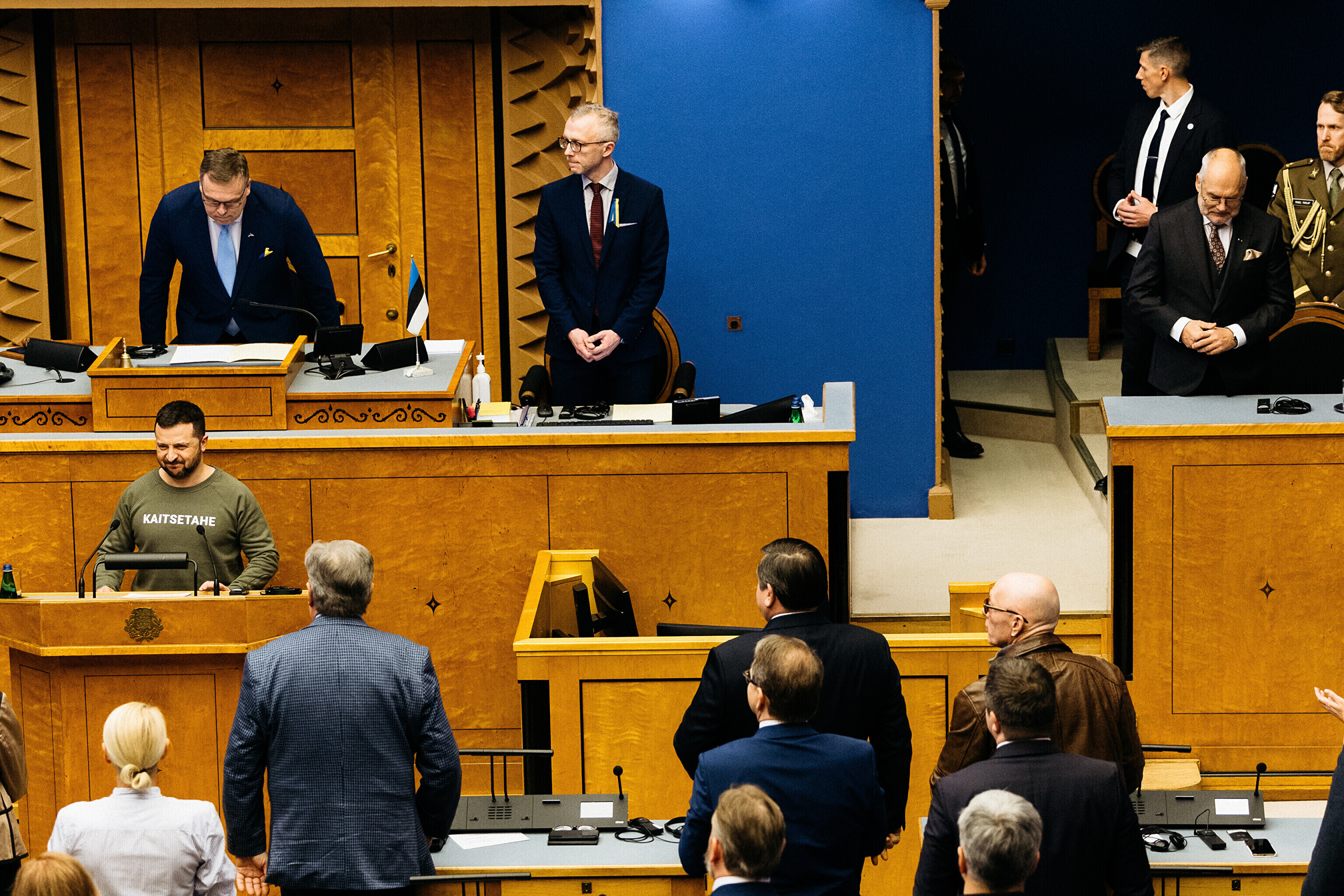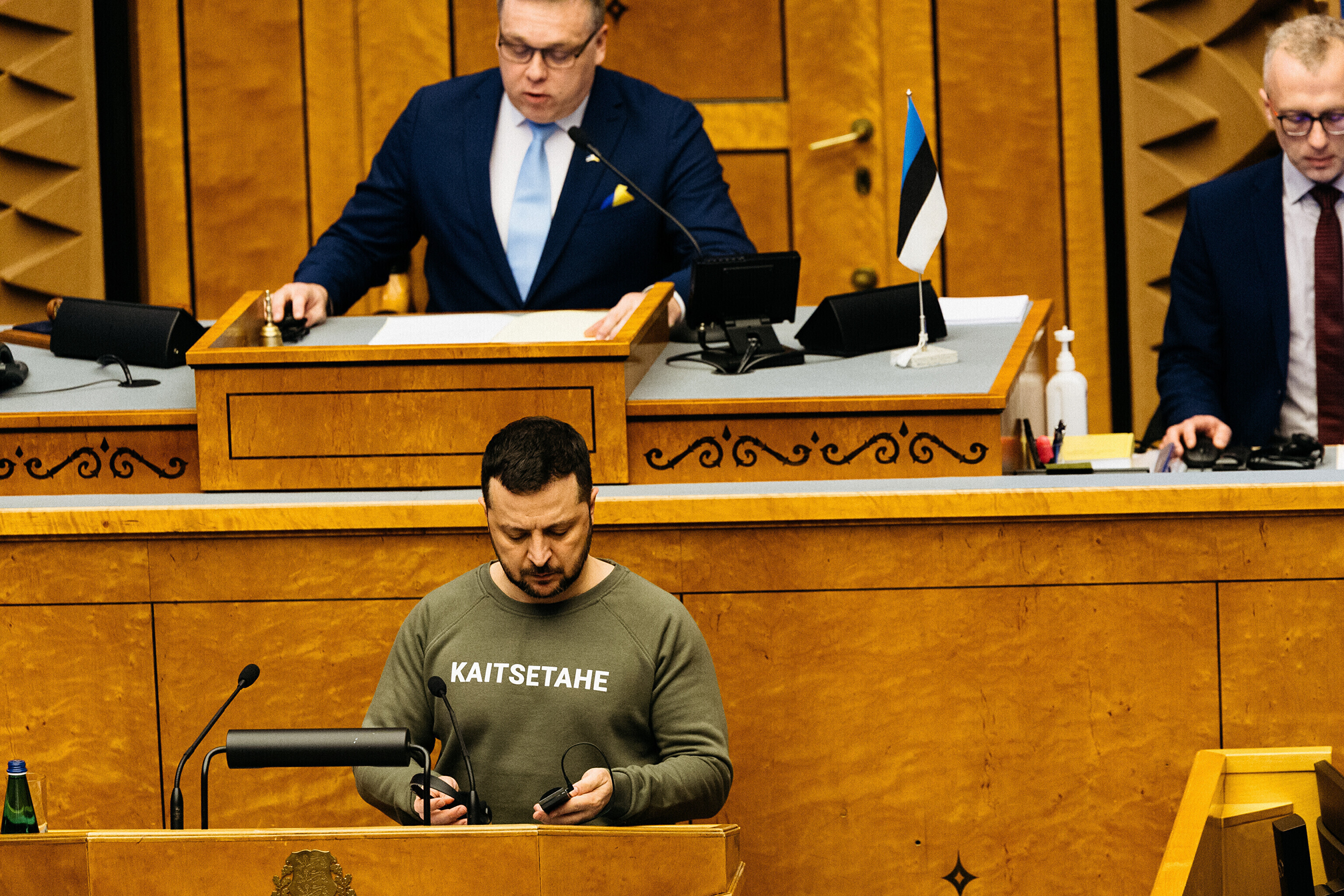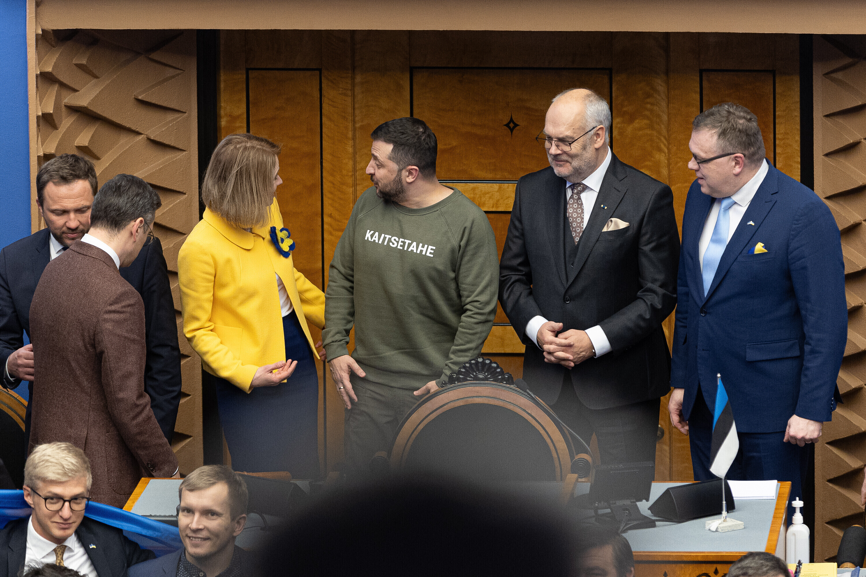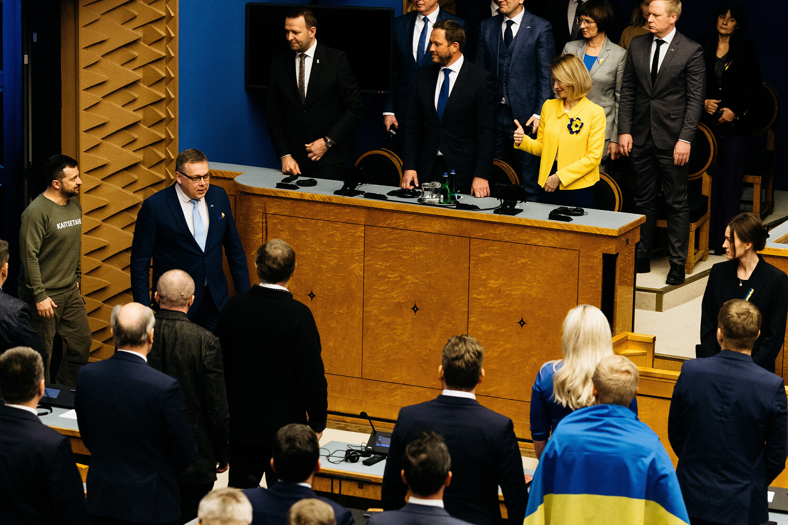 Когда я сегодня шел к вам в парламент, госпожа премьер-министр подарила мне этот свитшот. Она сказала, что значение этого слова – kaitsetahe – объединило многих из вас, многих эстонцев. Вы должны знать, то что здесь написано, запечатлено в сердцах многих украинцев. Воля к обороне. И я уверен, что непременно наступит тот день, когда всех нас объединит еще одно слово. Võidutahe. Воля к победе. И мы поздравим друг друга с победой. С победой над Россией в этой войне. Вместе. Всегда вместе.