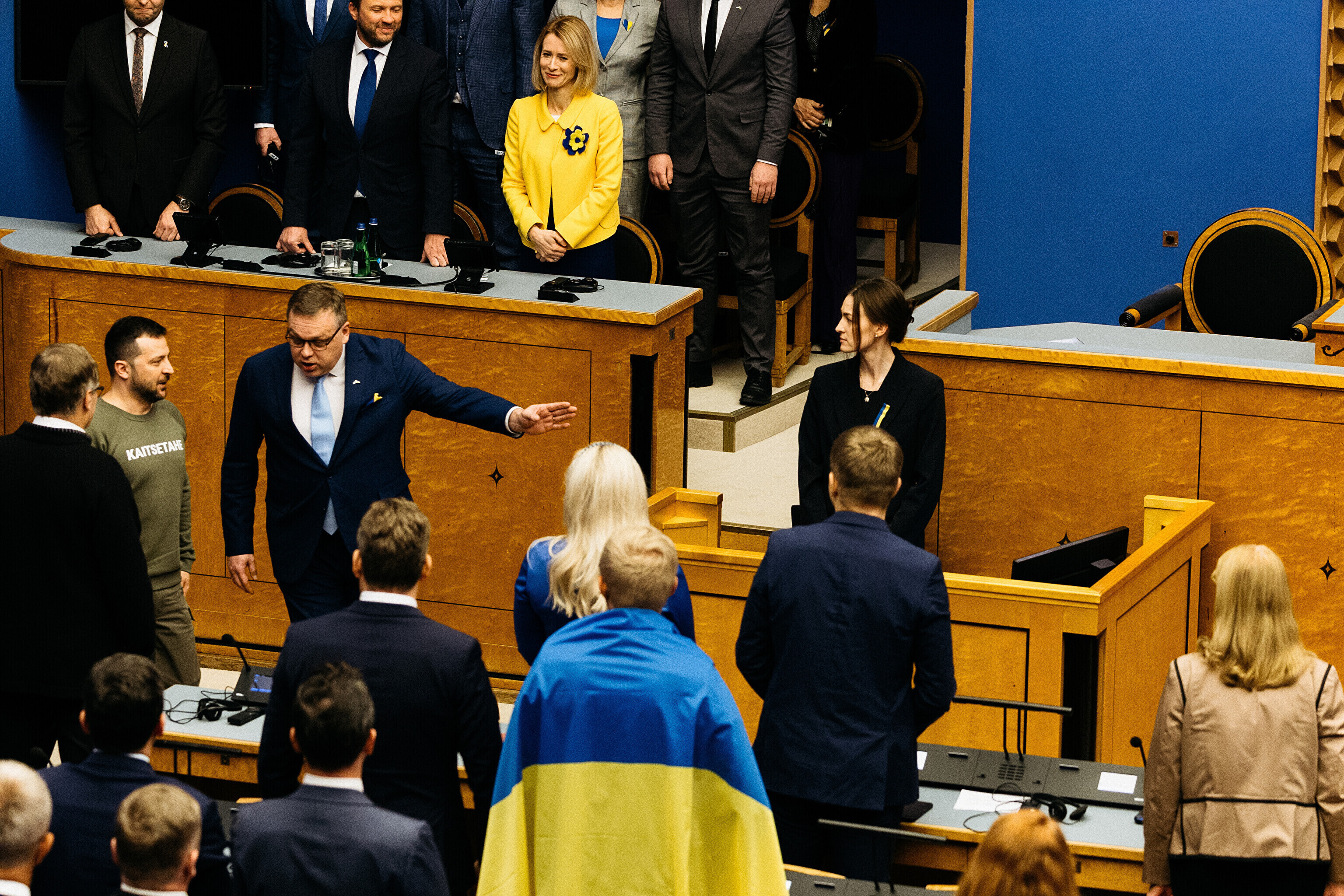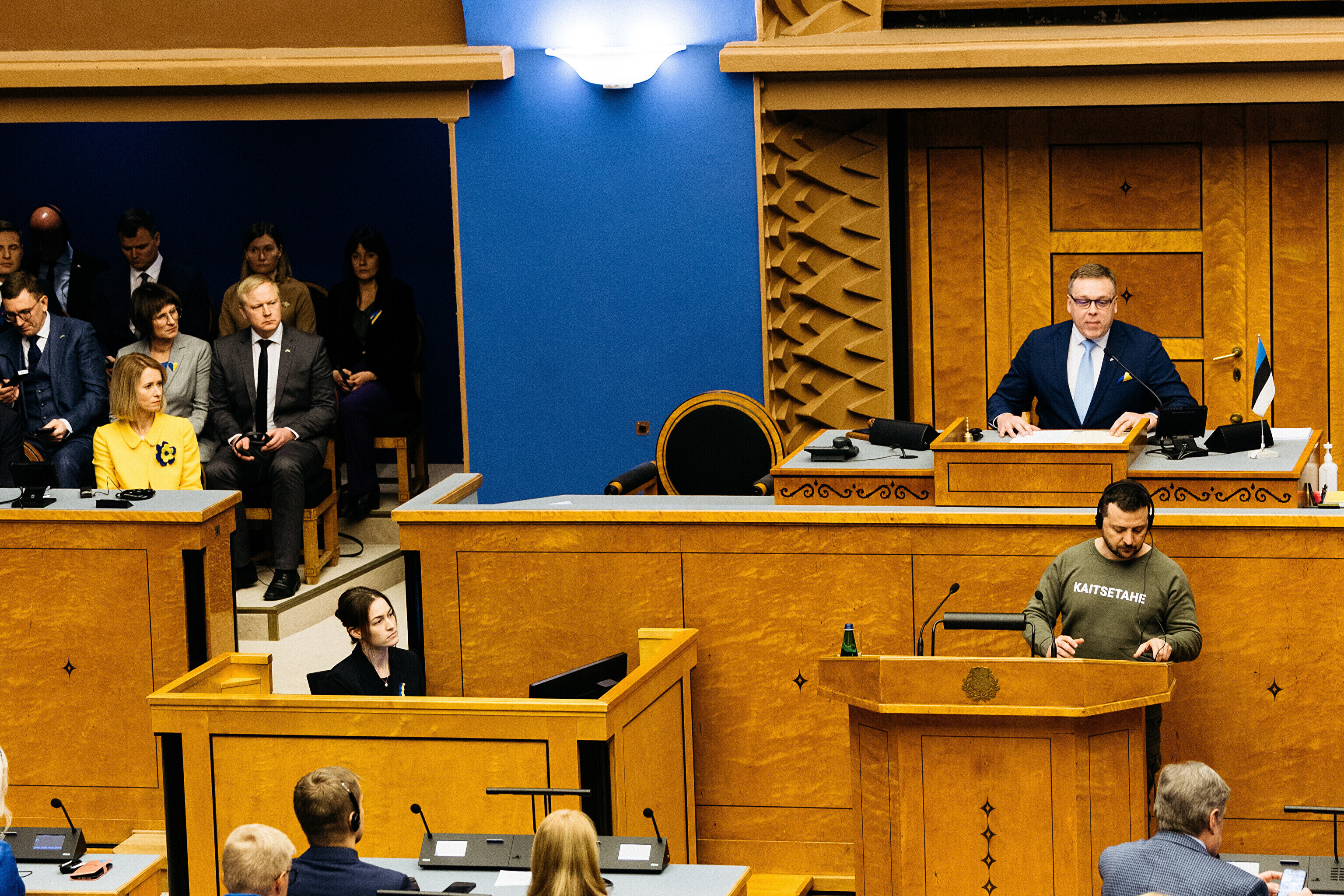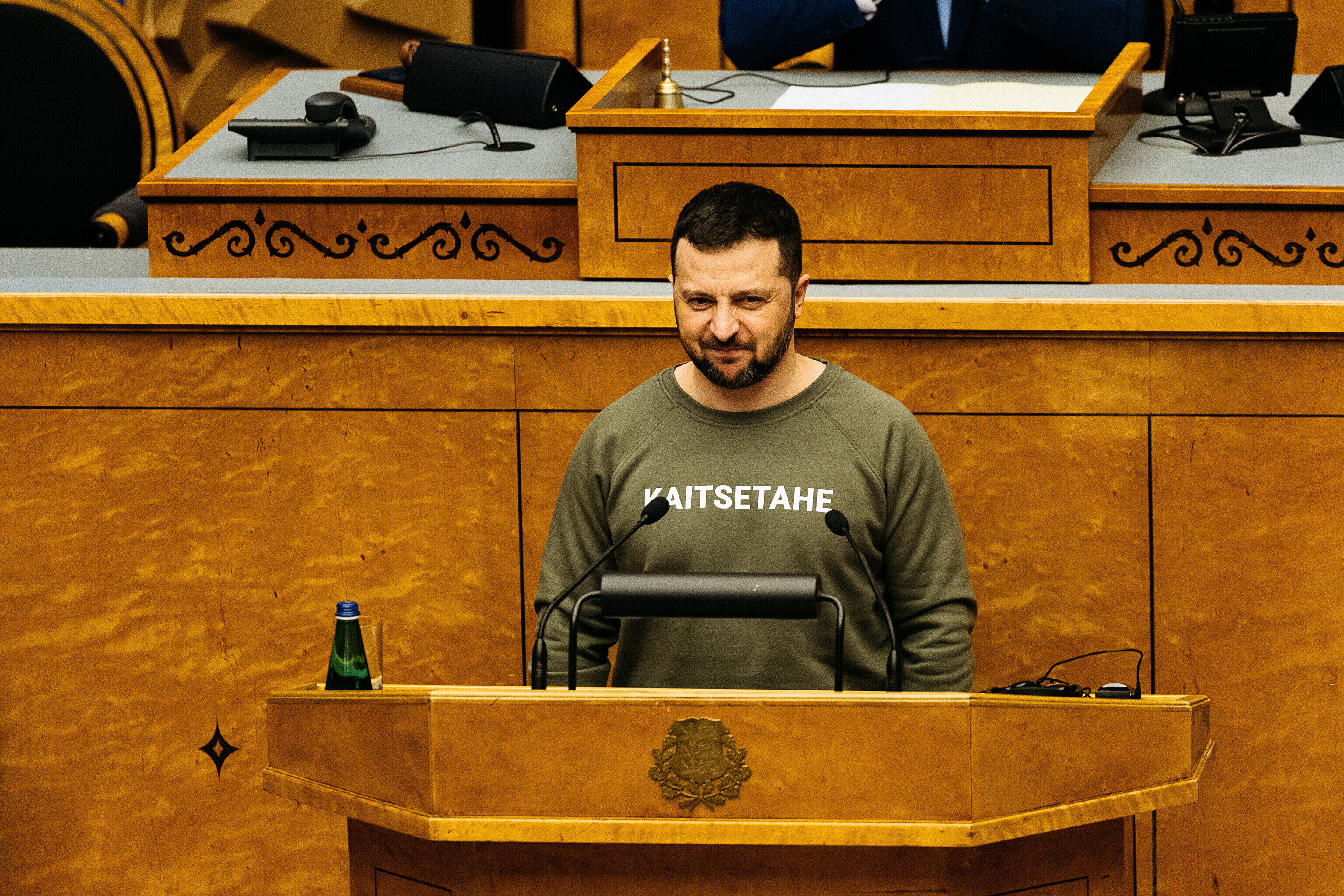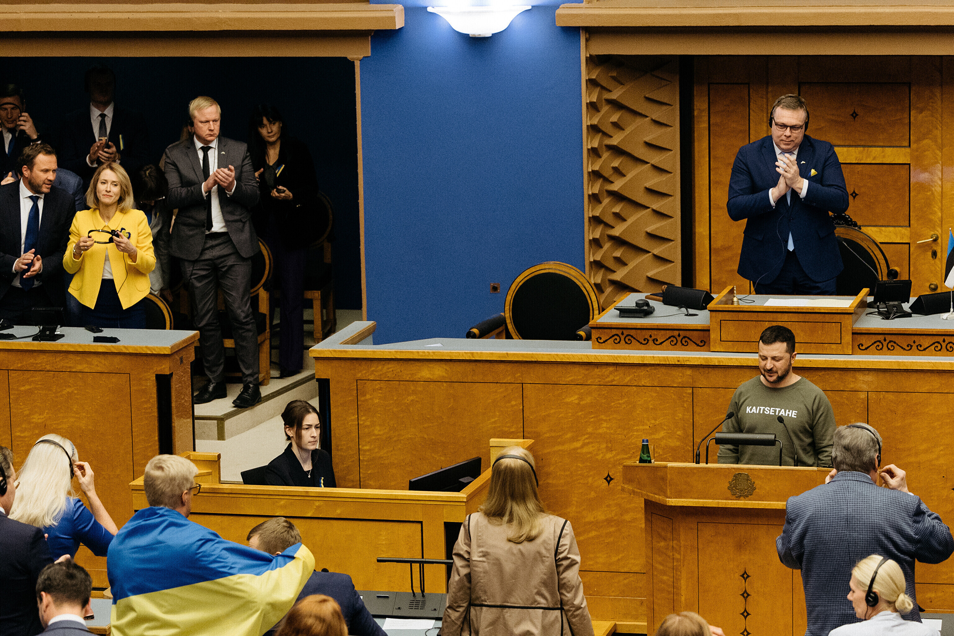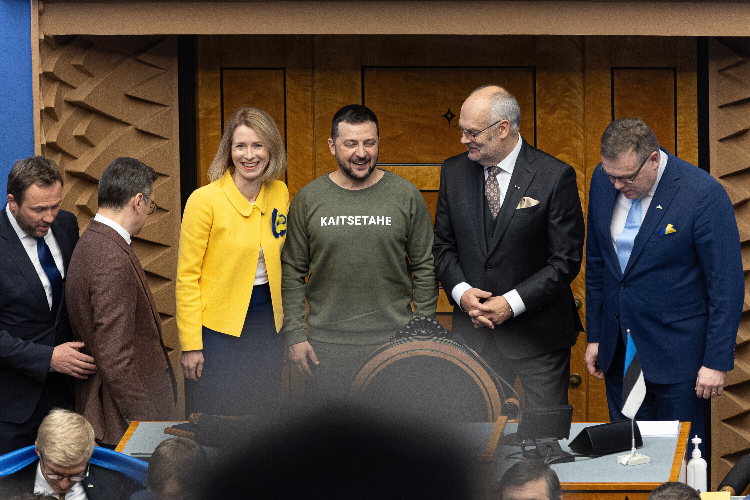 Когда я сегодня шел к вам в парламент, госпожа премьер-министр подарила мне этот свитшот. Она сказала, что значение этого слова – kaitsetahe – объединило многих из вас, многих эстонцев. Вы должны знать, то что здесь написано, запечатлено в сердцах многих украинцев. Воля к обороне. И я уверен, что непременно наступит тот день, когда всех нас объединит еще одно слово. Võidutahe. Воля к победе. И мы поздравим друг друга с победой. С победой над Россией в этой войне. Вместе. Всегда вместе.