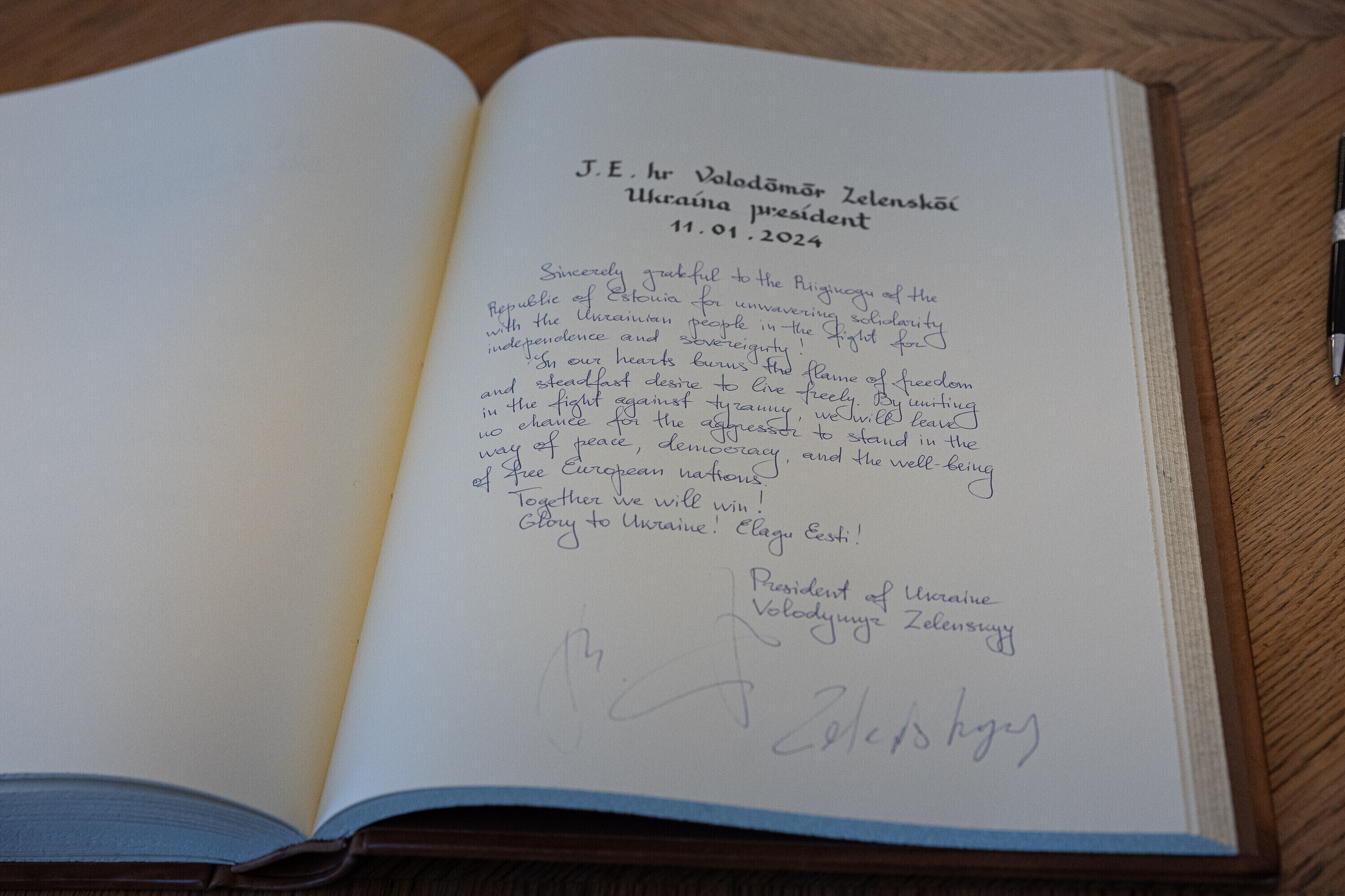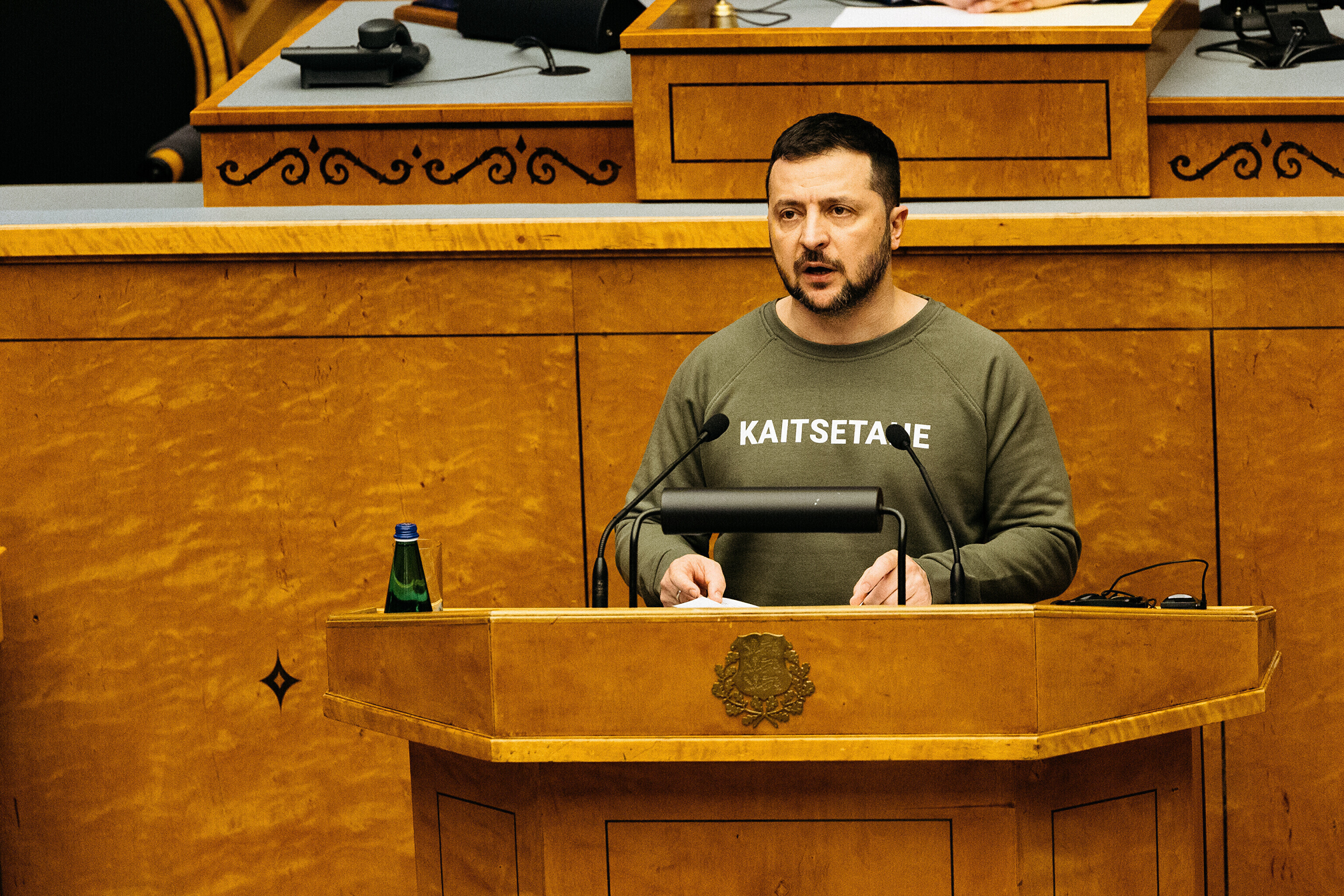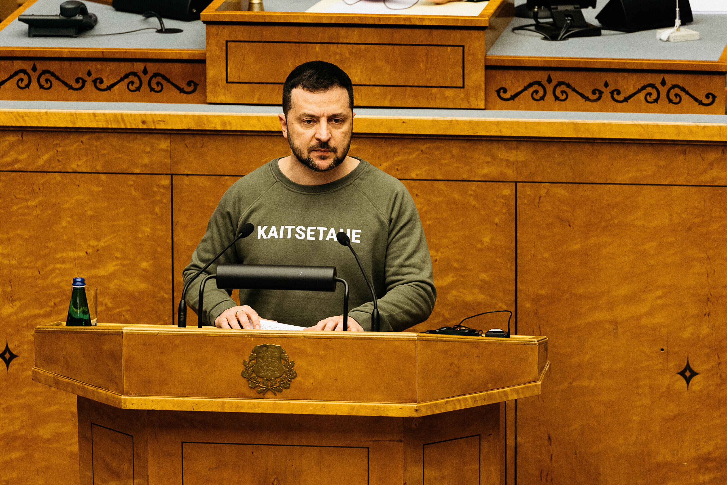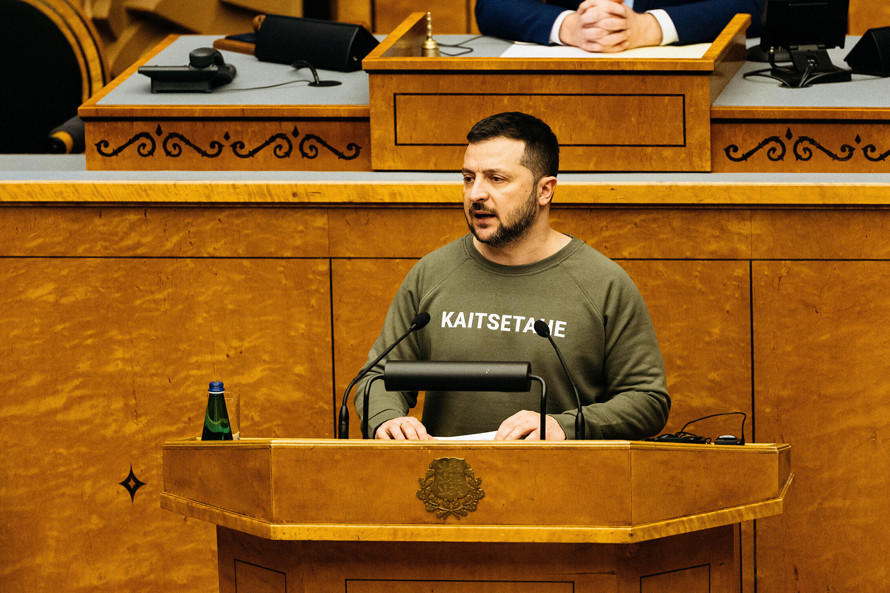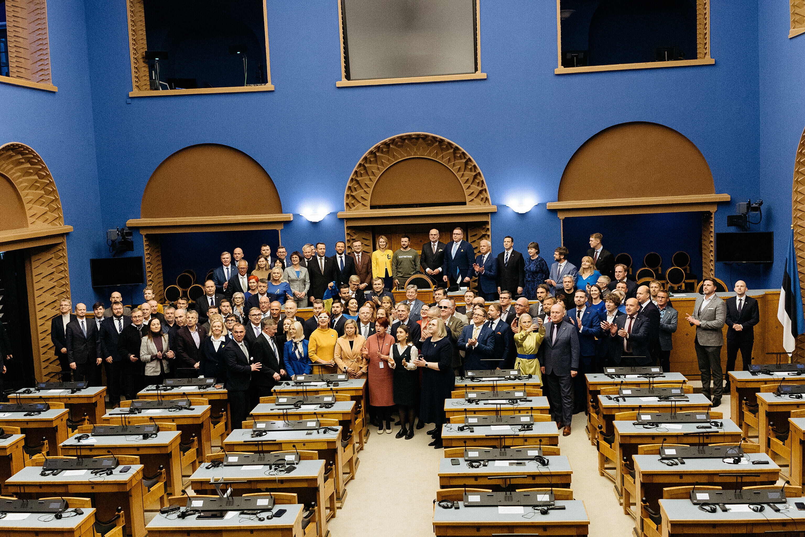 Когда я сегодня шел к вам в парламент, госпожа премьер-министр подарила мне этот свитшот. Она сказала, что значение этого слова – kaitsetahe – объединило многих из вас, многих эстонцев. Вы должны знать, то что здесь написано, запечатлено в сердцах многих украинцев. Воля к обороне. И я уверен, что непременно наступит тот день, когда всех нас объединит еще одно слово. Võidutahe. Воля к победе. И мы поздравим друг друга с победой. С победой над Россией в этой войне. Вместе. Всегда вместе.