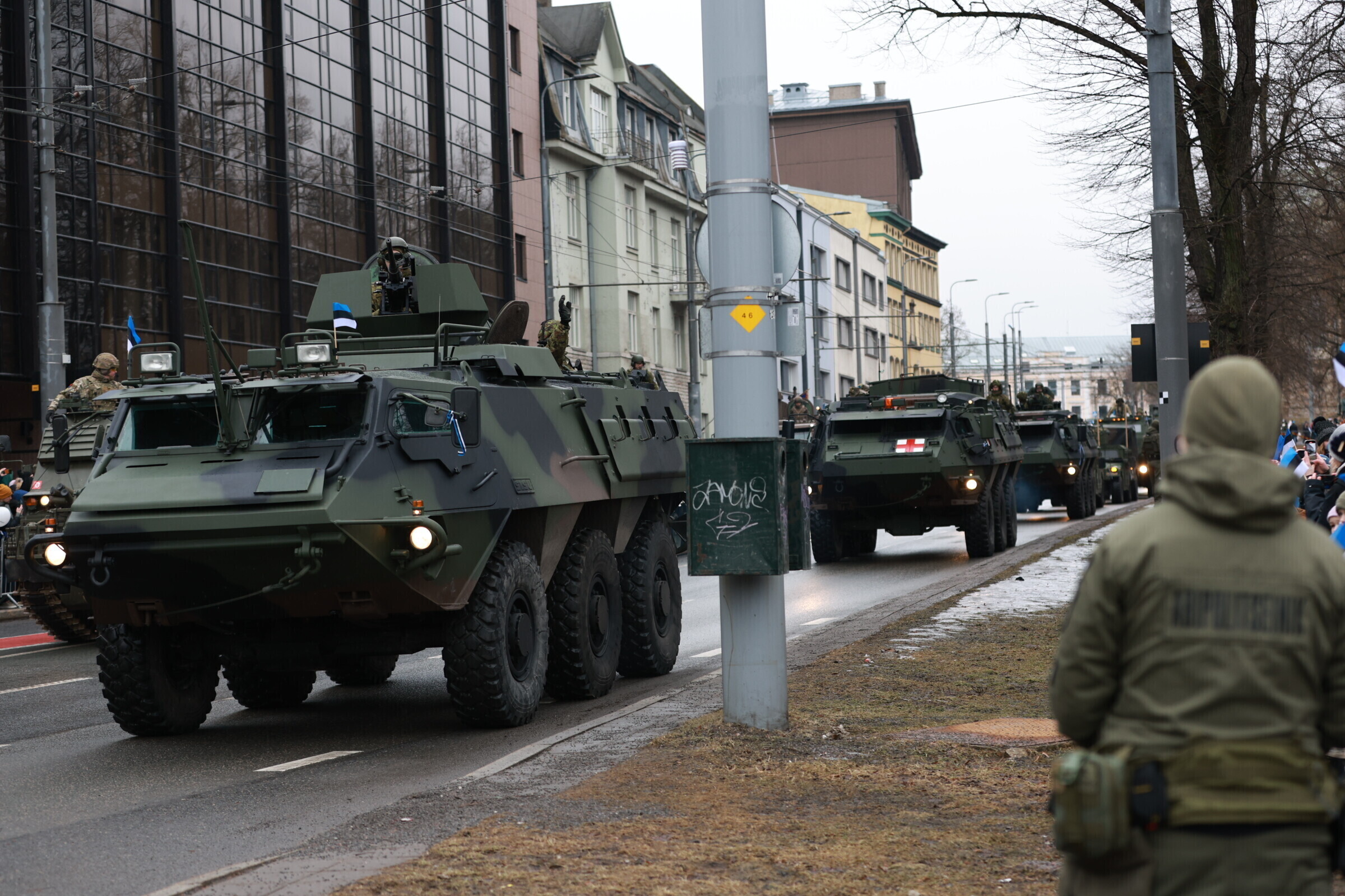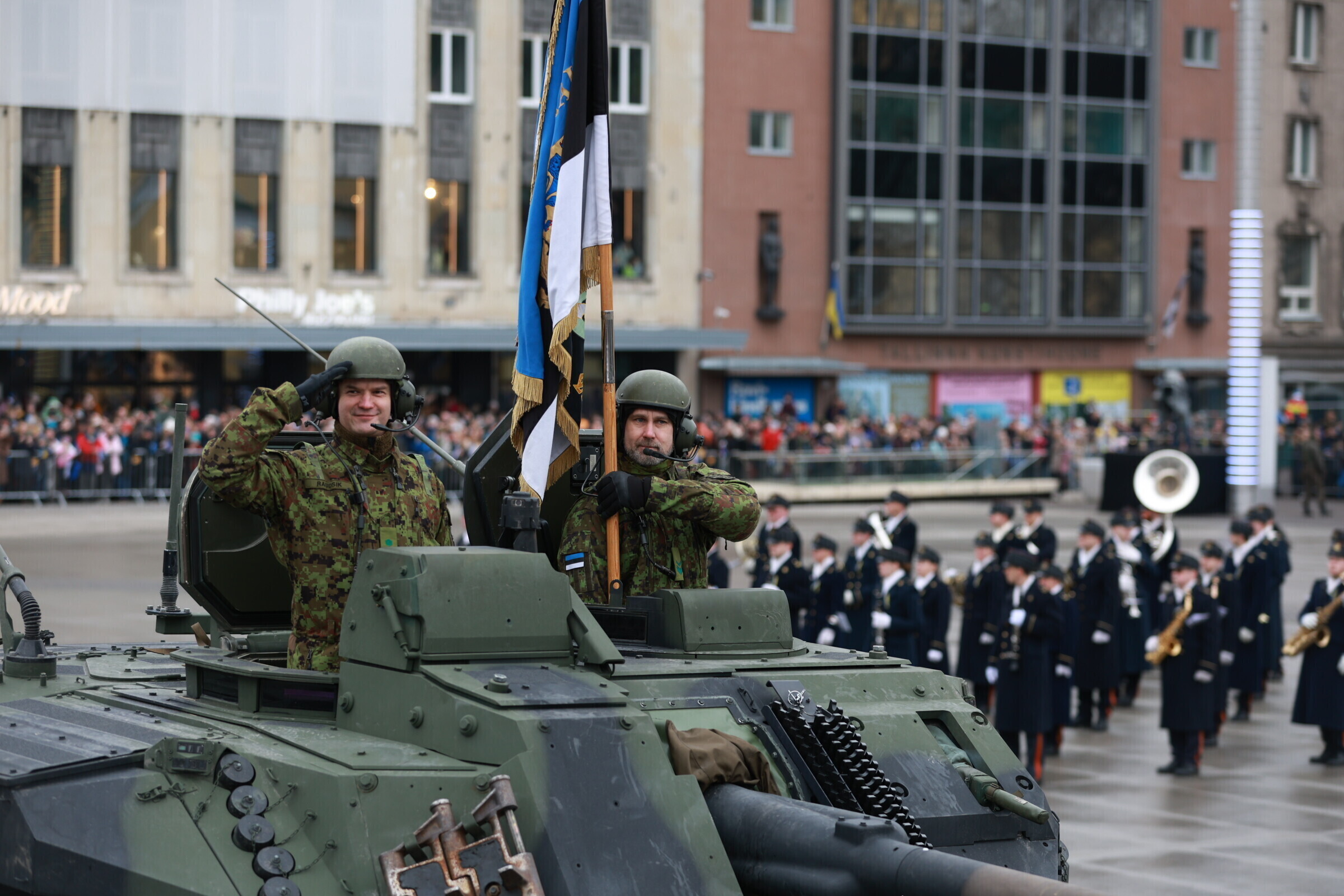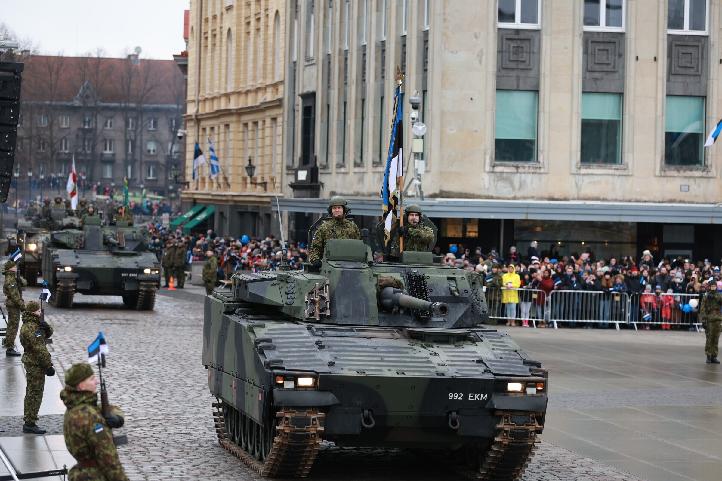 На площади Вабадузе в Таллинне в субботу, 24 февраля, прошел военный парад по случаю Дня независимости, в котором принимали участие свыше 800 военнослужащих и около 30 единиц техники.