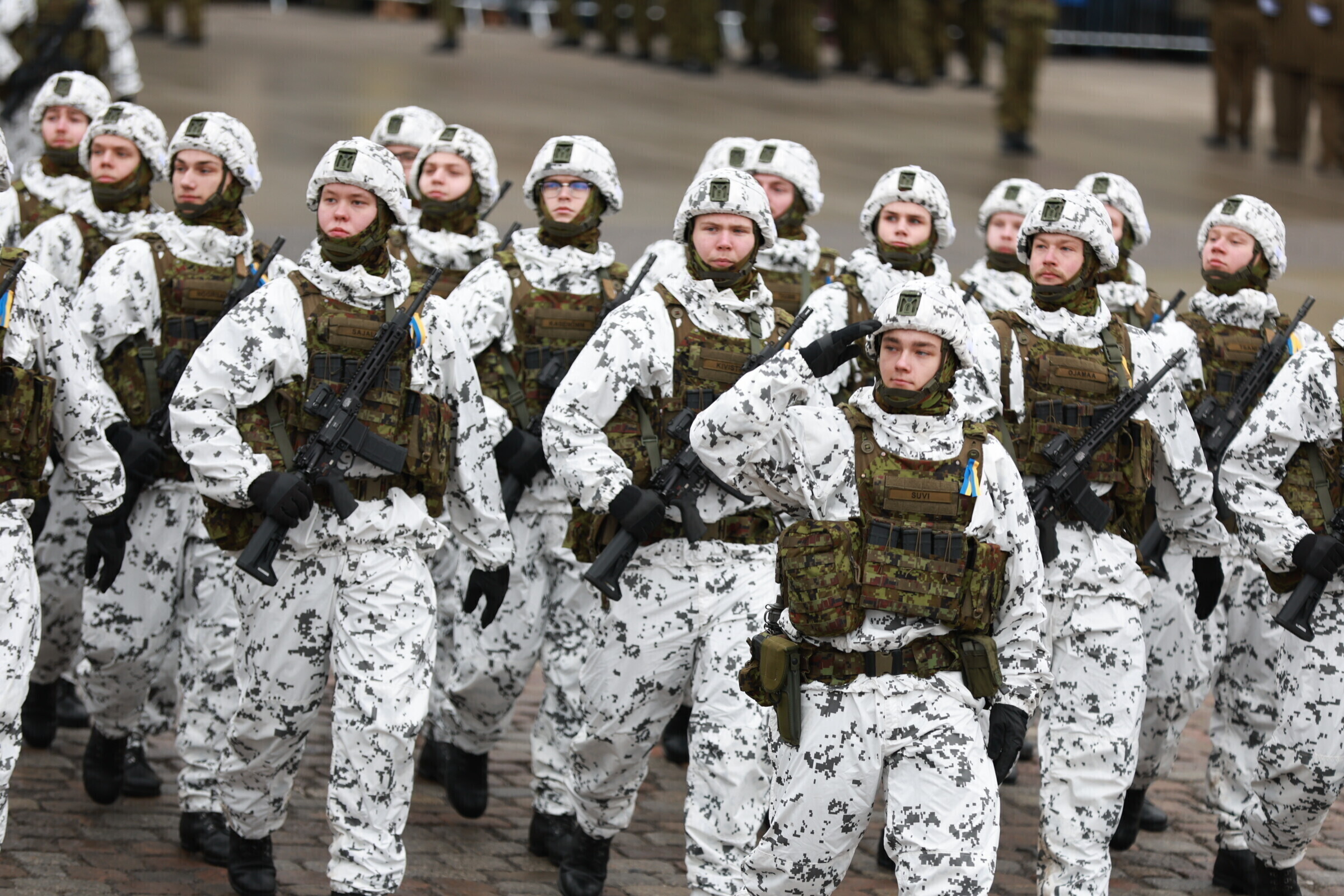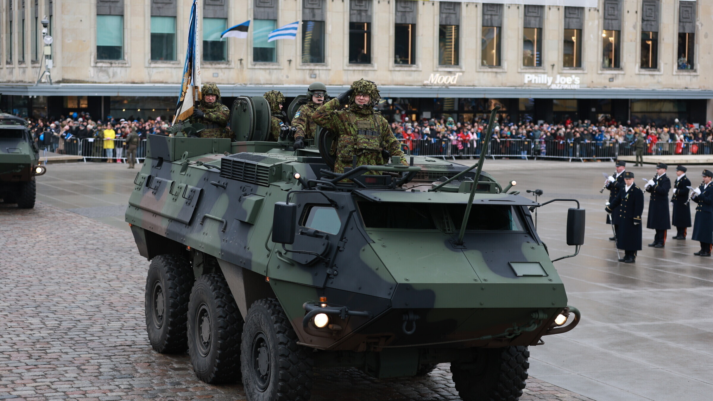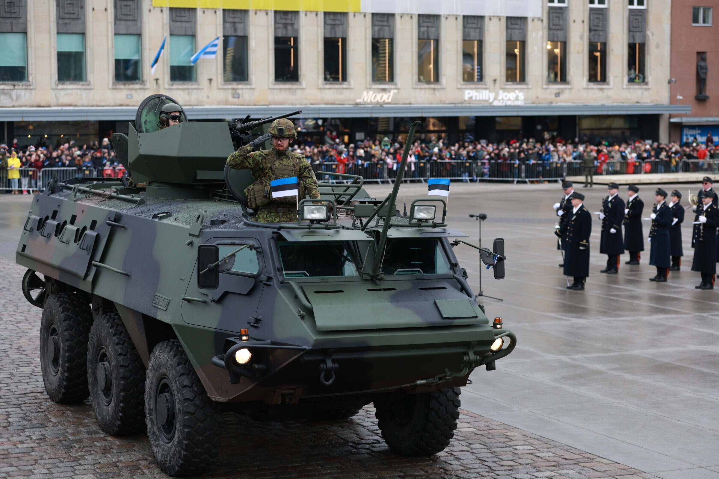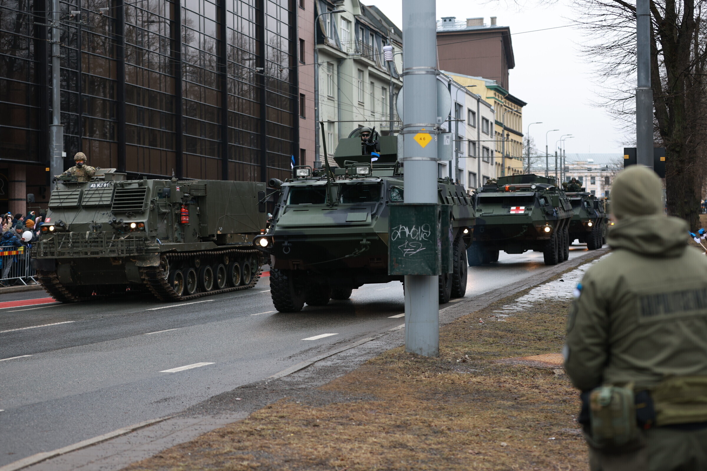 На площади Вабадузе в Таллинне в субботу, 24 февраля, прошел военный парад по случаю Дня независимости, в котором принимали участие свыше 800 военнослужащих и около 30 единиц техники.