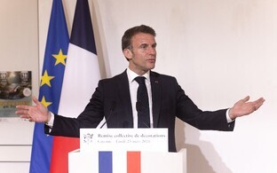 "Мы мобилизуем как двустороннее, так и многостороннее финансирование", — сказал Макрон. Хотя президент Франции поддерживает двустороннее использование французских фондов для закупки боеприпасов за пределами ЕС, он продолжает блокировать использование совместных фондов ЕС для той же цели.