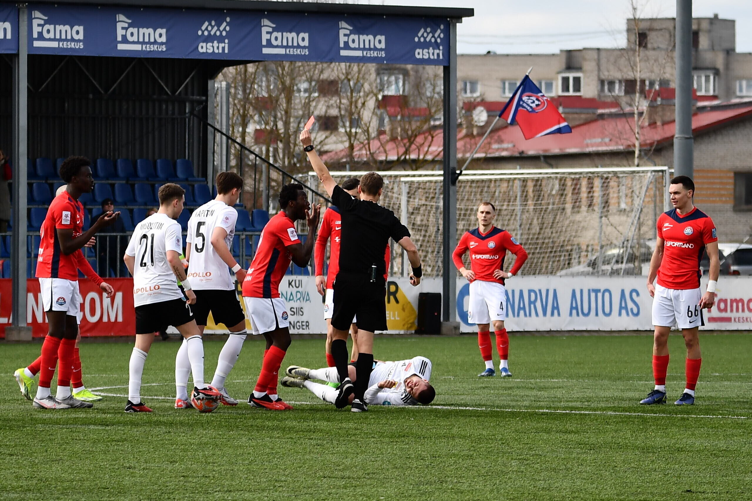 Концовку нарвитяне доигрывали вдесятером - на 75-й минуте был удален Марк Максимкин.