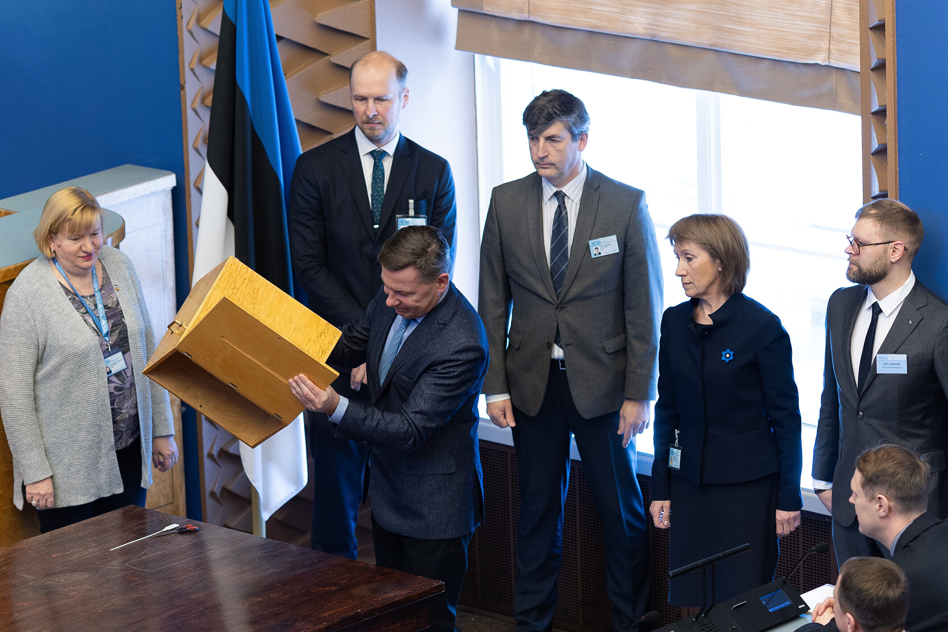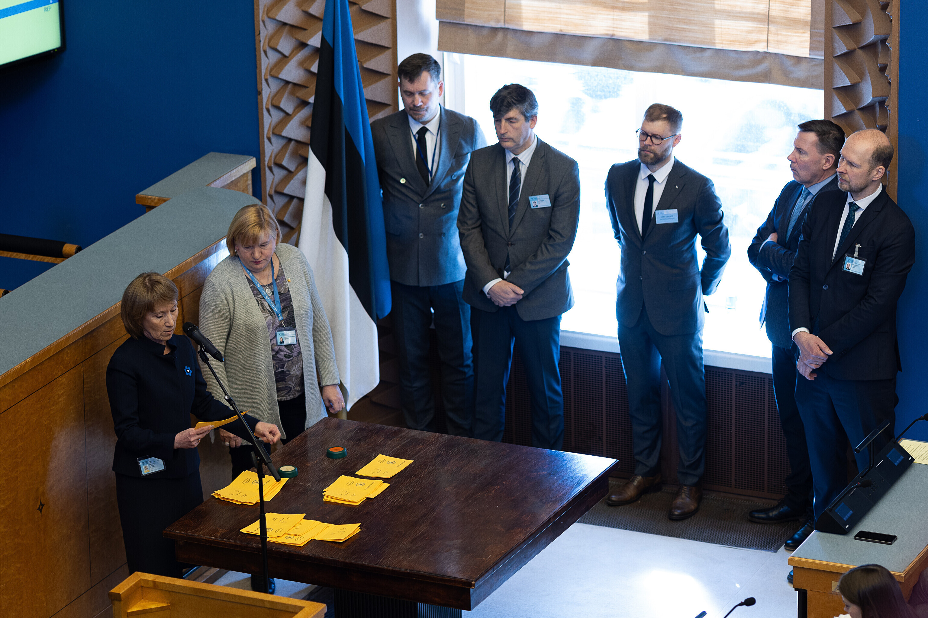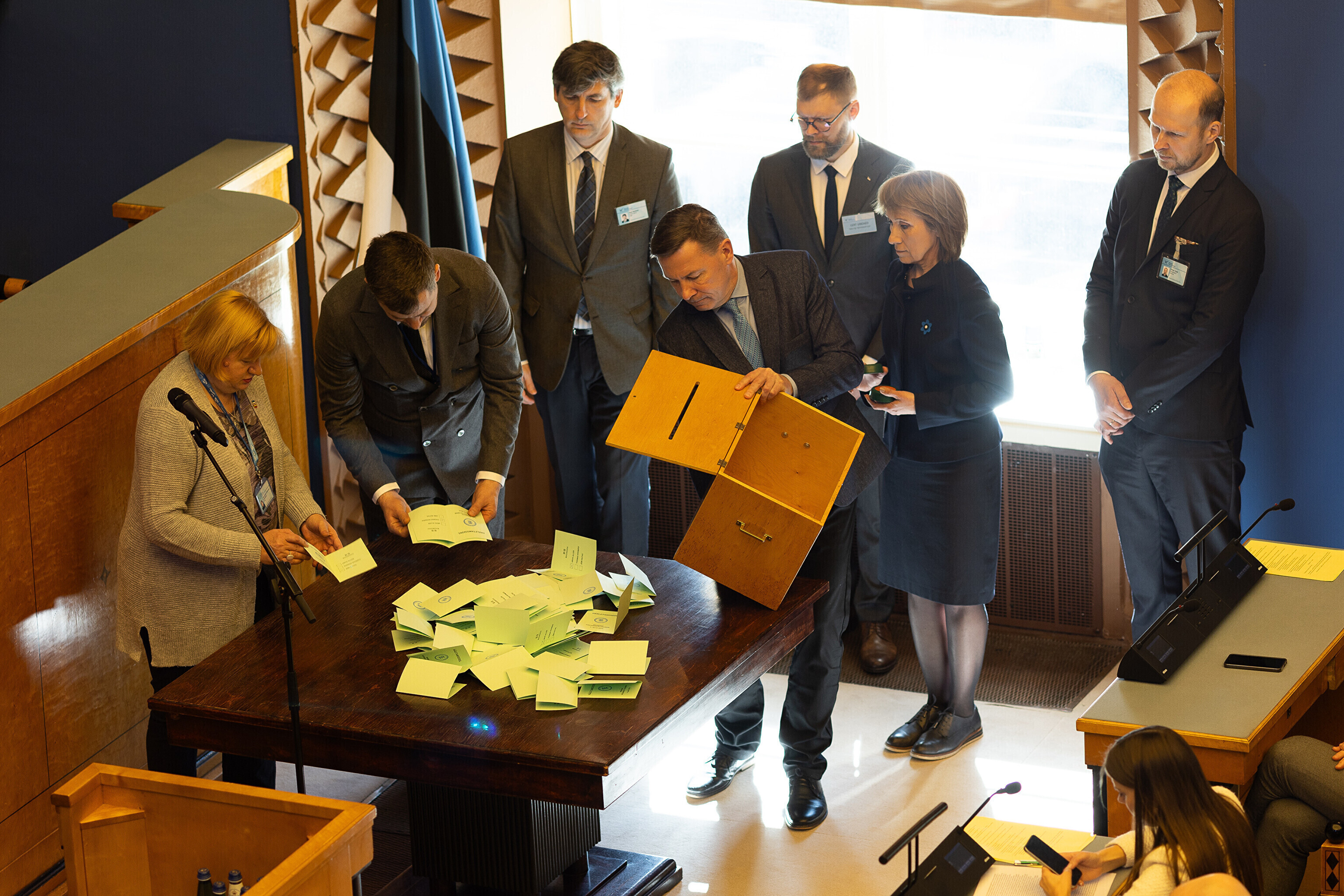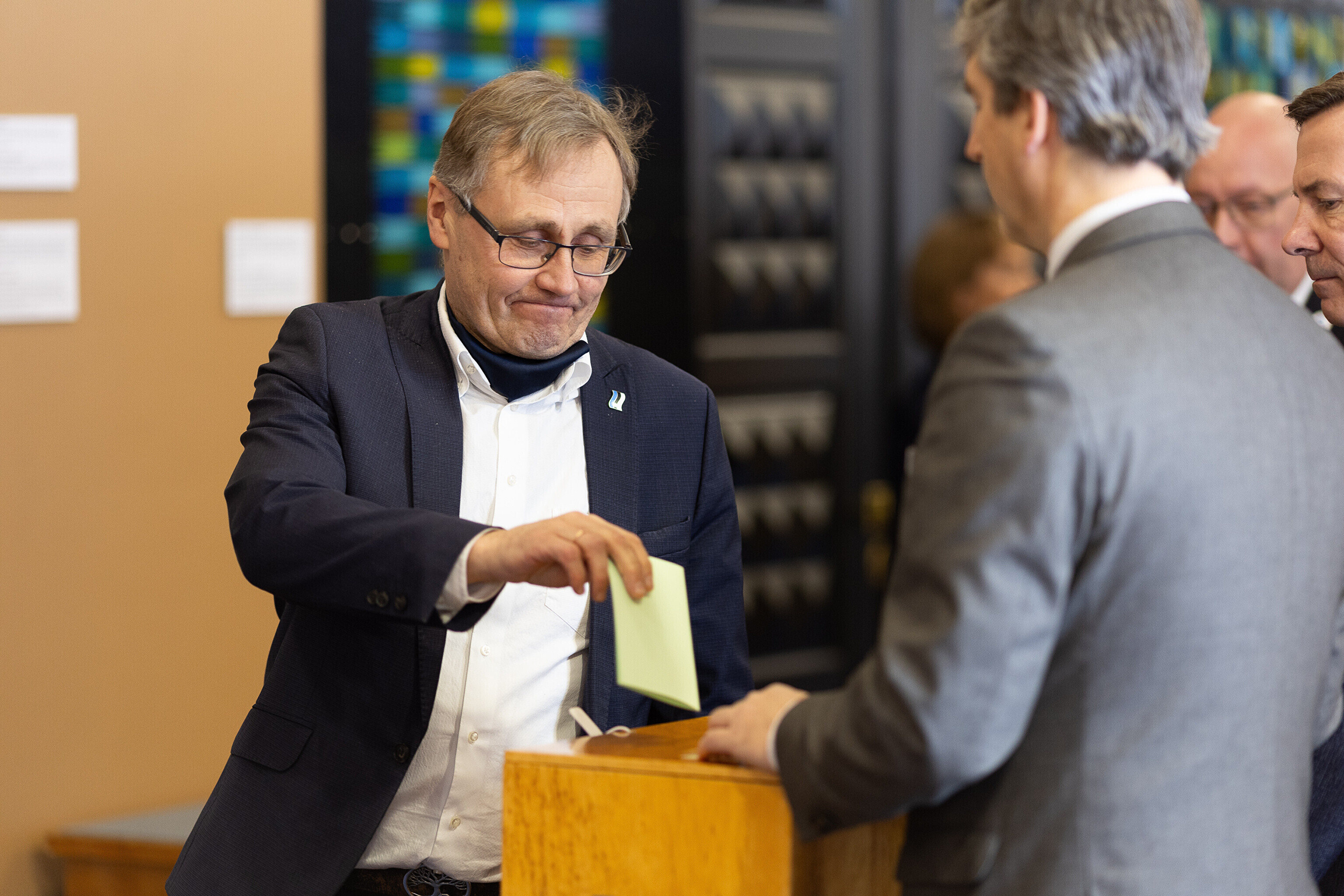 Единственный депутат от партии Eesti 200 Лаури Хуссар, за которого проголосовали 64 депутата, а против – 28 депутатов, был переизбран на пост спикера Рийгикогу; пять бюллетеней были признаны недействительными.