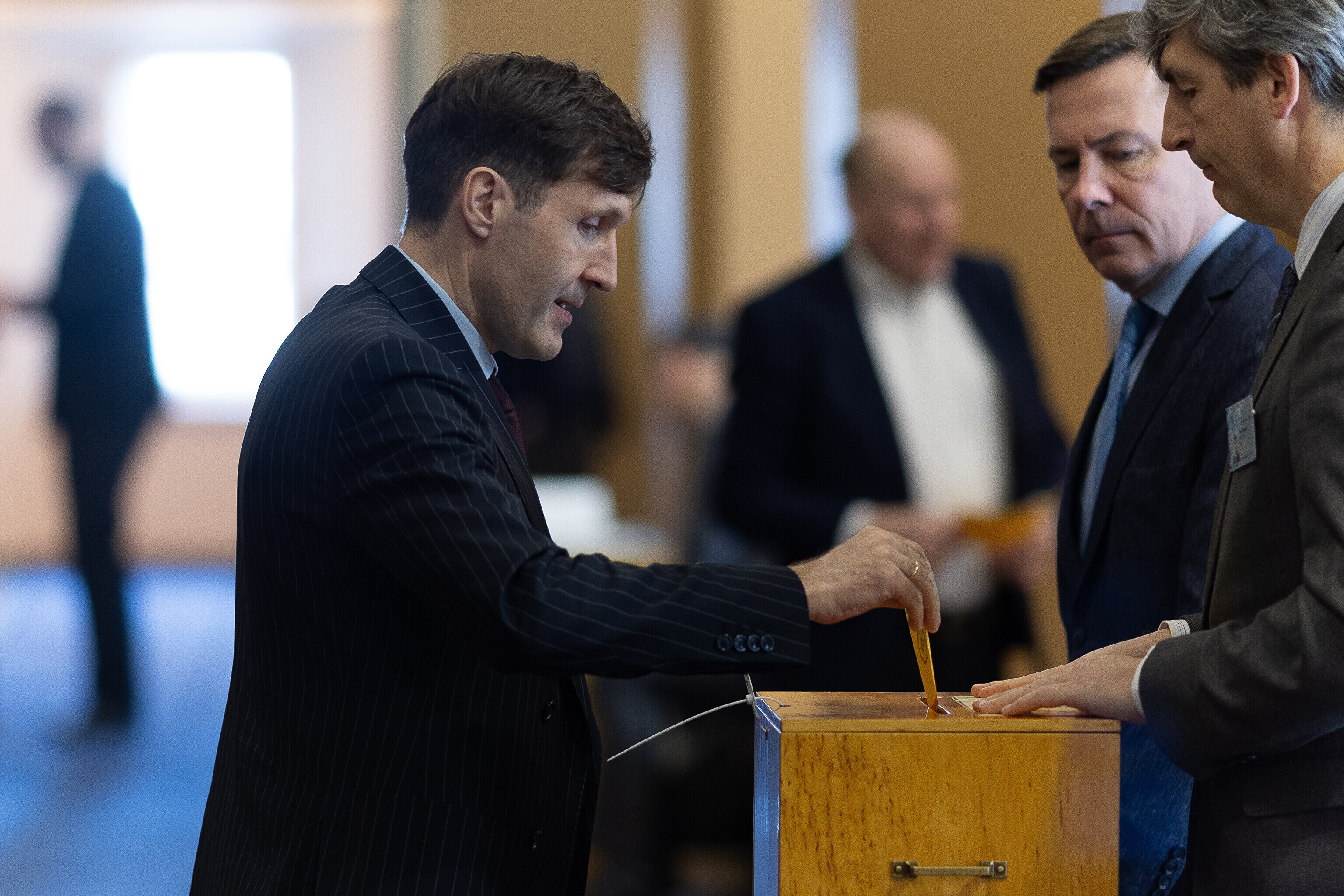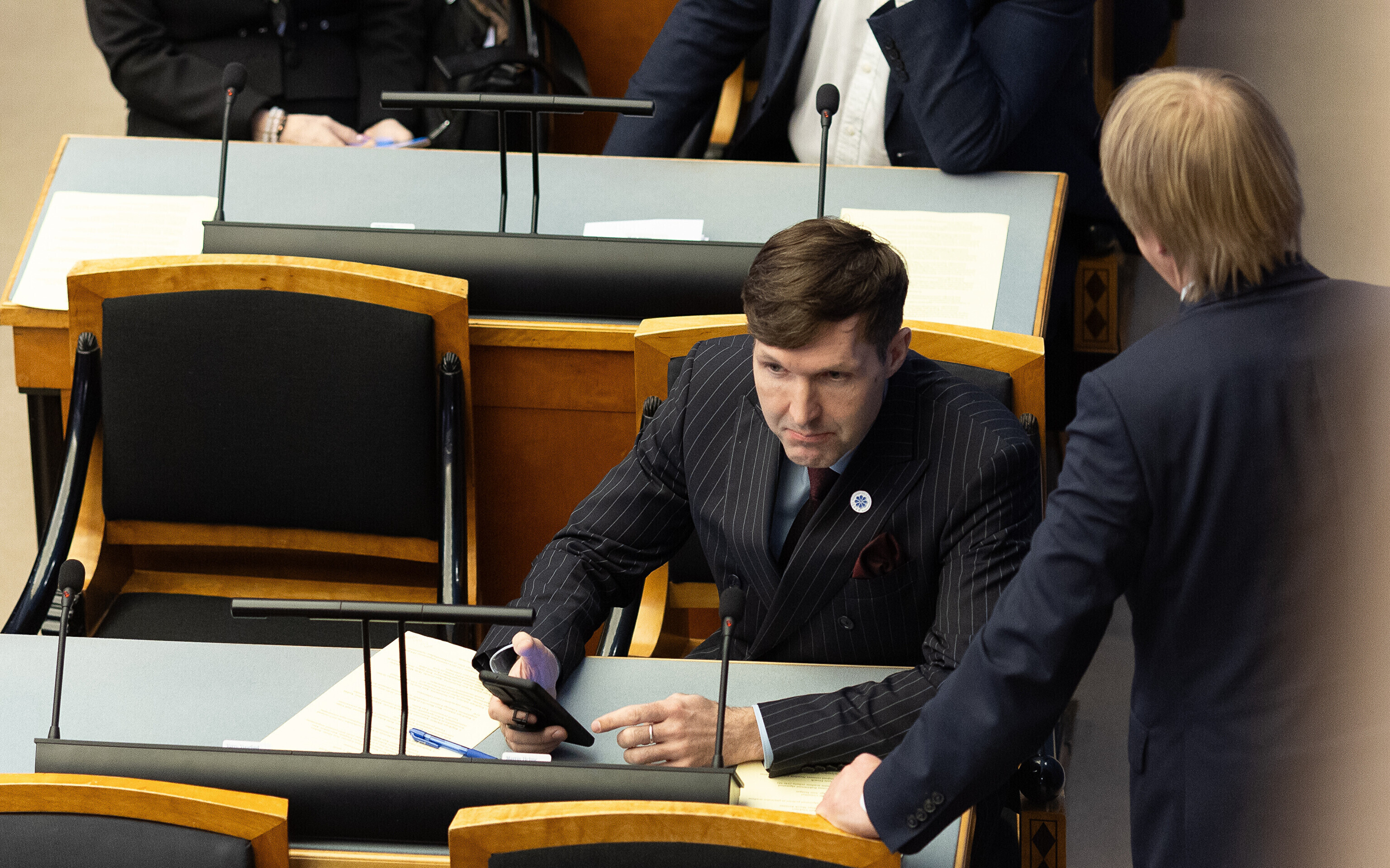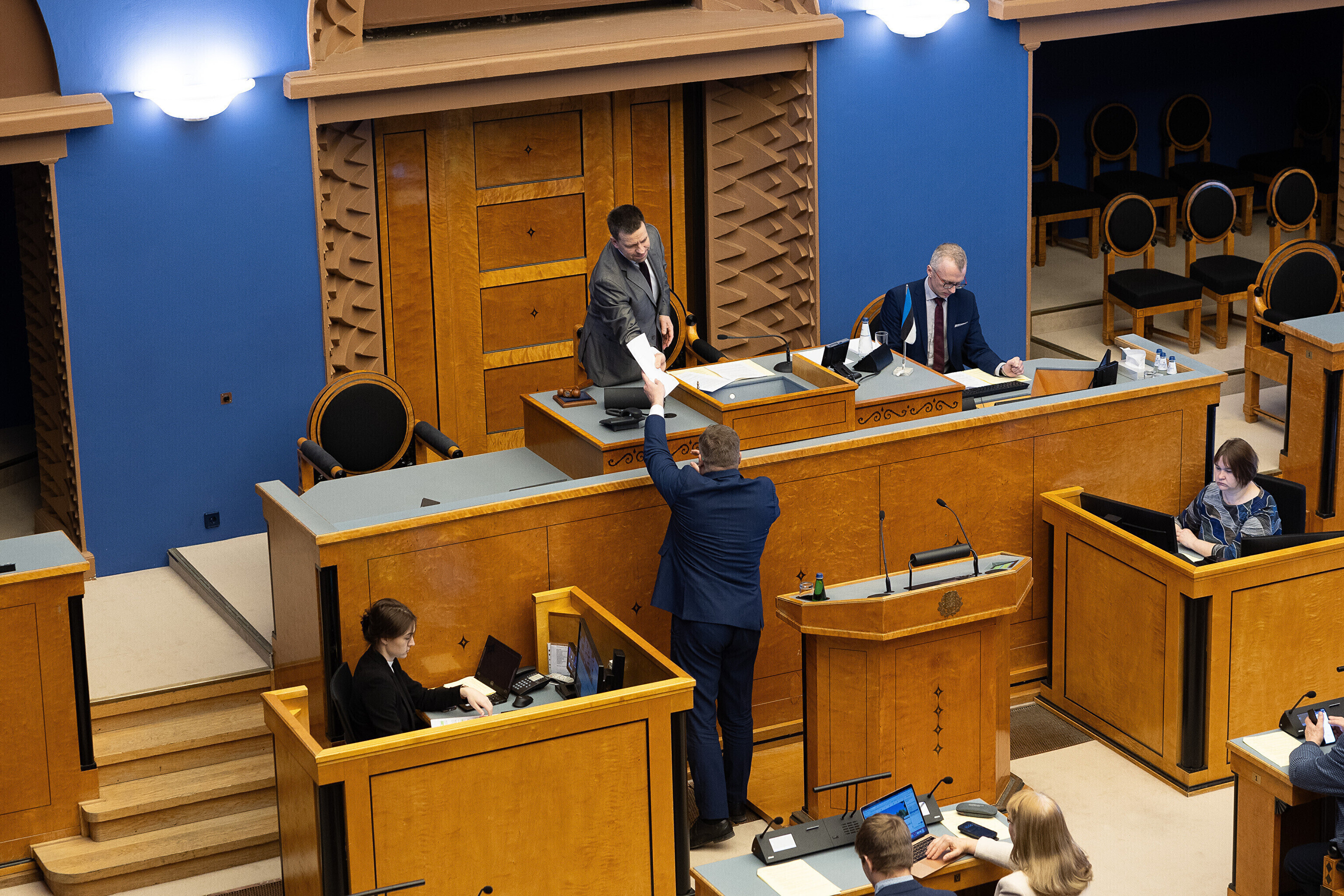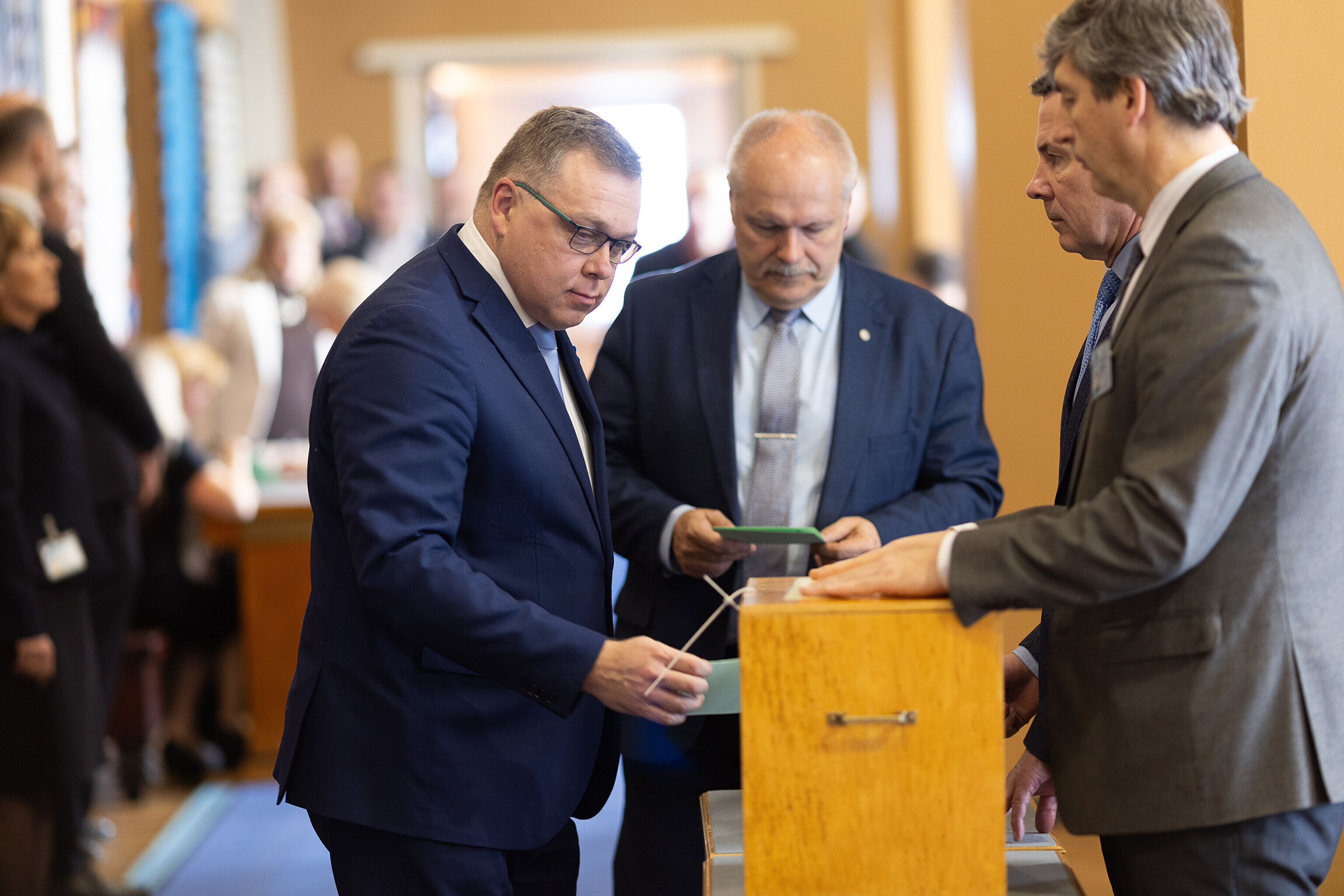 Единственный депутат от партии Eesti 200 Лаури Хуссар, за которого проголосовали 64 депутата, а против – 28 депутатов, был переизбран на пост спикера Рийгикогу; пять бюллетеней были признаны недействительными.