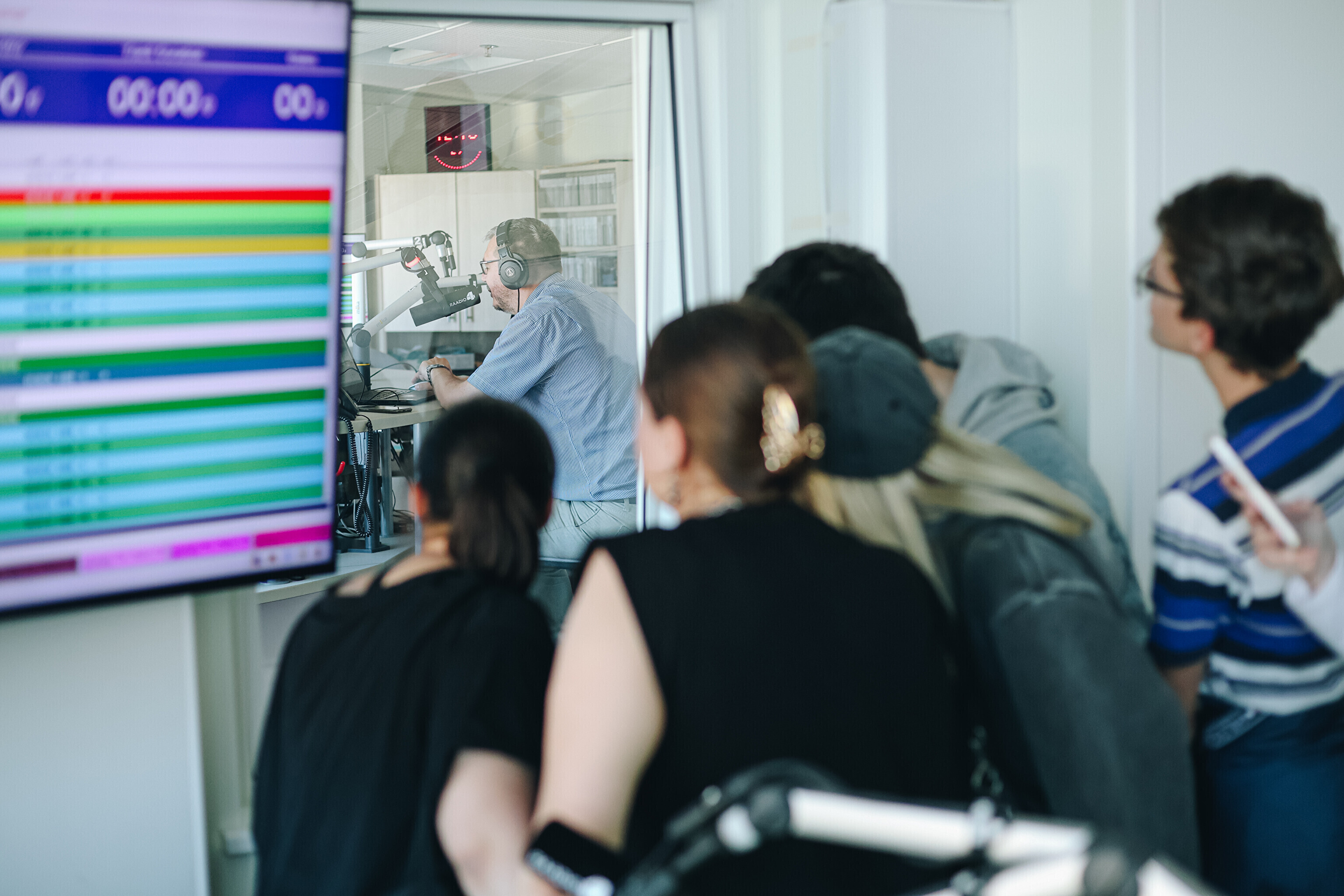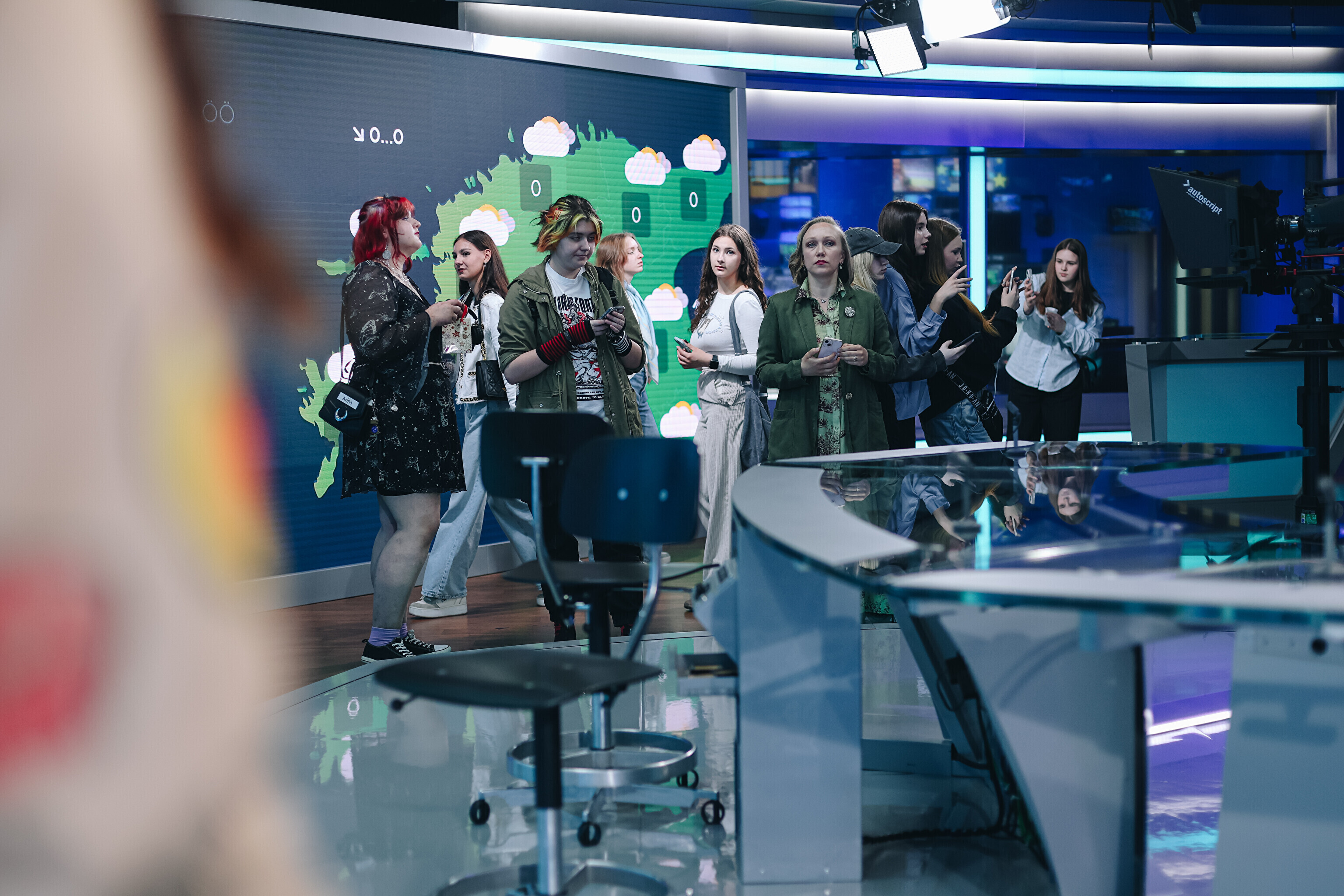 Участники Летней школы журналистики для молодежи в рамках обучения посетили в Таллинне студии Радио 4, ETV и ETV+, а также новостных редакций ERR.