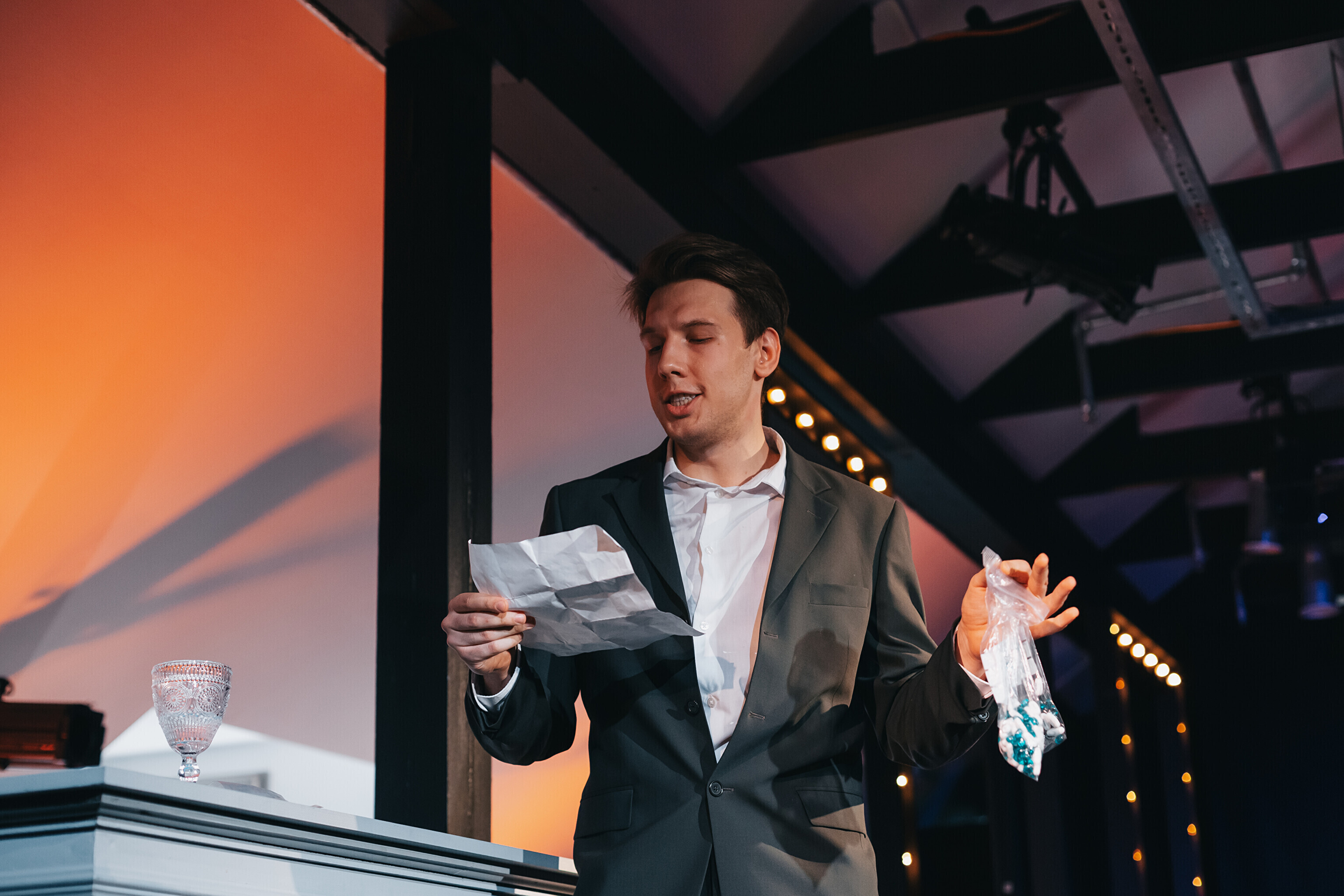 Для торжественного открытия коллектив театра подготовил капустник в формате театрального бара. В рамках юмористического представления актеры исполняли короткие номера, в процессе создавая различные коктейли. Каждый из коктейлей зрители могли приобрести в формате аукциона. Действие капустника шло на русском и эстонском языках, также исполнялись песни на английском и финском языках. После перформативной части зрители и участники коллектива смогли пообщаться в неформальной обстановке под музыкальный сет от Алексея Семенихина aka DJ Bandit.