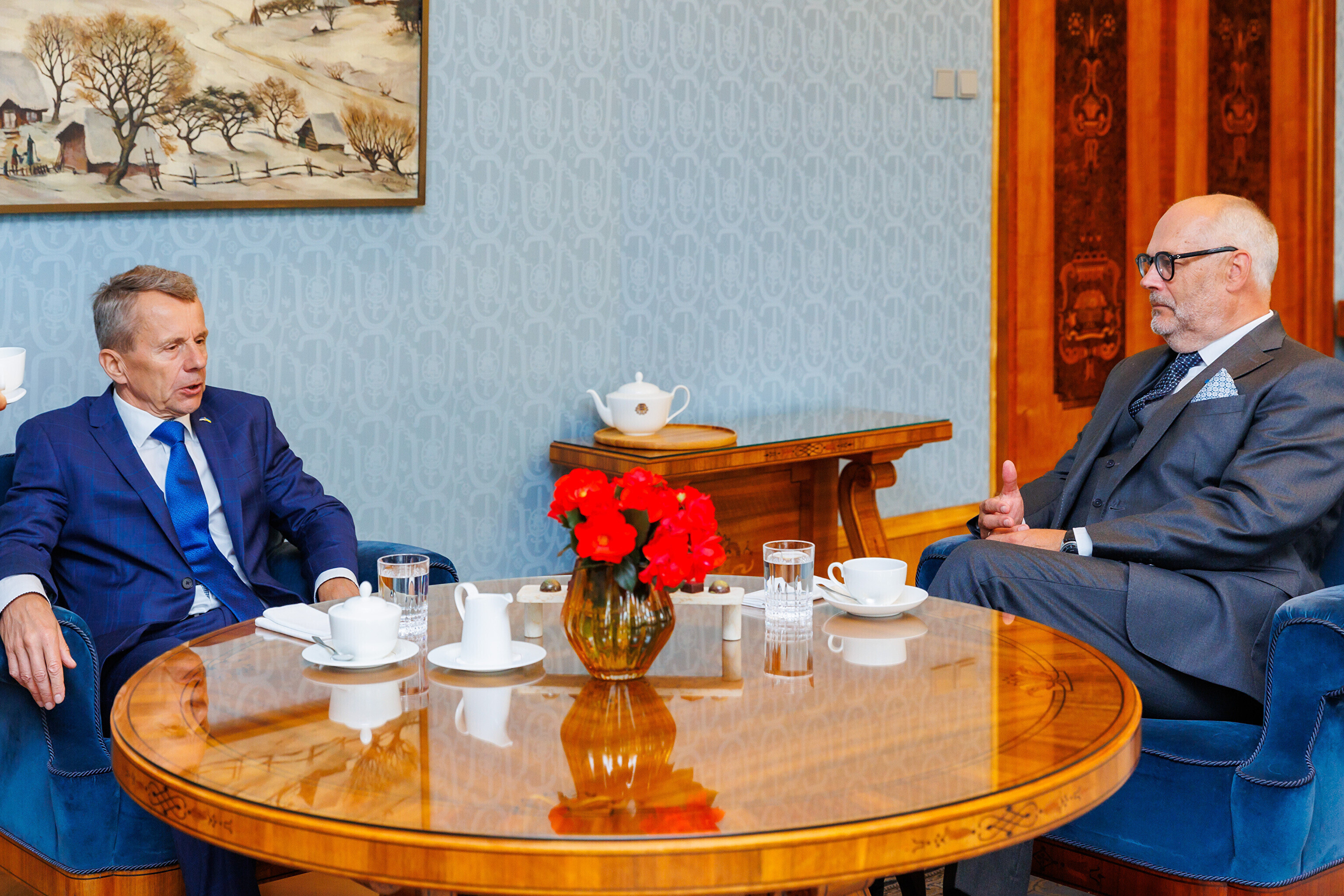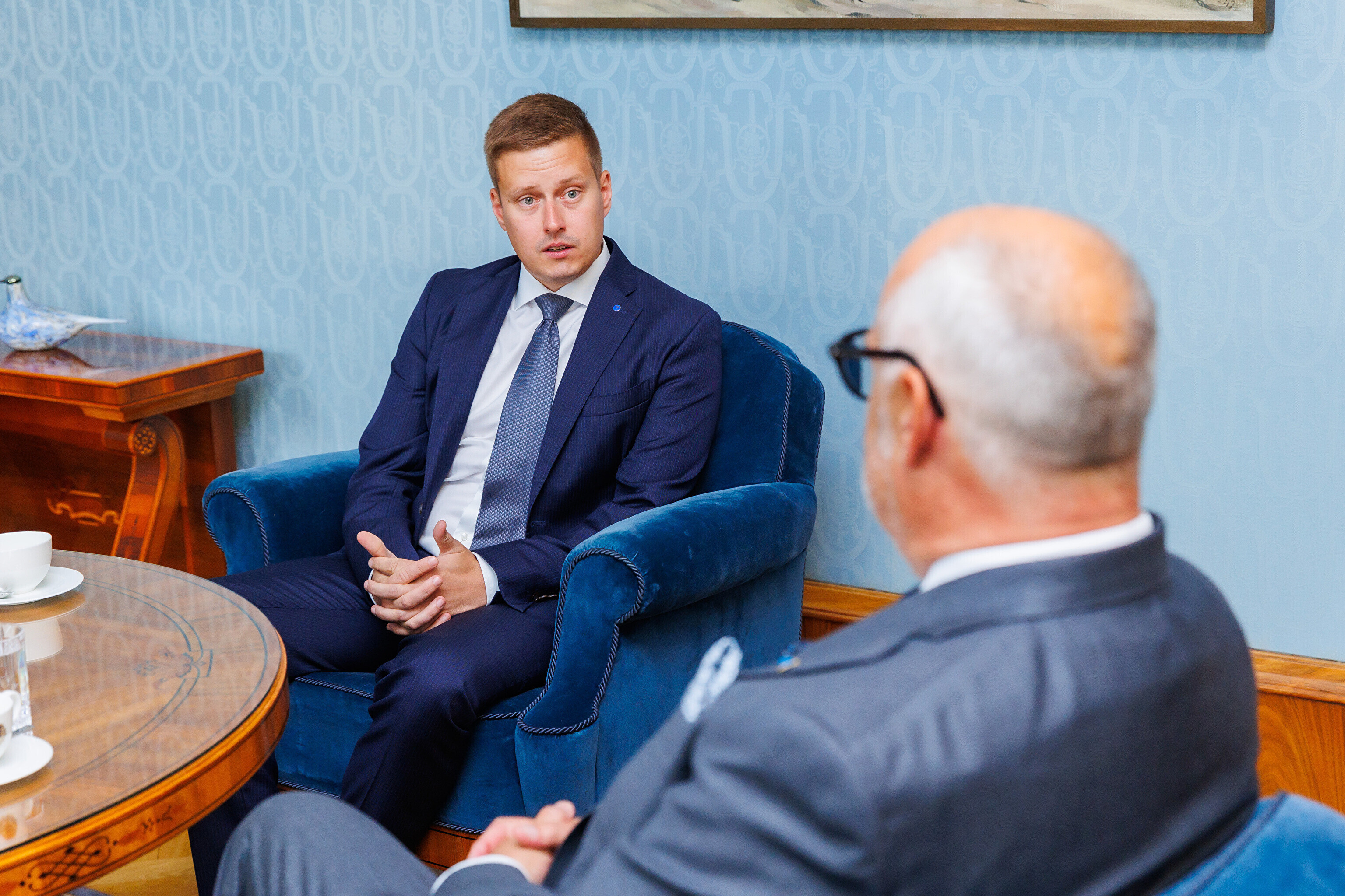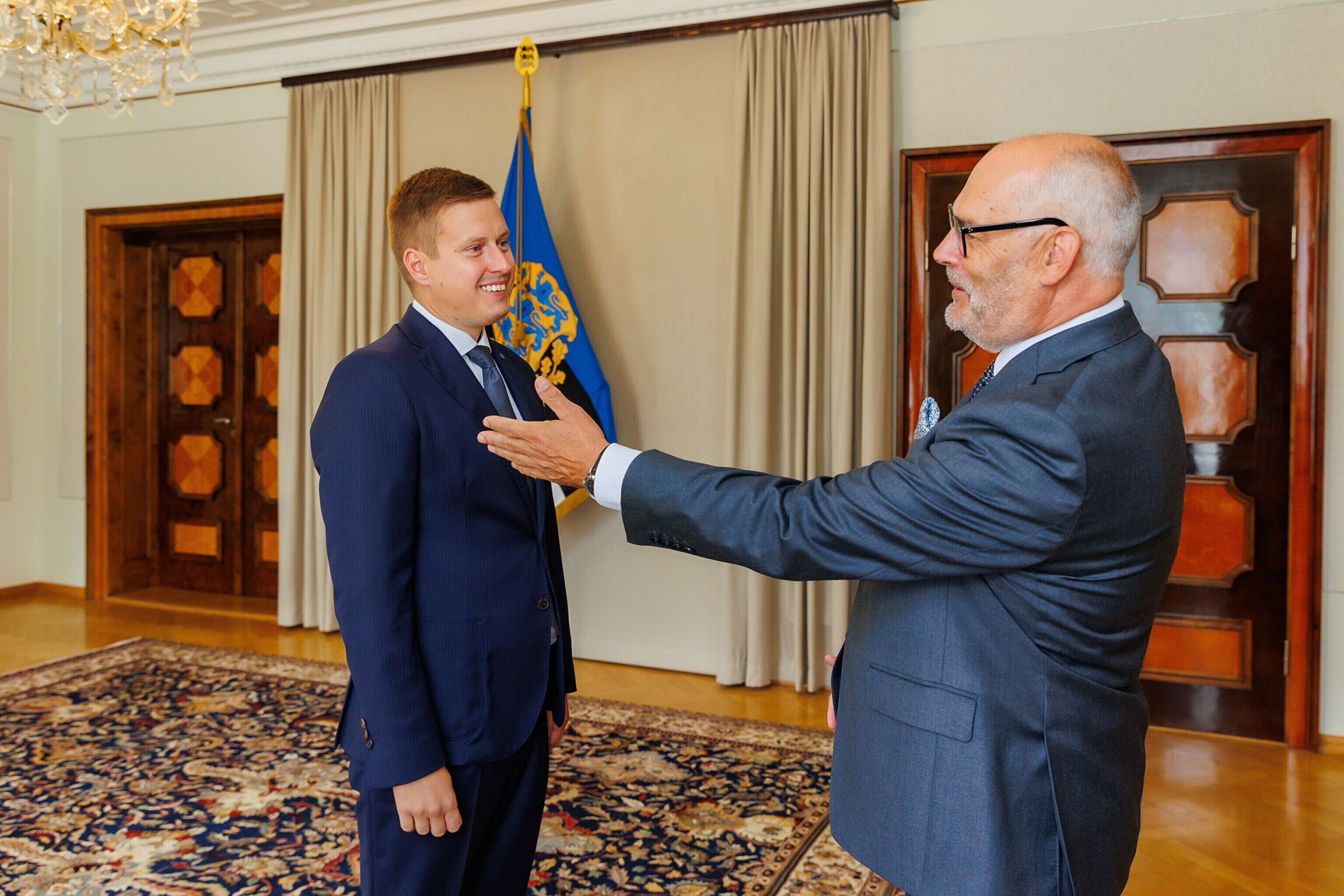 На встречу к президенту пришли кандидат на пост министра финансов Юрген Лиги, кандидат на пост министра климата Йоко Алендер, кандидат на пост министра инфраструктуры Владимир Свет, кандидат на пост министра экономики и промышленности Эркки Келдо и кандидат на пост министра юстиции и цифровых технологий Лийза Пакоста.
