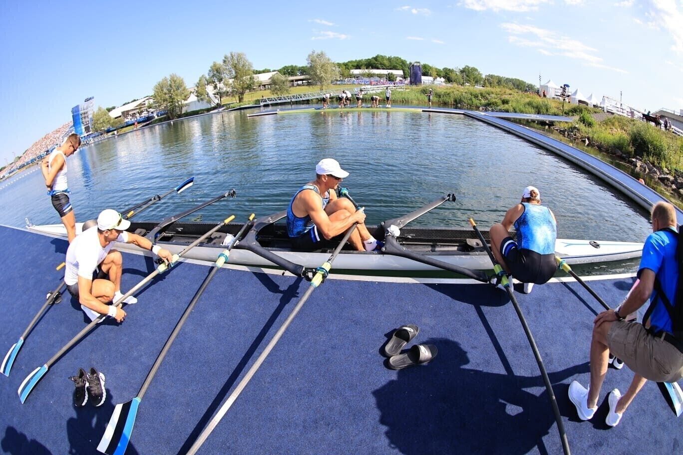 Почти всю дистанцию эстонская команда была на последнем месте, но на финише сумела обойти румынских гребцов и стала четвертой (5.55,74).
