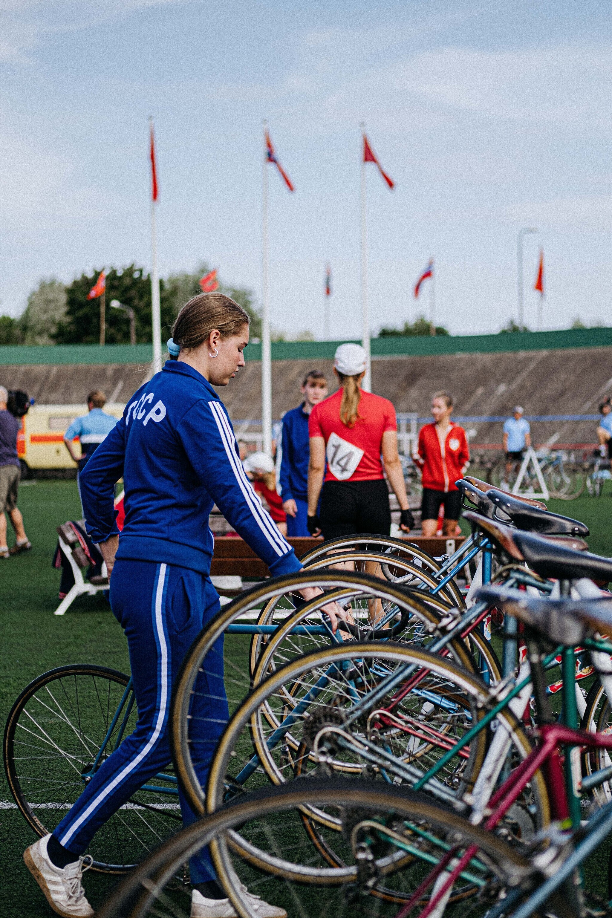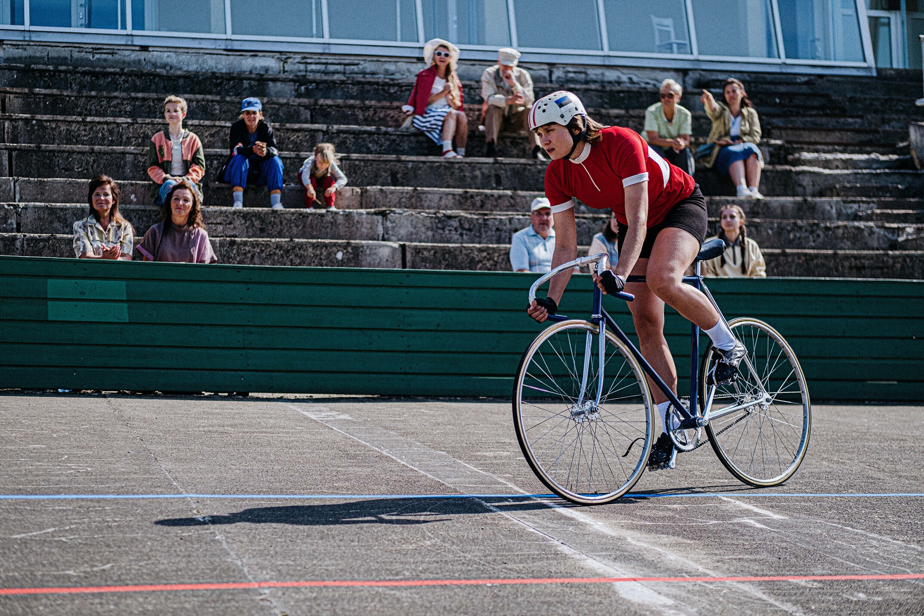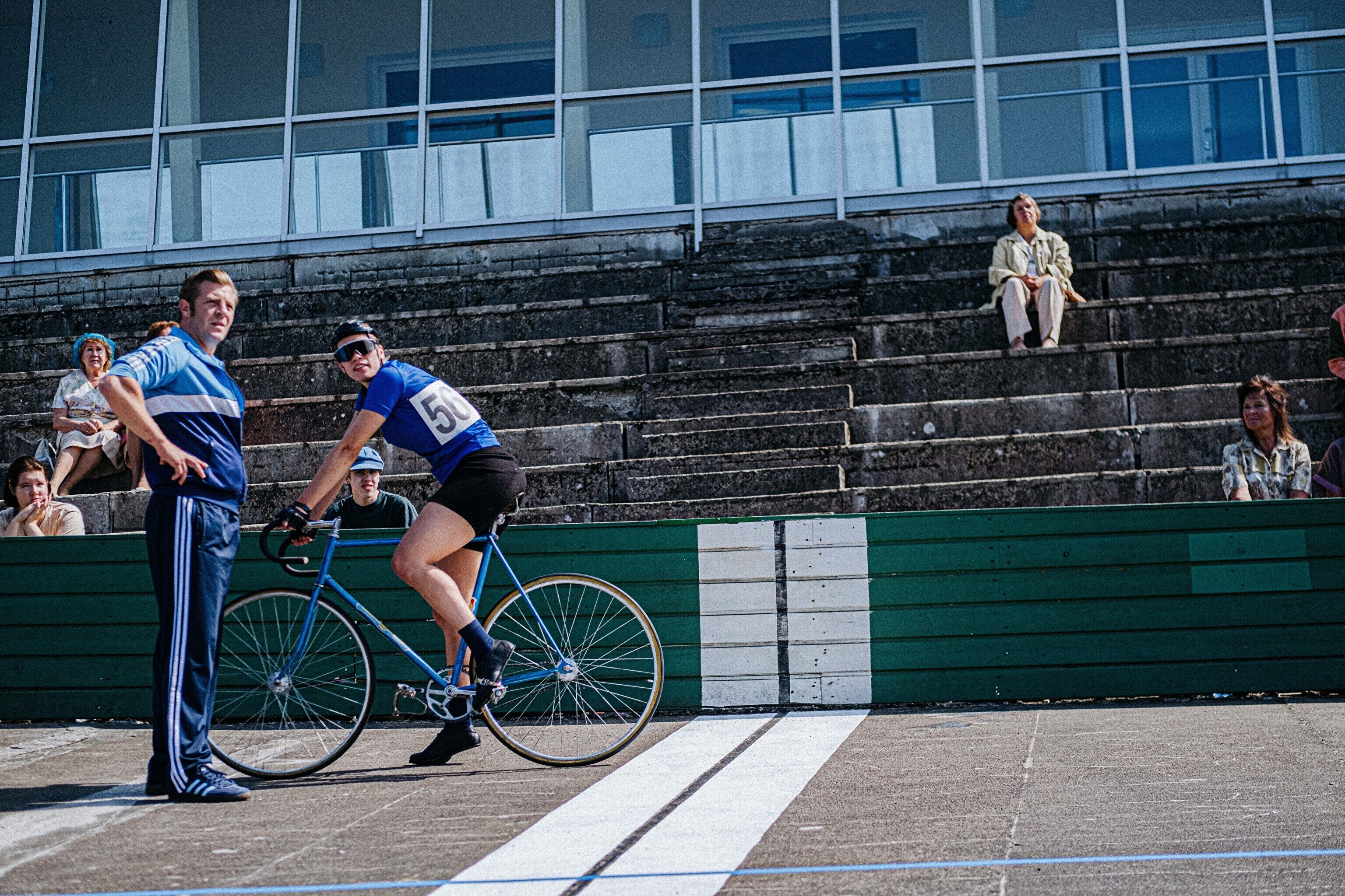 На съемочной площадке сейчас много ретровелосипедов, актеры одеты в старые спортивные костюмы, а над велотреком реют красные флаги. В такой ностальгической обстановке снимают, как Эрика Салумяэ вела борьбу со своей главной конкуренткой – Галиной Енюхиной.