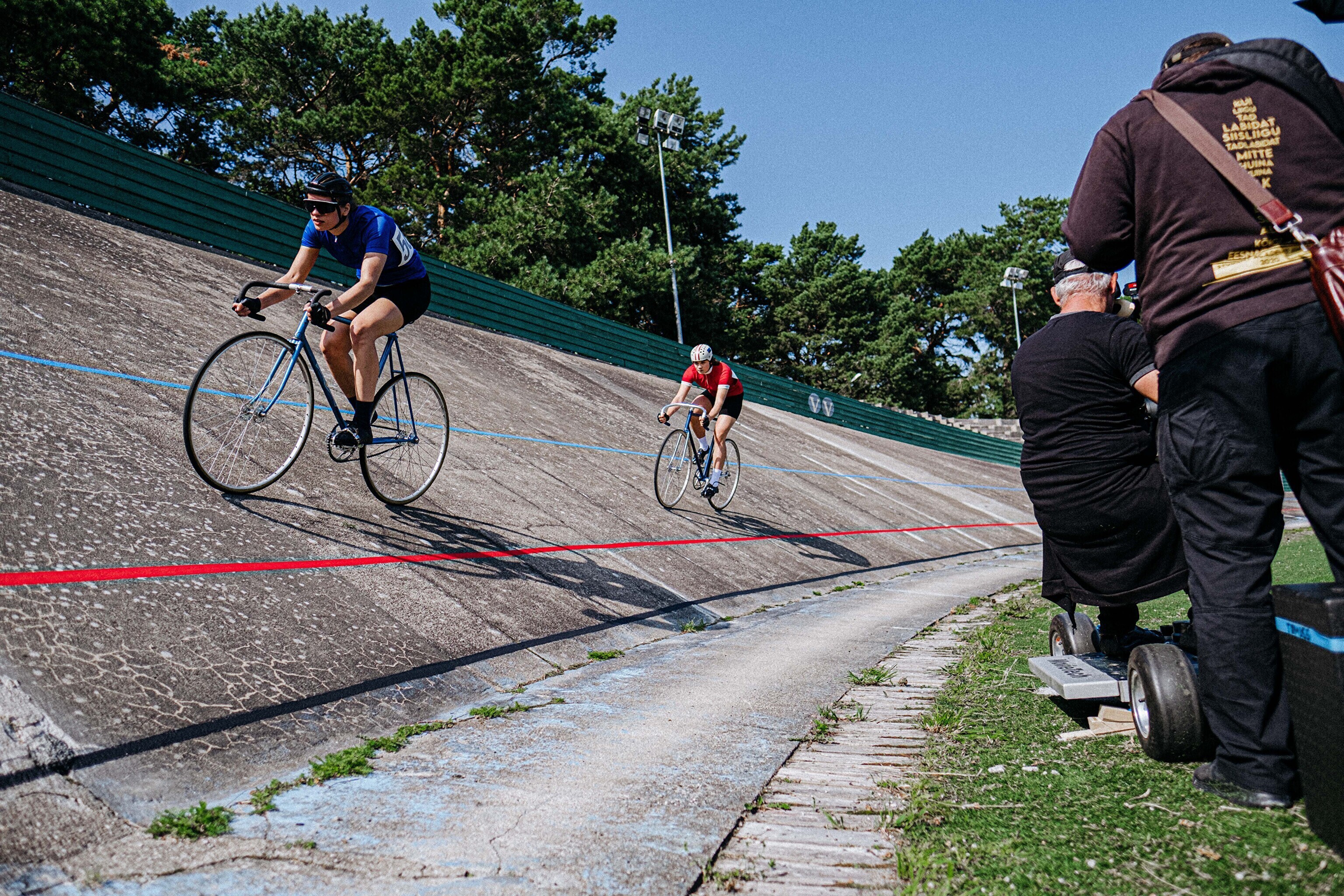 Все гонки приходится снимать несколько раз: сначала с актерами, а затем с дублерами, чтобы с каждого заезда получить несколько ракурсов. Двойником Юризе является Лийзи Аламаа (она довольно долгое время работала редактором спортивных новостей на портале ERR Sport – ред.), которая в своей спортивной карьере соревновалась как на велотреке, так и участвовала в профессиональных шоссейных гонках.
