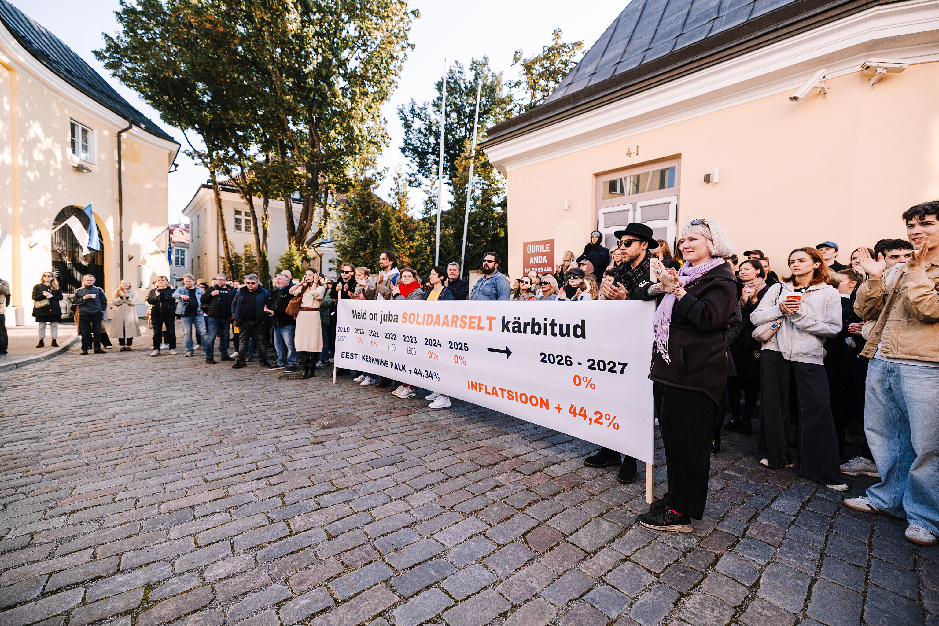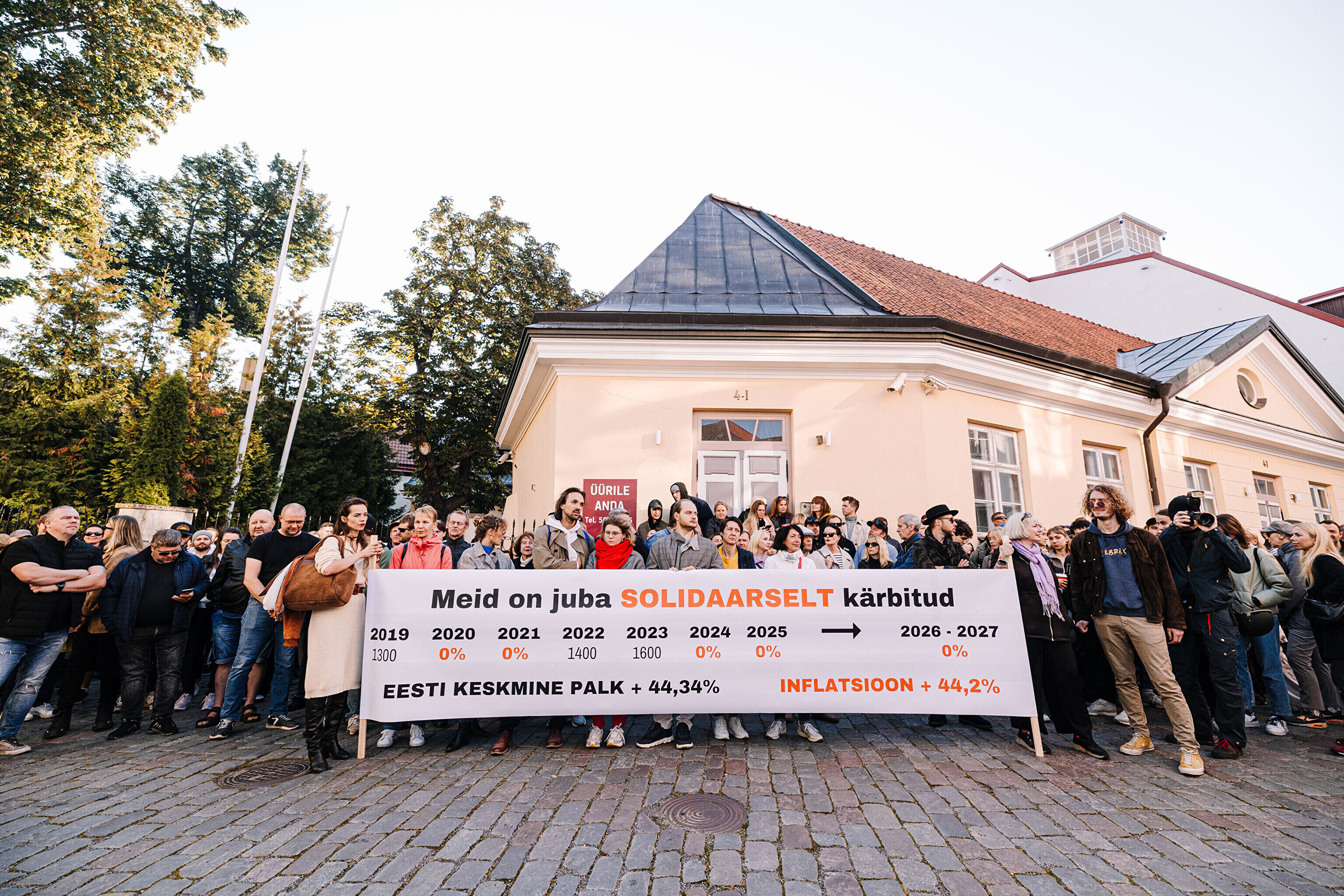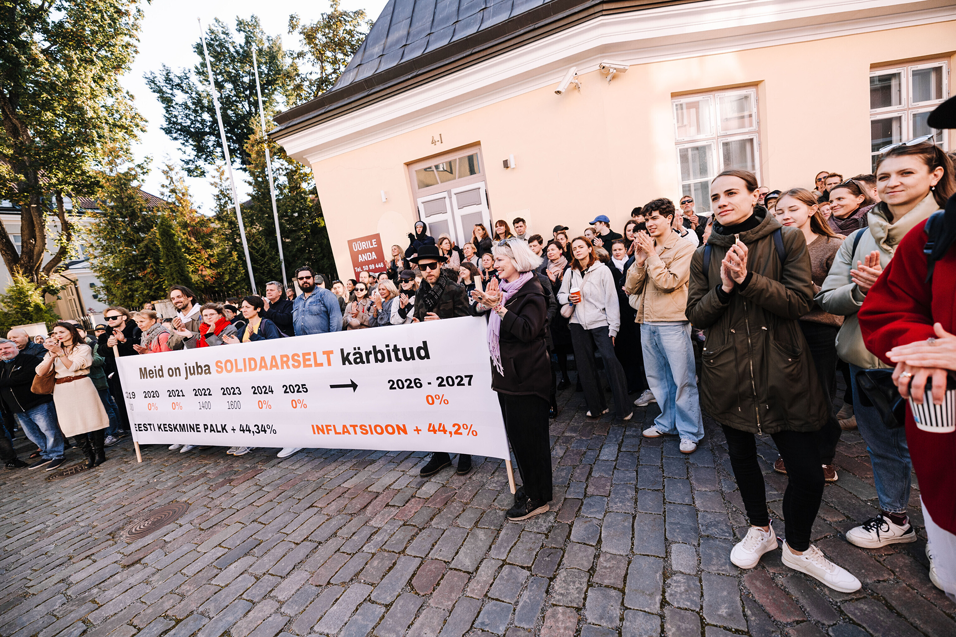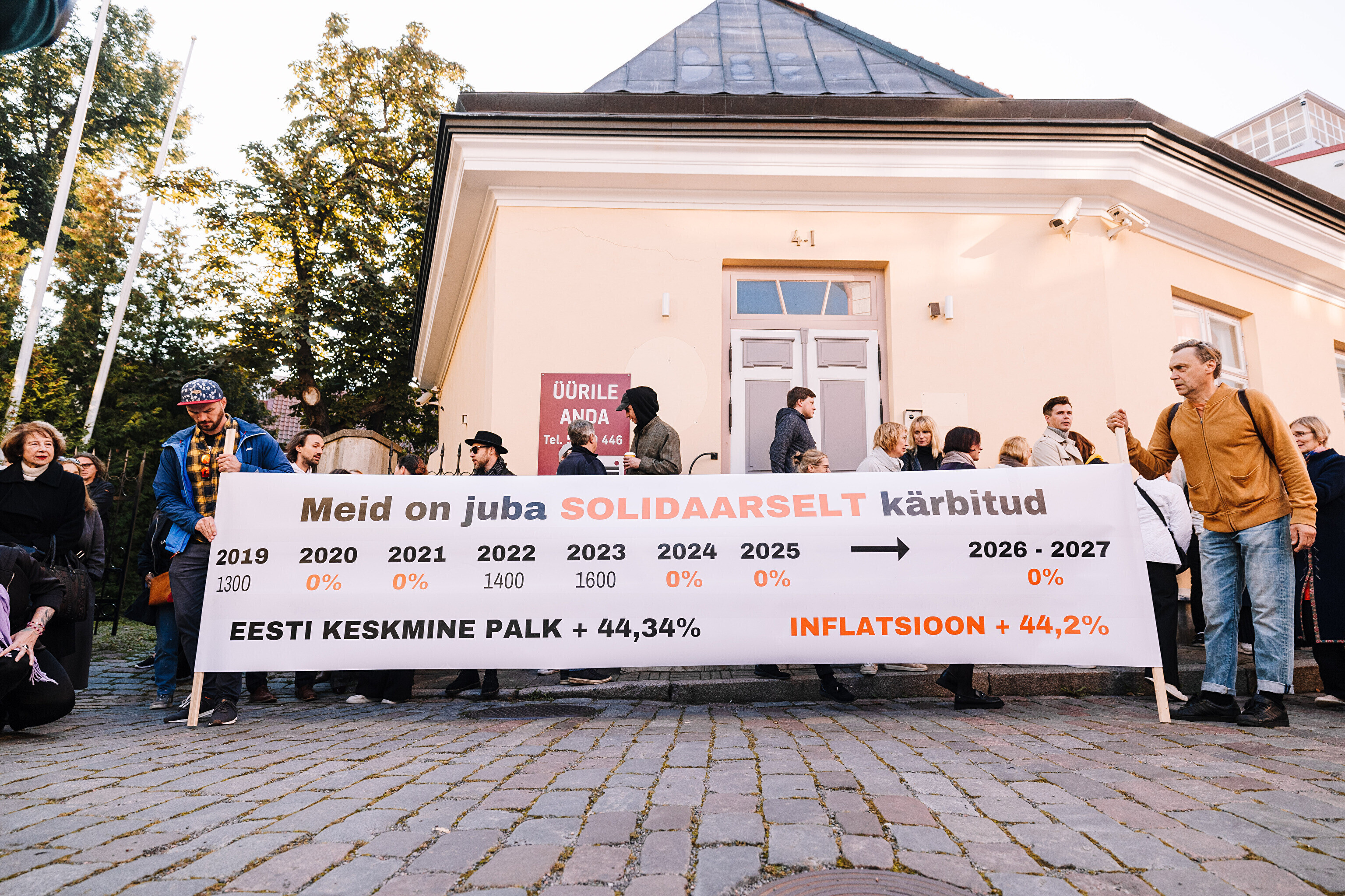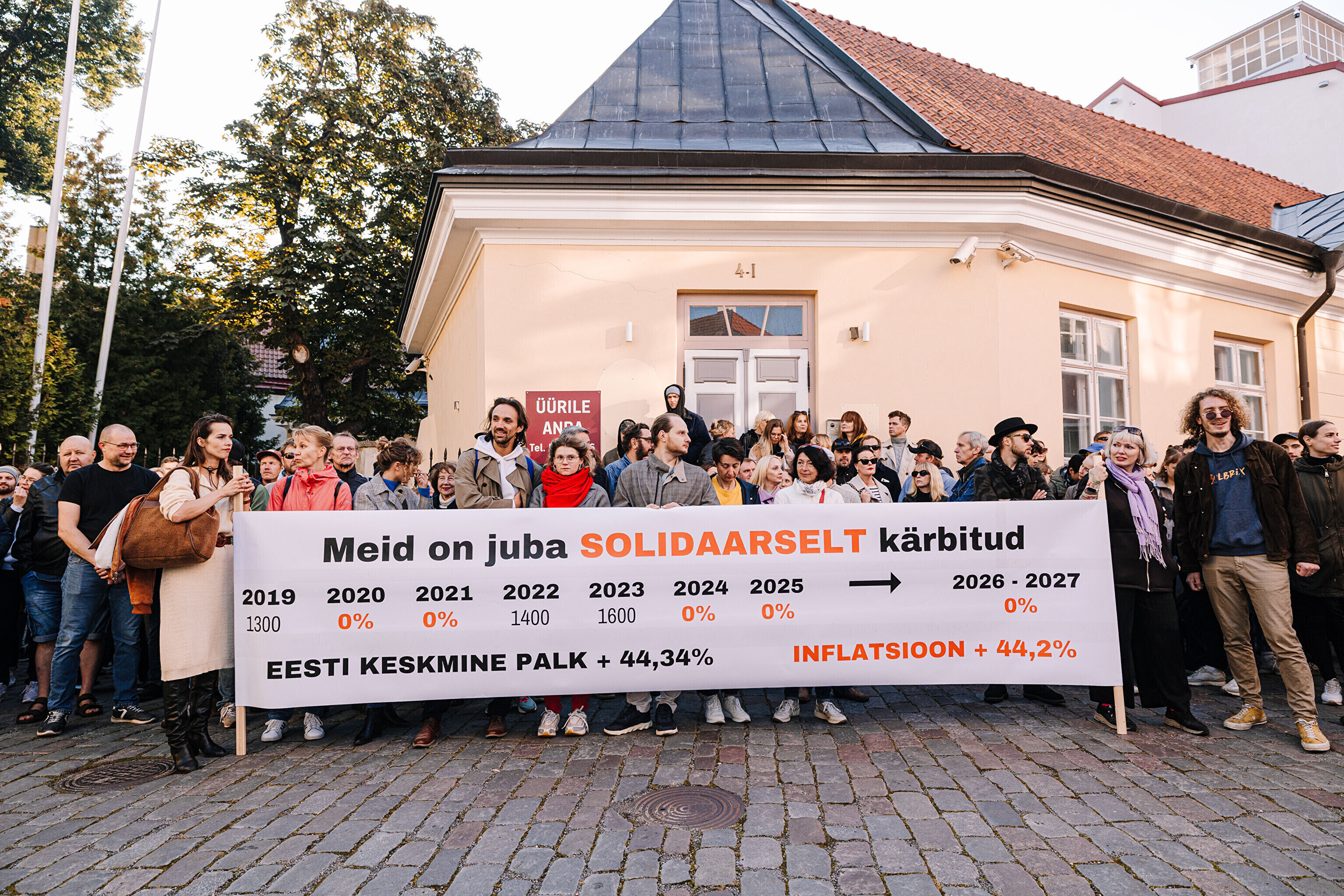 "Средняя зарплата также выросла на 44%, а минимальная зарплата работников культуры за последние два месяца выросла только на 35%. Разрыв между минимальной зарплатой работников культуры и средней зарплатой по стране стал довольно значительным. Очевидно, это показывает, что сфера культуры словно не является частью нашего общества. Поэтому мы протестуем против сокращений в нашей области, которые должны составить примерно 10%. И как сказала министр культуры, вероятно, зарплаты будут заморожены до 2028 года. Мы считаем это несправедливым, потому что отсутствует солидарность – сокращения происходят наравне с другими секторами, даже если зарплаты в культуре не повышались. Мы считаем, что уже получили свои сокращения", – заявил Раудсеп.