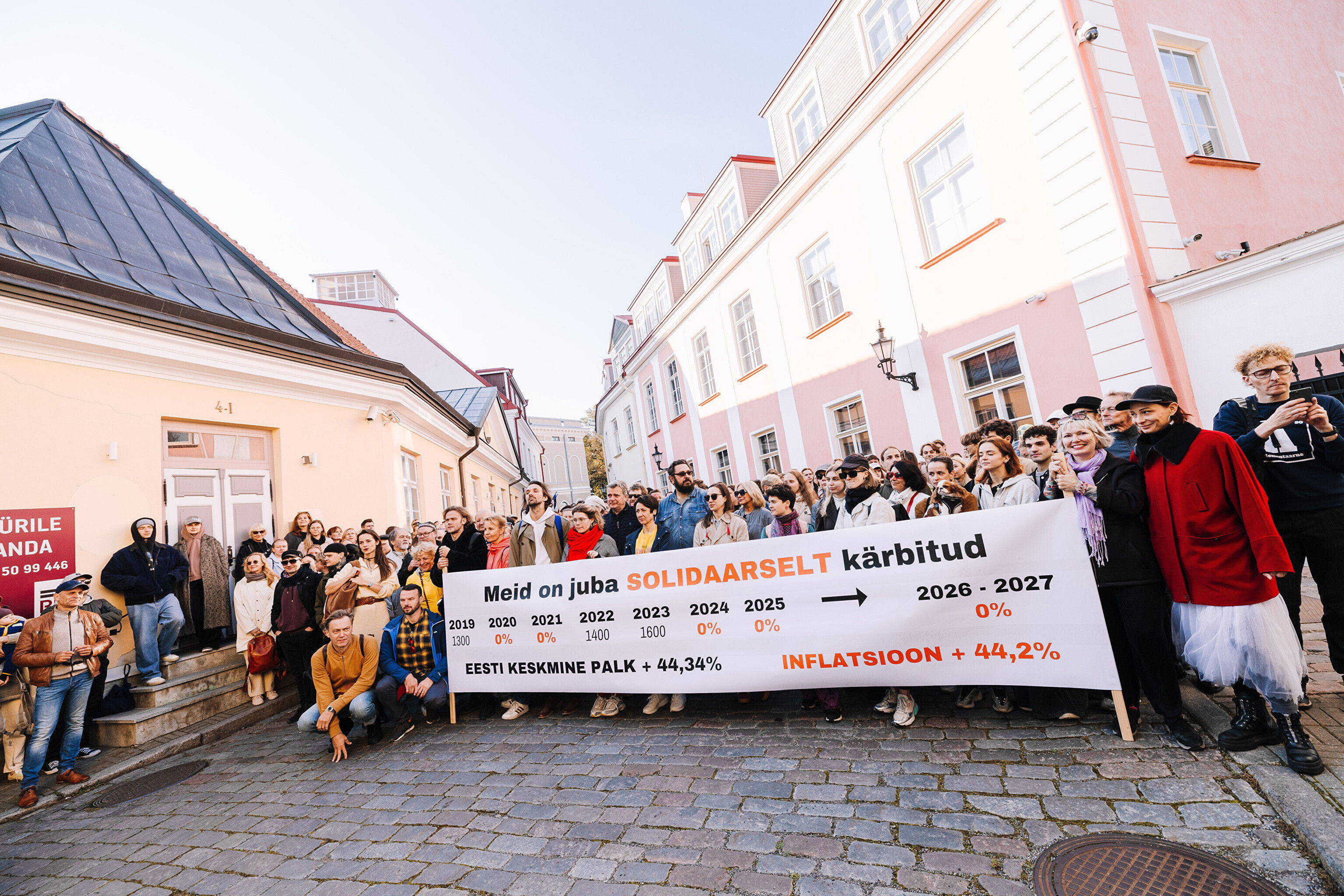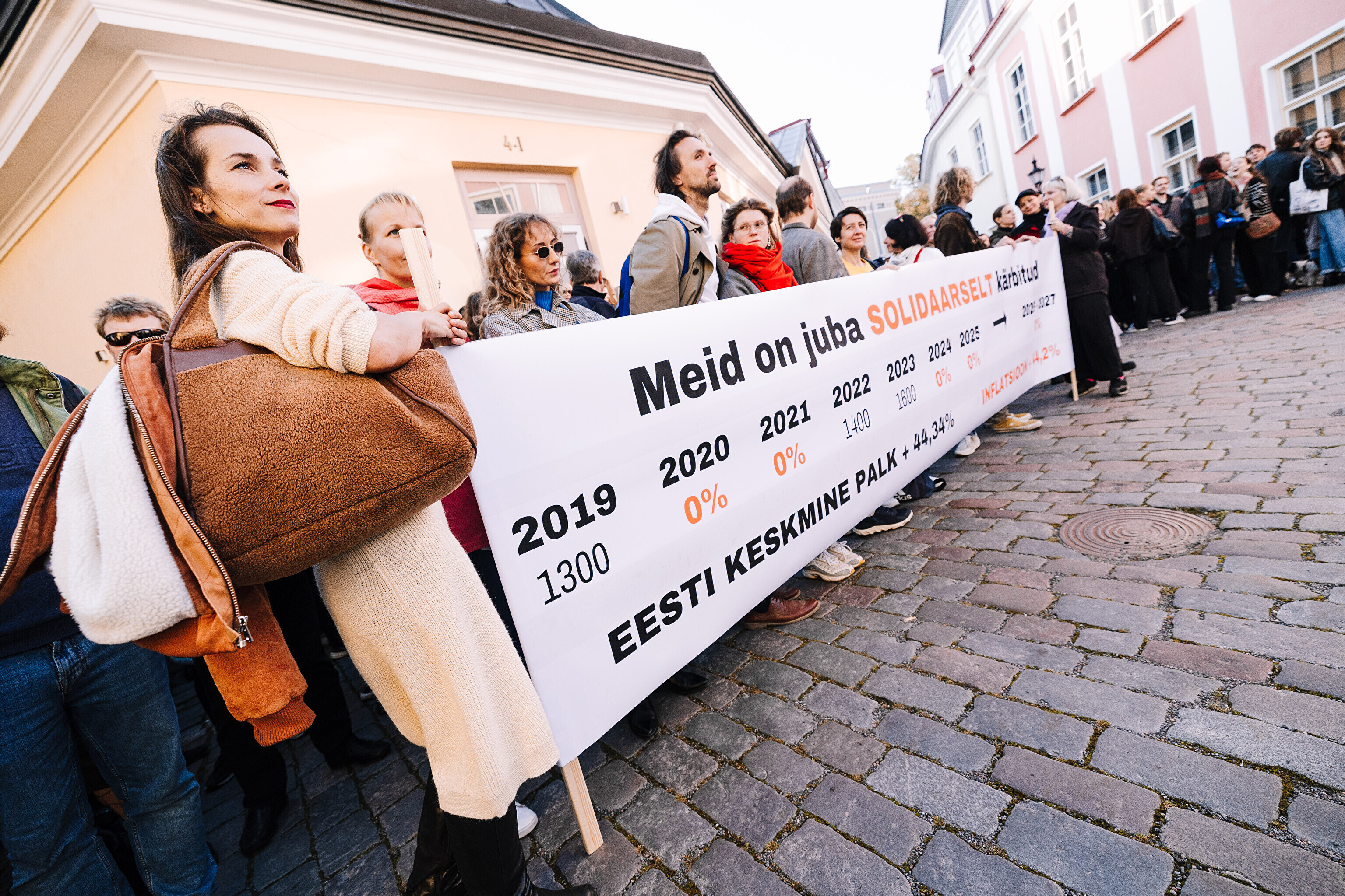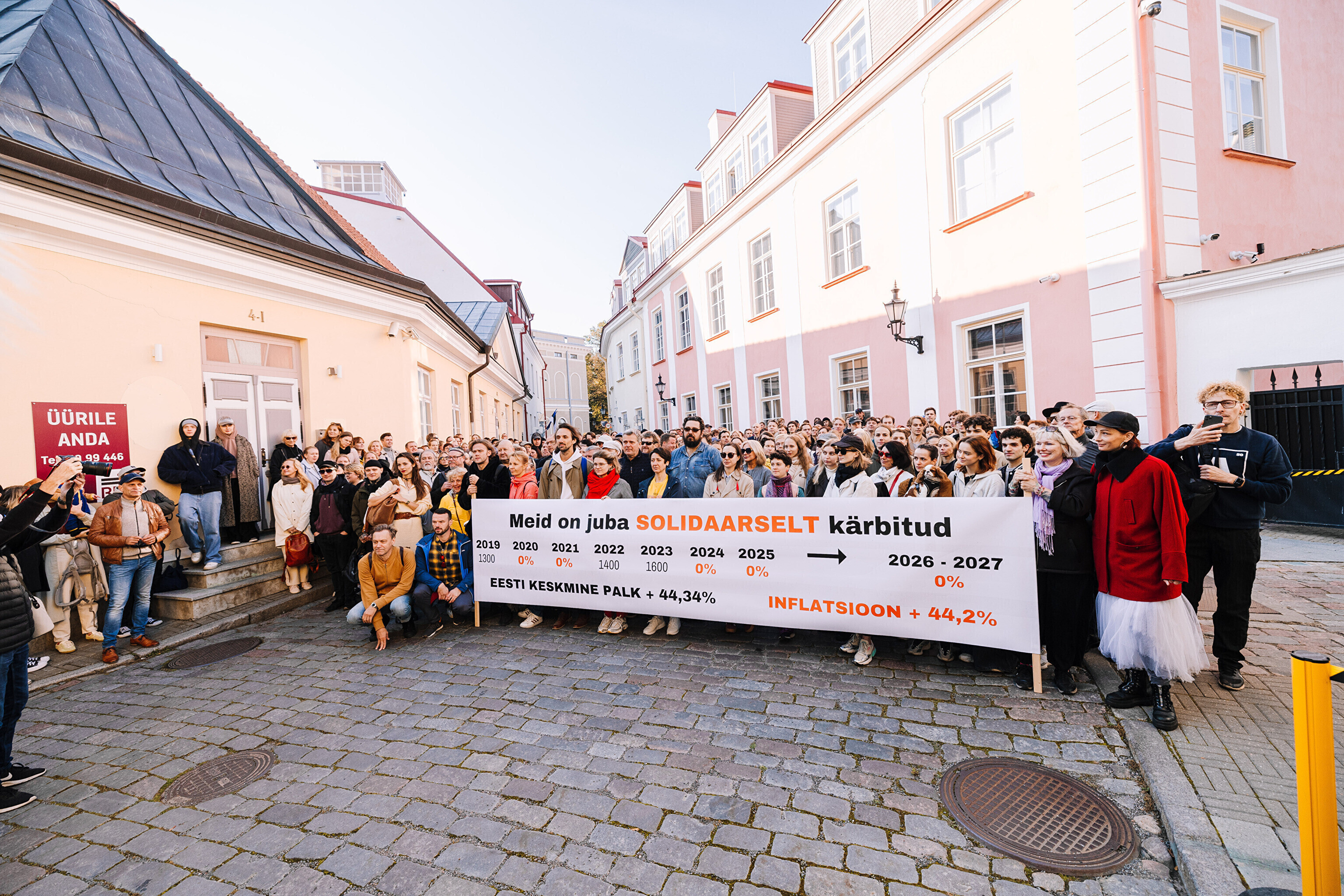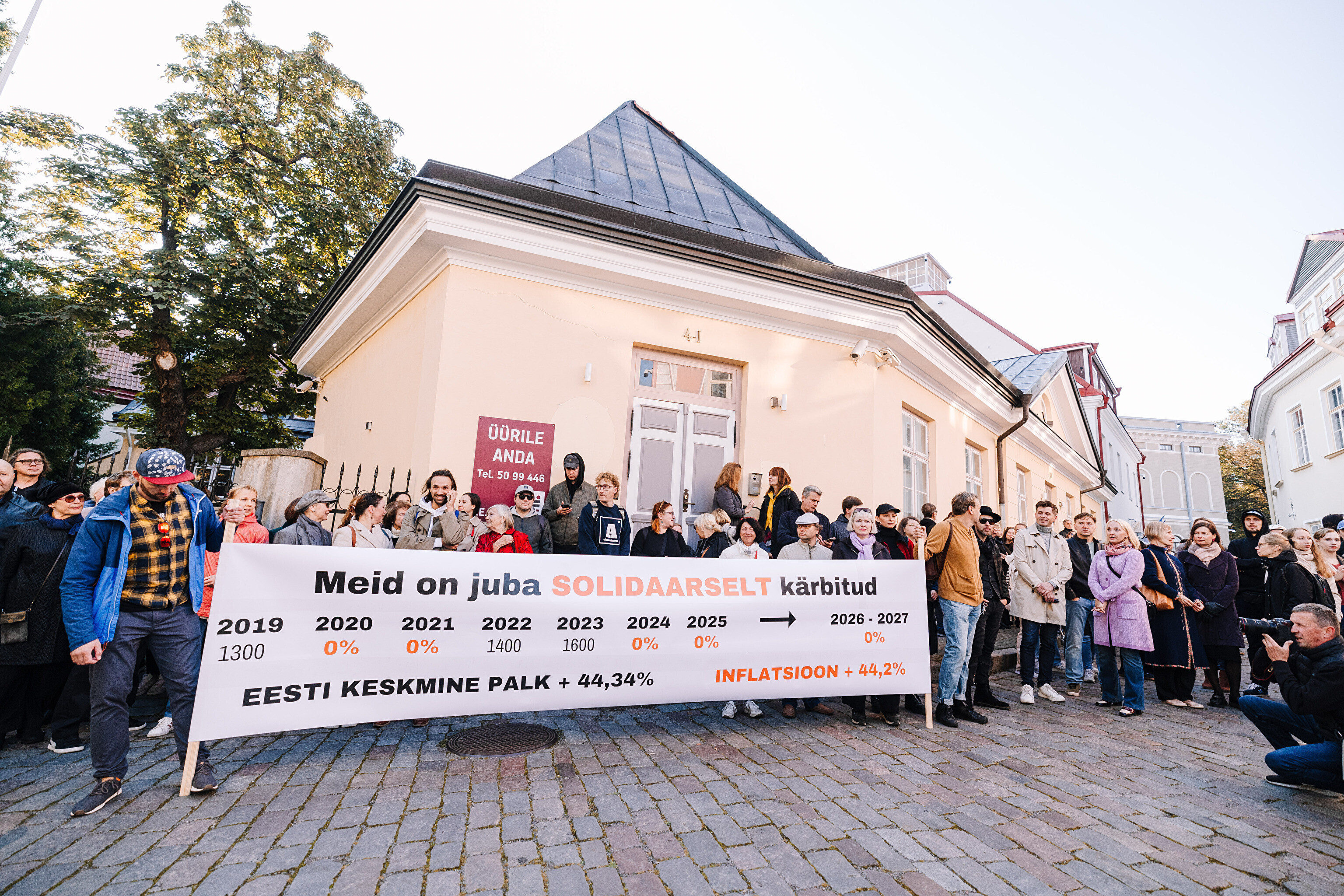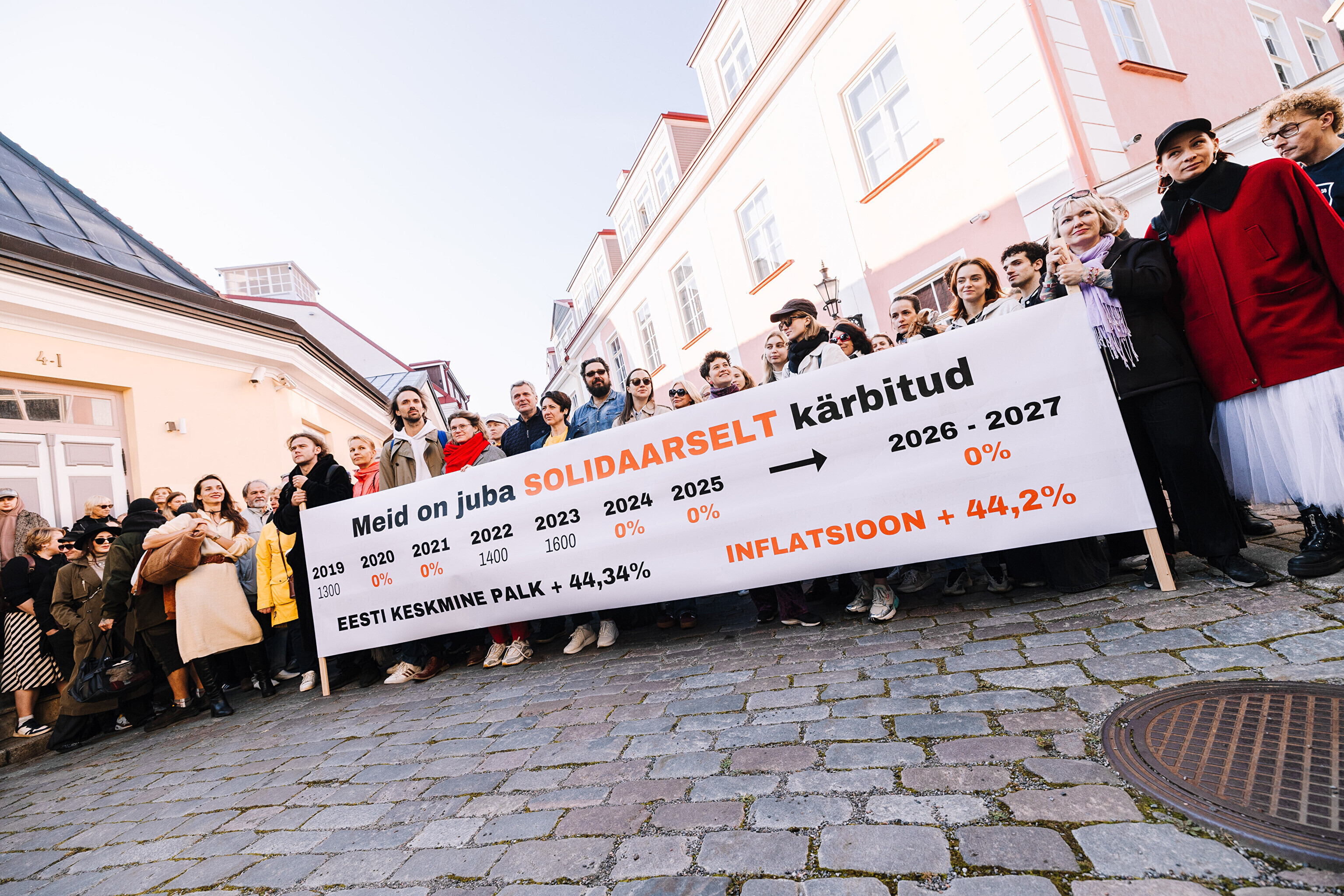 "Средняя зарплата также выросла на 44%, а минимальная зарплата работников культуры за последние два месяца выросла только на 35%. Разрыв между минимальной зарплатой работников культуры и средней зарплатой по стране стал довольно значительным. Очевидно, это показывает, что сфера культуры словно не является частью нашего общества. Поэтому мы протестуем против сокращений в нашей области, которые должны составить примерно 10%. И как сказала министр культуры, вероятно, зарплаты будут заморожены до 2028 года. Мы считаем это несправедливым, потому что отсутствует солидарность – сокращения происходят наравне с другими секторами, даже если зарплаты в культуре не повышались. Мы считаем, что уже получили свои сокращения", – заявил Раудсеп.