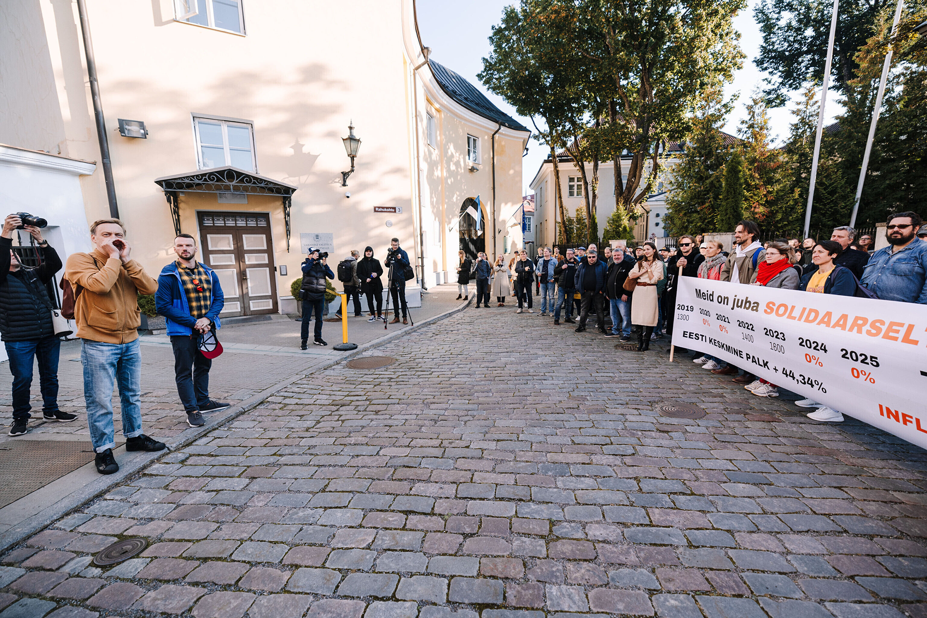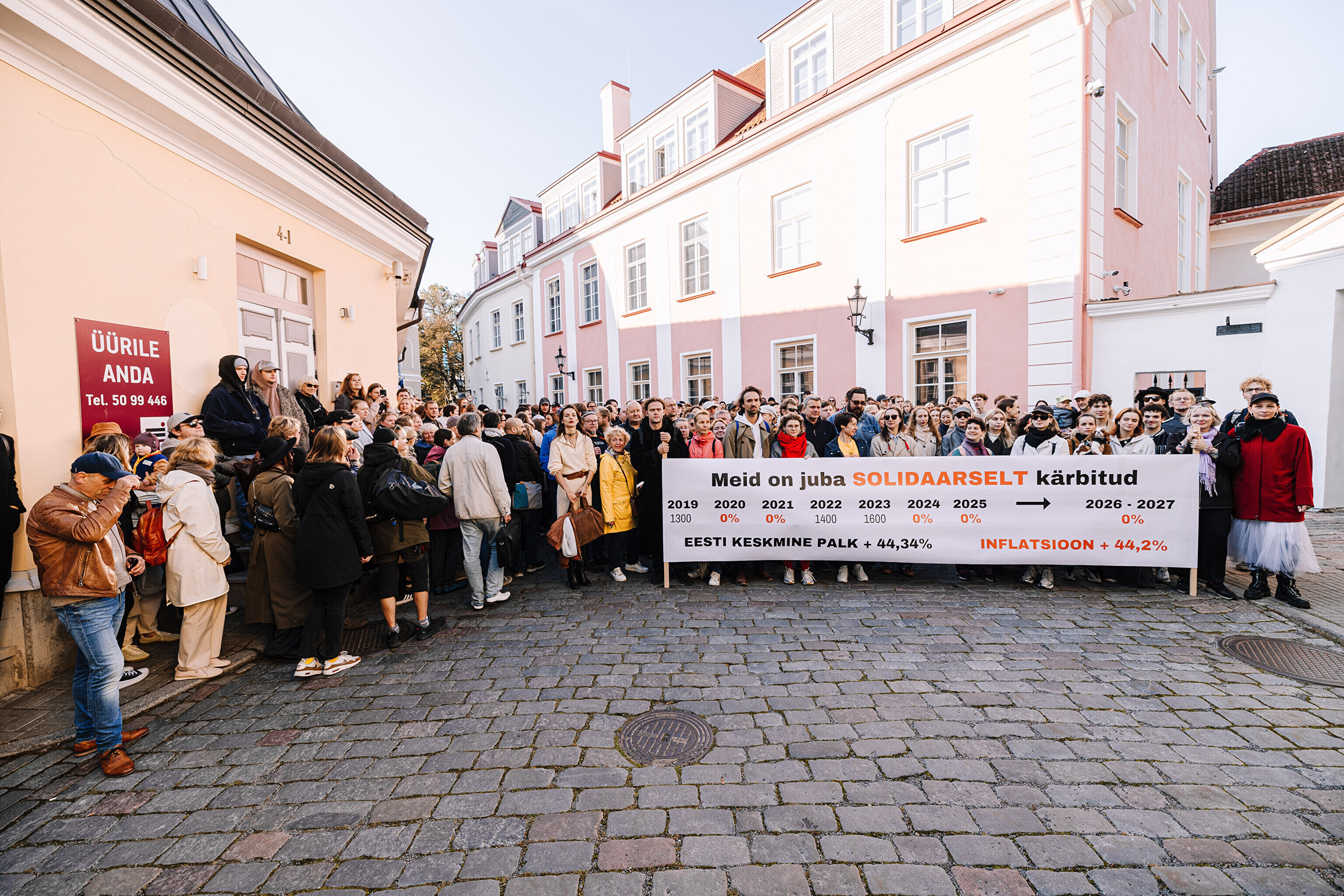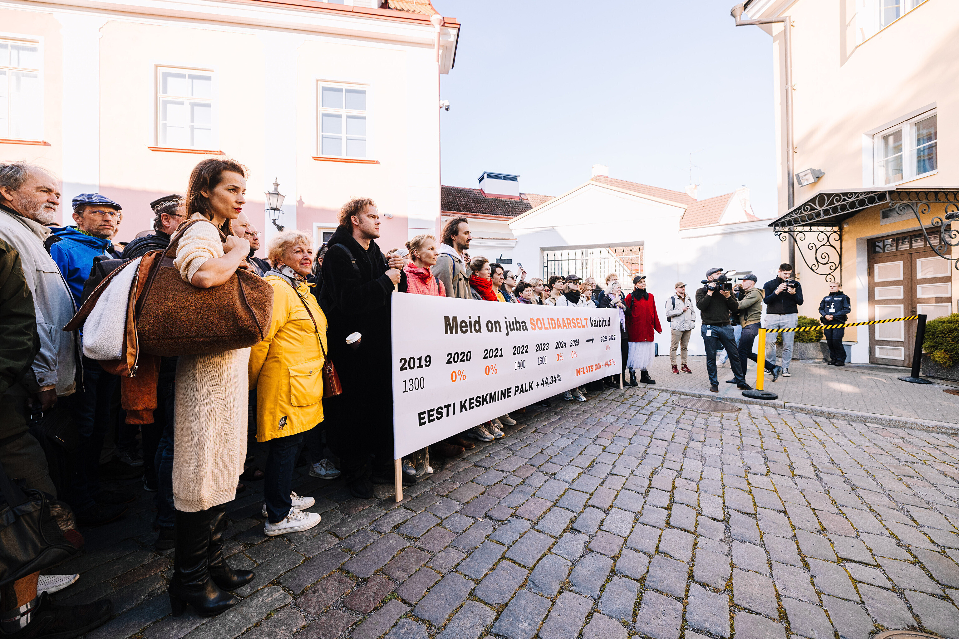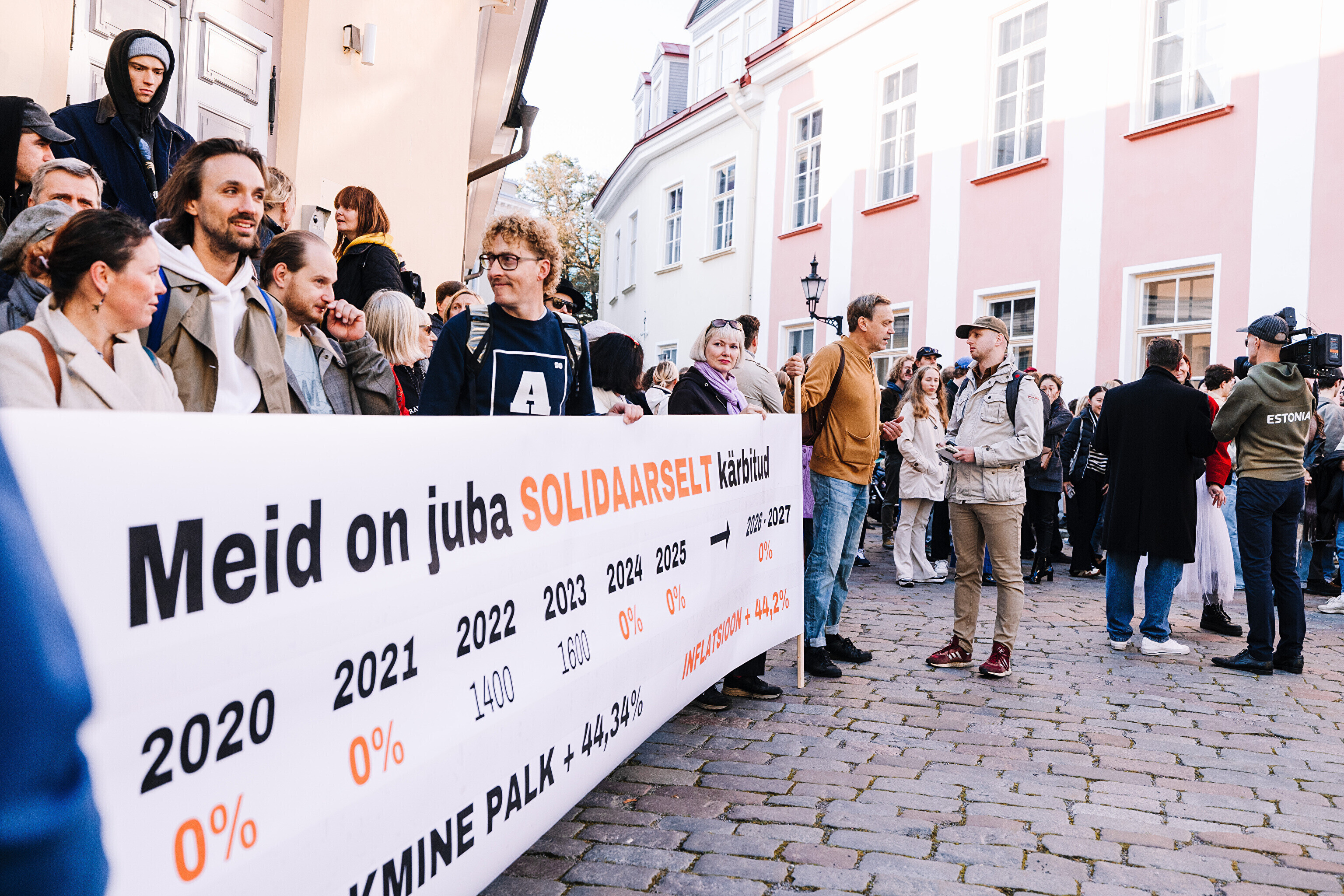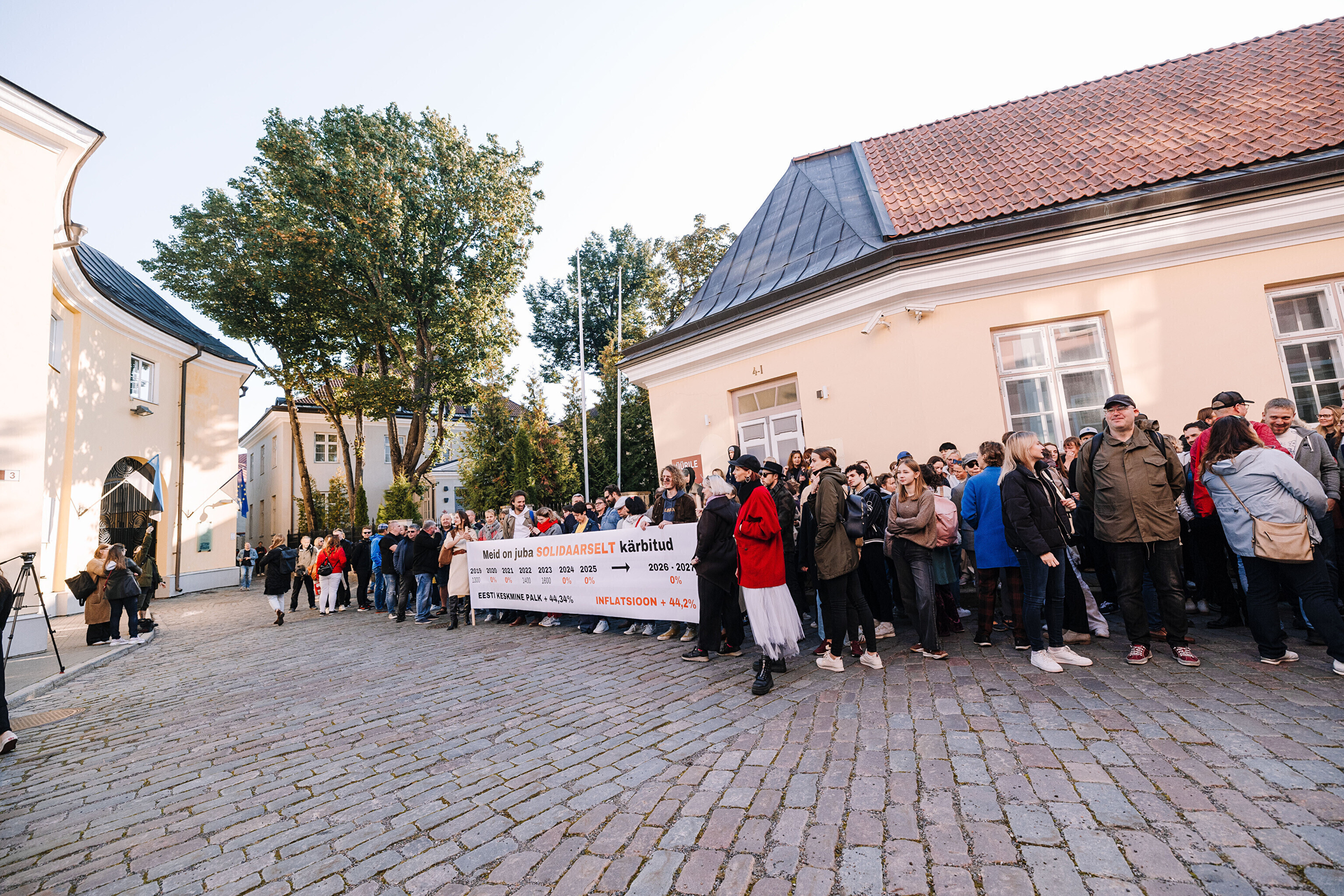 "Средняя зарплата также выросла на 44%, а минимальная зарплата работников культуры за последние два месяца выросла только на 35%. Разрыв между минимальной зарплатой работников культуры и средней зарплатой по стране стал довольно значительным. Очевидно, это показывает, что сфера культуры словно не является частью нашего общества. Поэтому мы протестуем против сокращений в нашей области, которые должны составить примерно 10%. И как сказала министр культуры, вероятно, зарплаты будут заморожены до 2028 года. Мы считаем это несправедливым, потому что отсутствует солидарность – сокращения происходят наравне с другими секторами, даже если зарплаты в культуре не повышались. Мы считаем, что уже получили свои сокращения", – заявил Раудсеп.