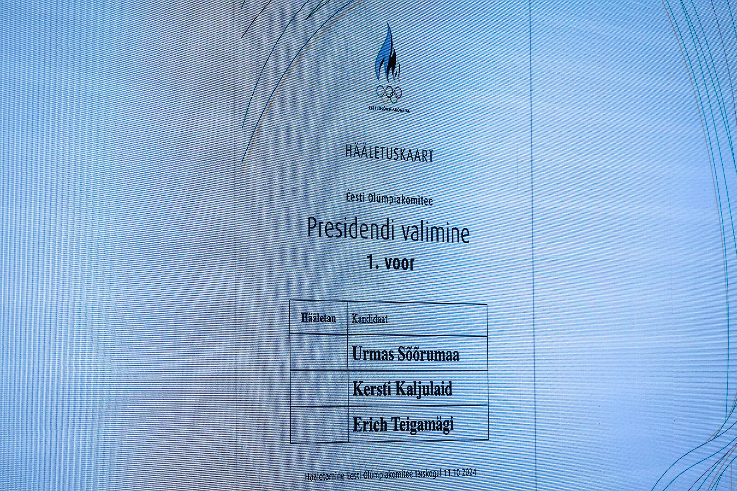 Как писал Rus.ERR, на пост претендовали три кандидата. Шедший на третий срок, с 2016 года занимавший пост главы национального олимпийского комитета Урмас Сыырумаа, экс-президент Эстонии Керсти Кальюлайд и руководитель Союза легкой атлетики страны Эрик Тейгамяги.
