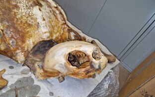 Новейшее приобретение отдела "мокрых" препаратов - верхняя часть панциря кожистой черепахи - той самой, которую недавно нашли на Сааремаа.