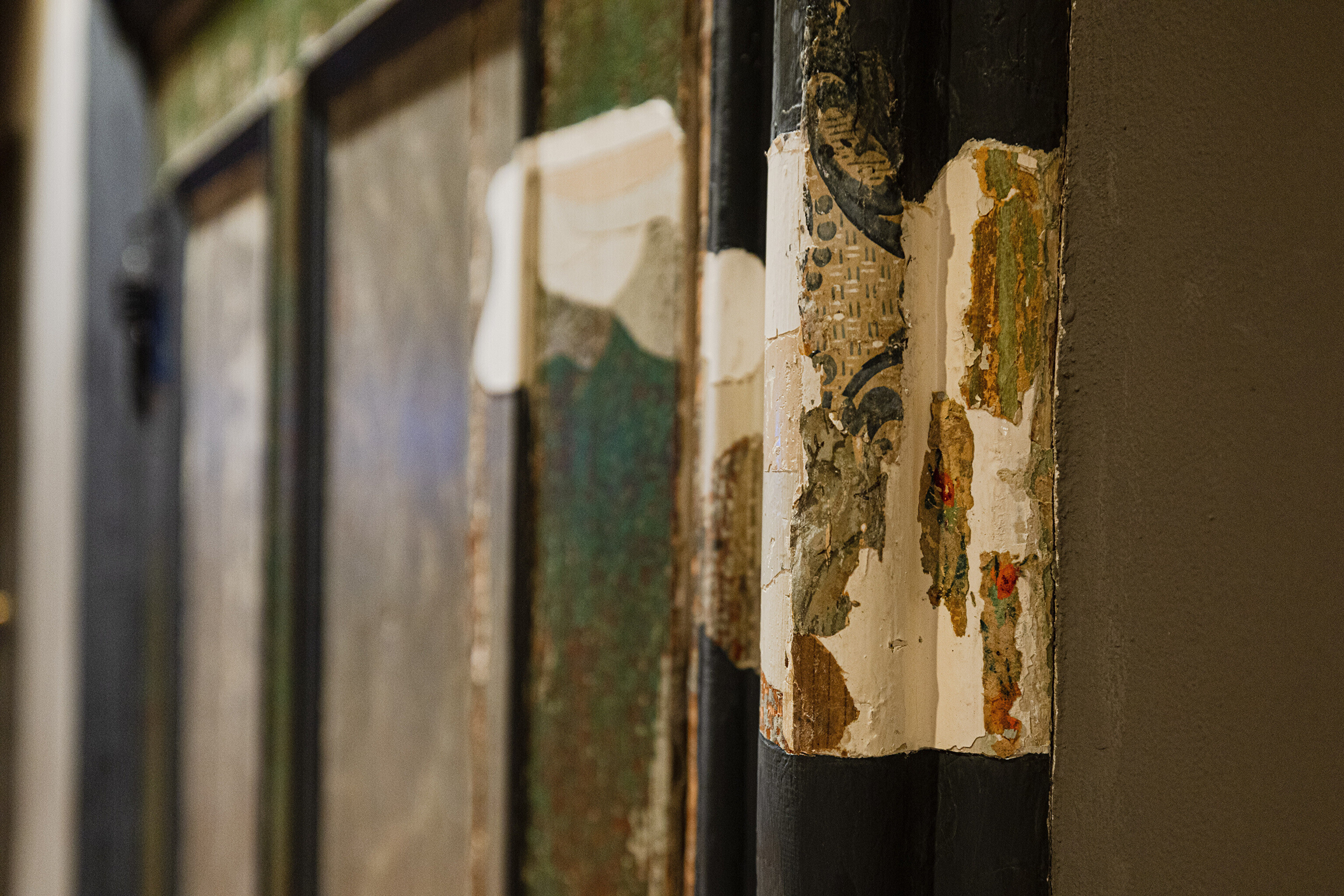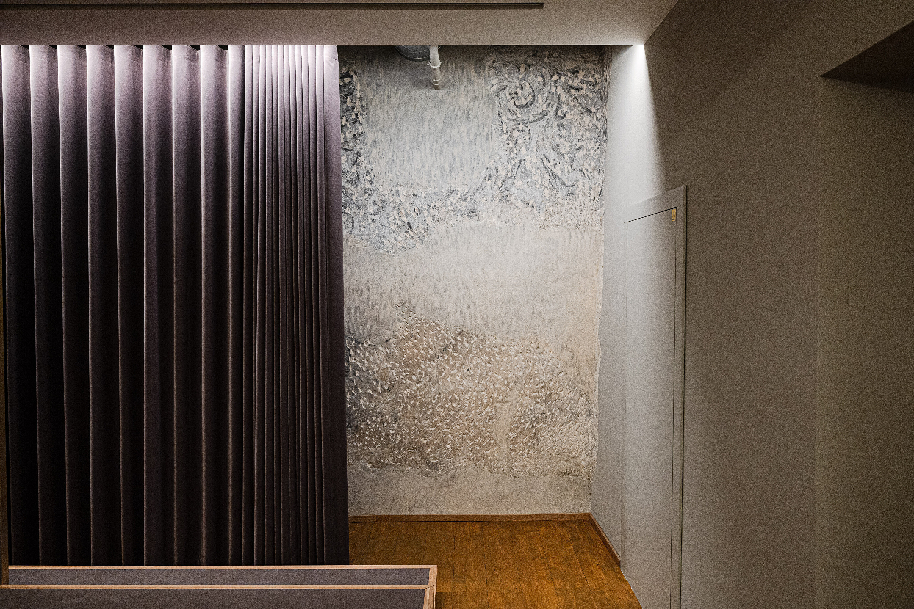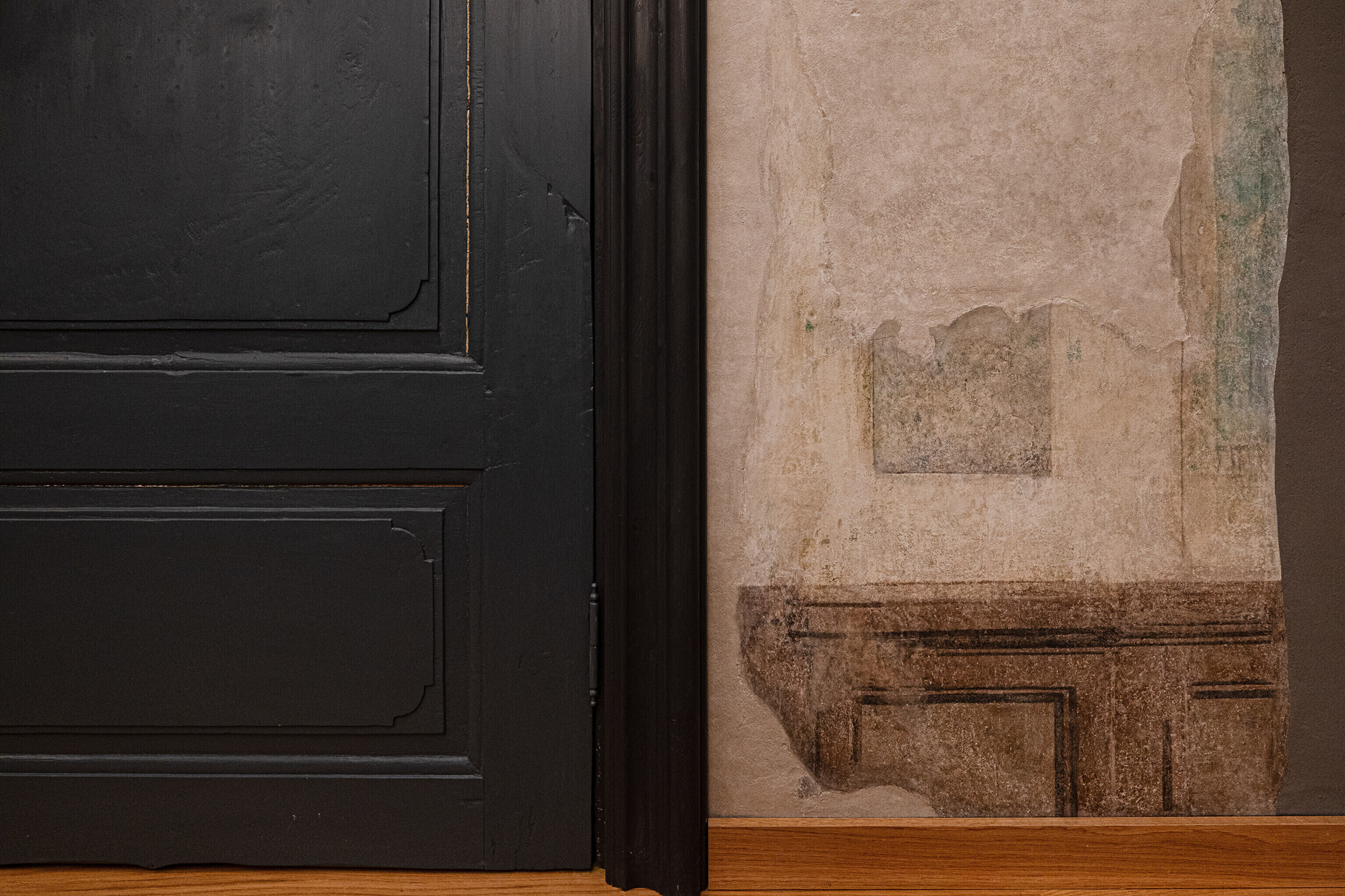 Задняя, более древняя часть комплекса последние сто лет использовалась по большей части для различных хозяйственных нужд и воспринималась как малоценная пристройка. Но самые интересные художественные открытия строителей и реставраторов ожидали как раз в этом здании. Например, здесь сохранились двери и полы периода барокко, точнее говоря, конца 17-го века. Реставраторы извлекли этот пол на свет божий, сняв 4 слоя полов более позднего времени.