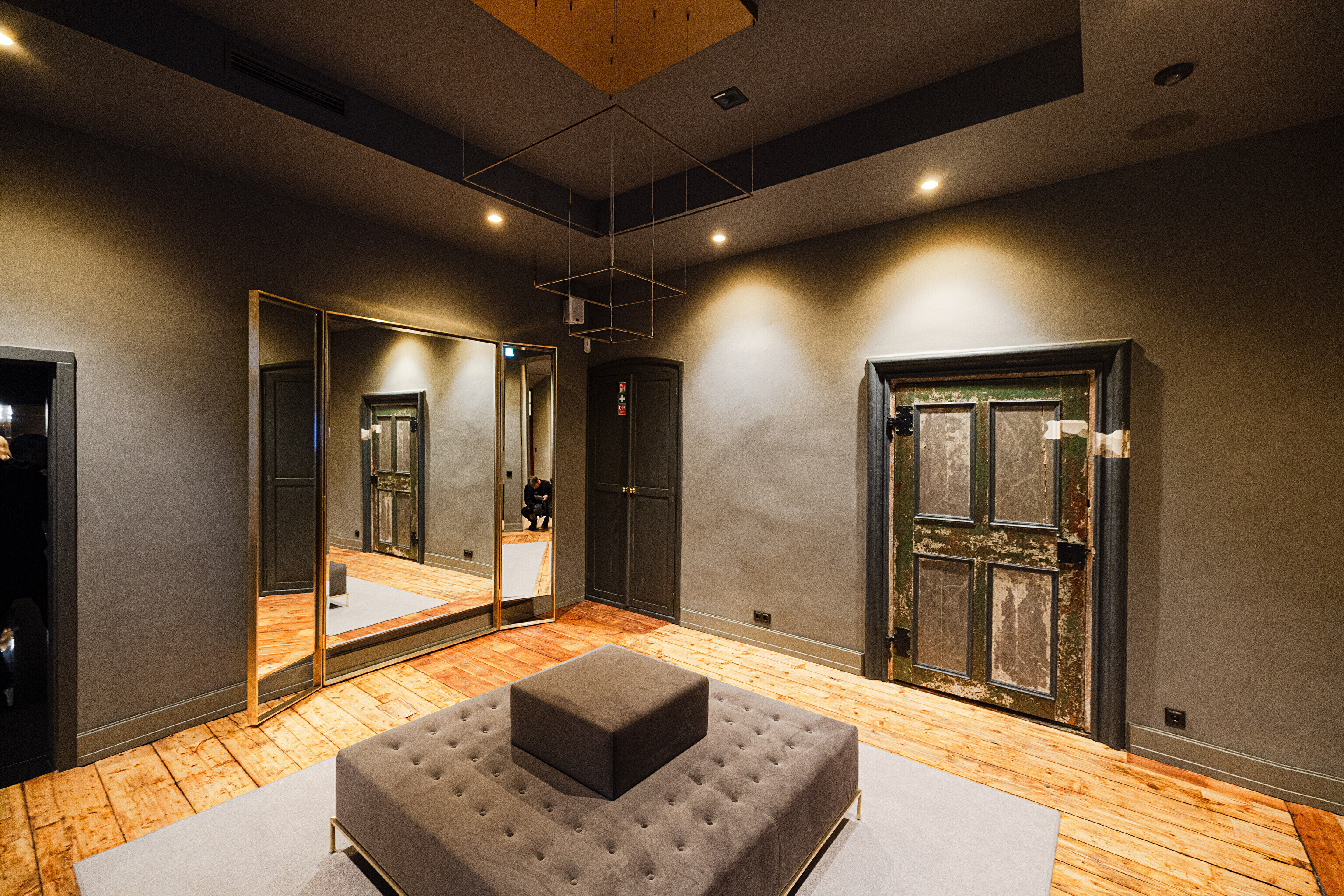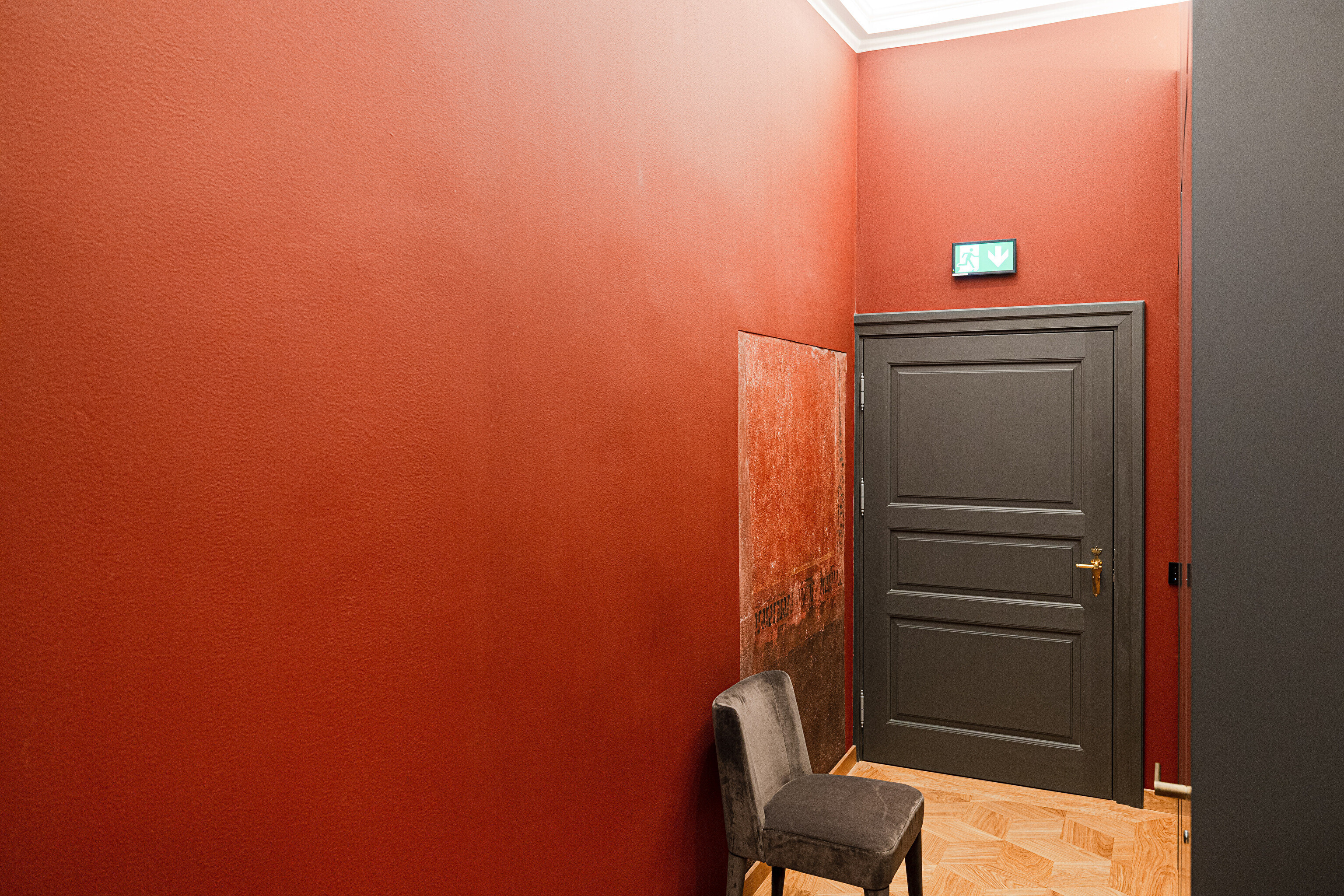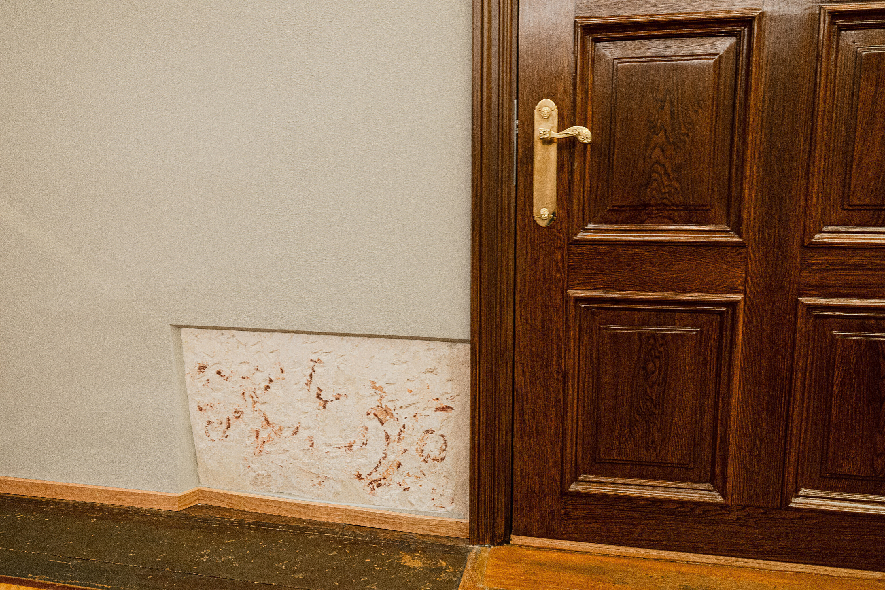 Задняя, более древняя часть комплекса последние сто лет использовалась по большей части для различных хозяйственных нужд и воспринималась как малоценная пристройка. Но самые интересные художественные открытия строителей и реставраторов ожидали как раз в этом здании. Например, здесь сохранились двери и полы периода барокко, точнее говоря, конца 17-го века. Реставраторы извлекли этот пол на свет божий, сняв 4 слоя полов более позднего времени.
