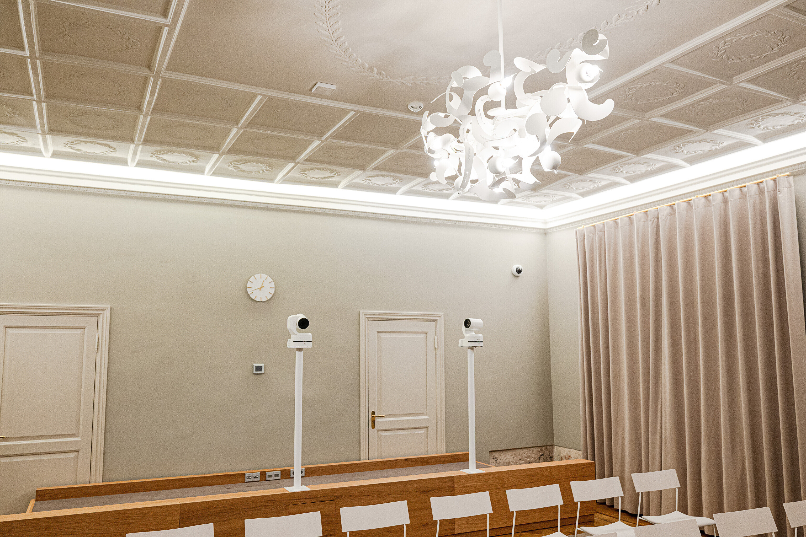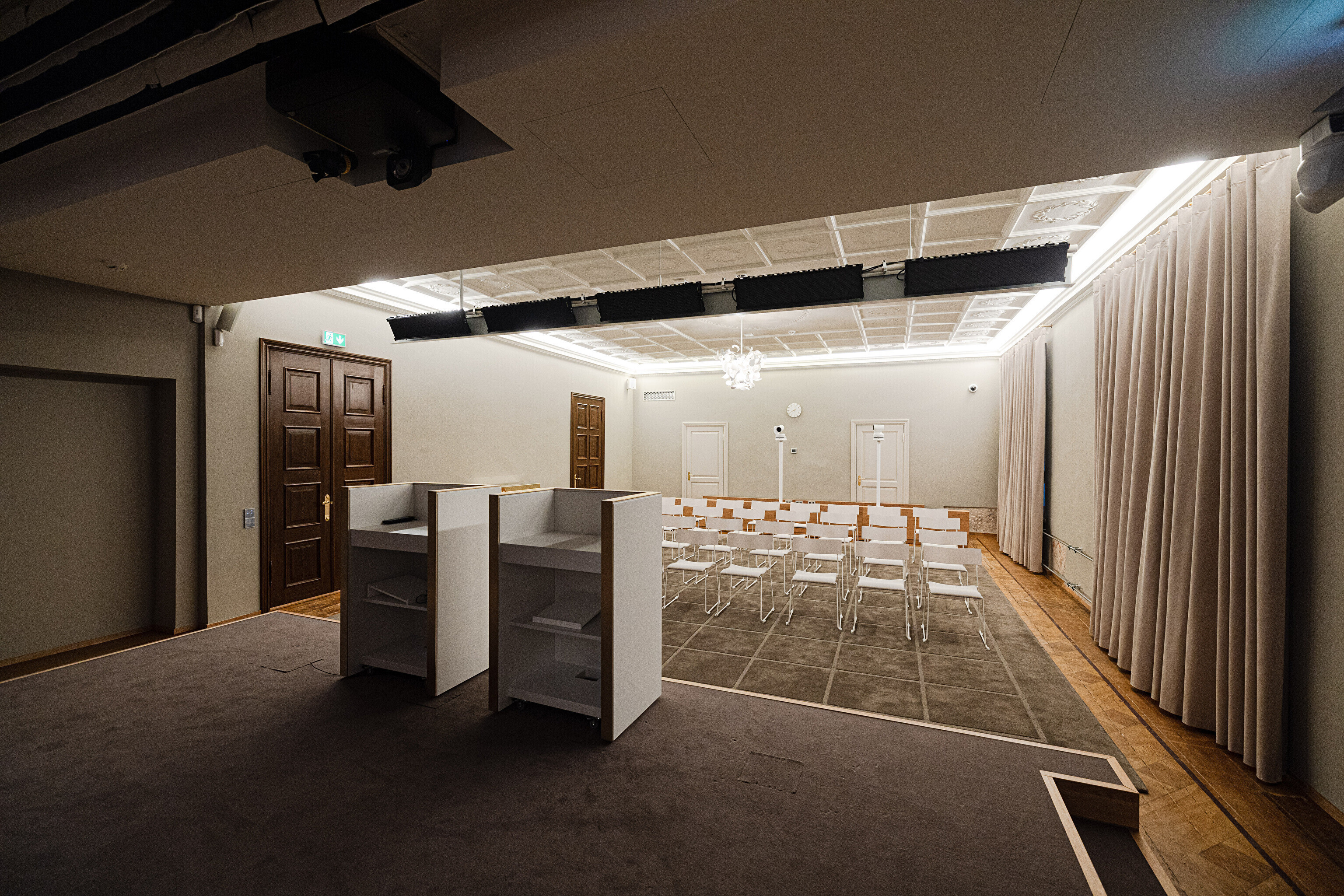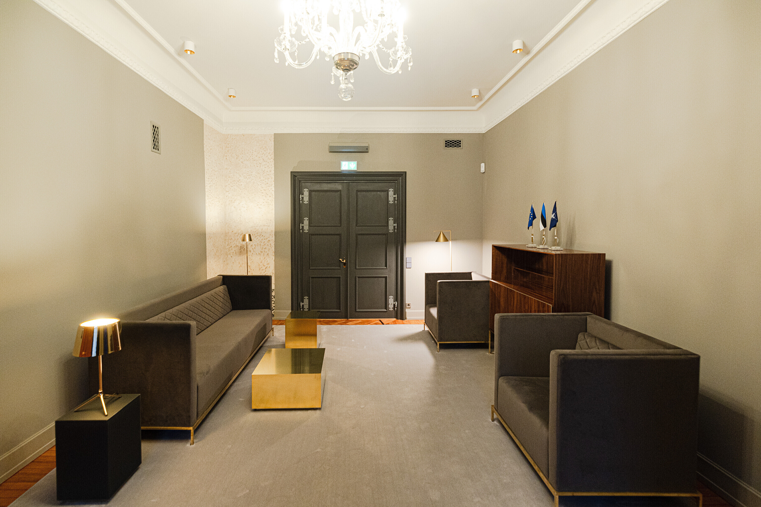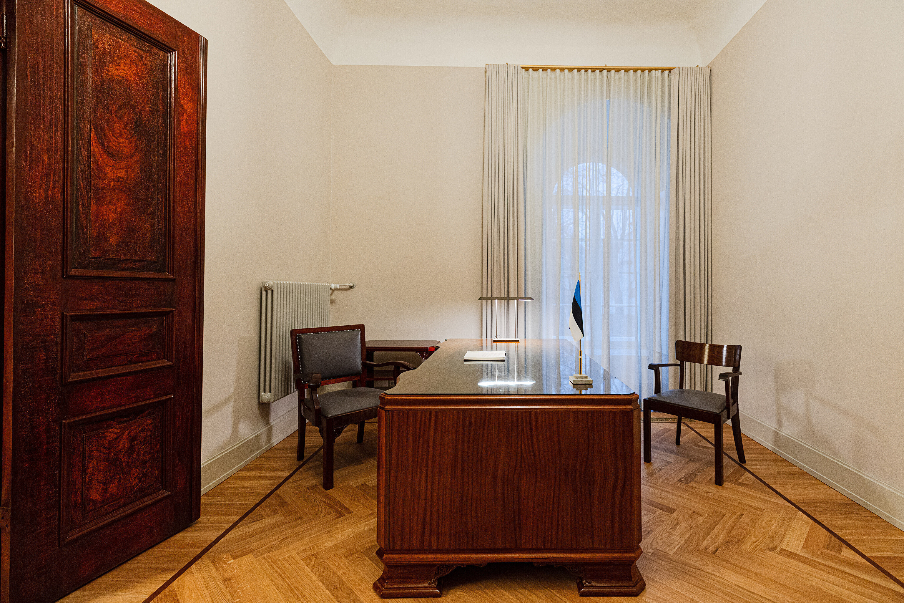 В здании, некогда принадлежавшем рыцарскому собранию, в годы довоенной Эстонской Республики размещалось Министерство иностранных дел, а в советскую эпоху его занимала Национальная библиотека. Несколько лет назад было решено превратить его в представительское здание, в котором можно будет принимать высоких зарубежных гостей, проводить пресс-конференции и разного рода совещания. И вот после реконструкции и скрупулезной реставрации импозантные залы предстали в былом великолепии, которое дополнено элегантной современной мебелью и дизайнерскими светильниками, а также ценными и даже уникальными артефактами, передает "Актуальная камера".