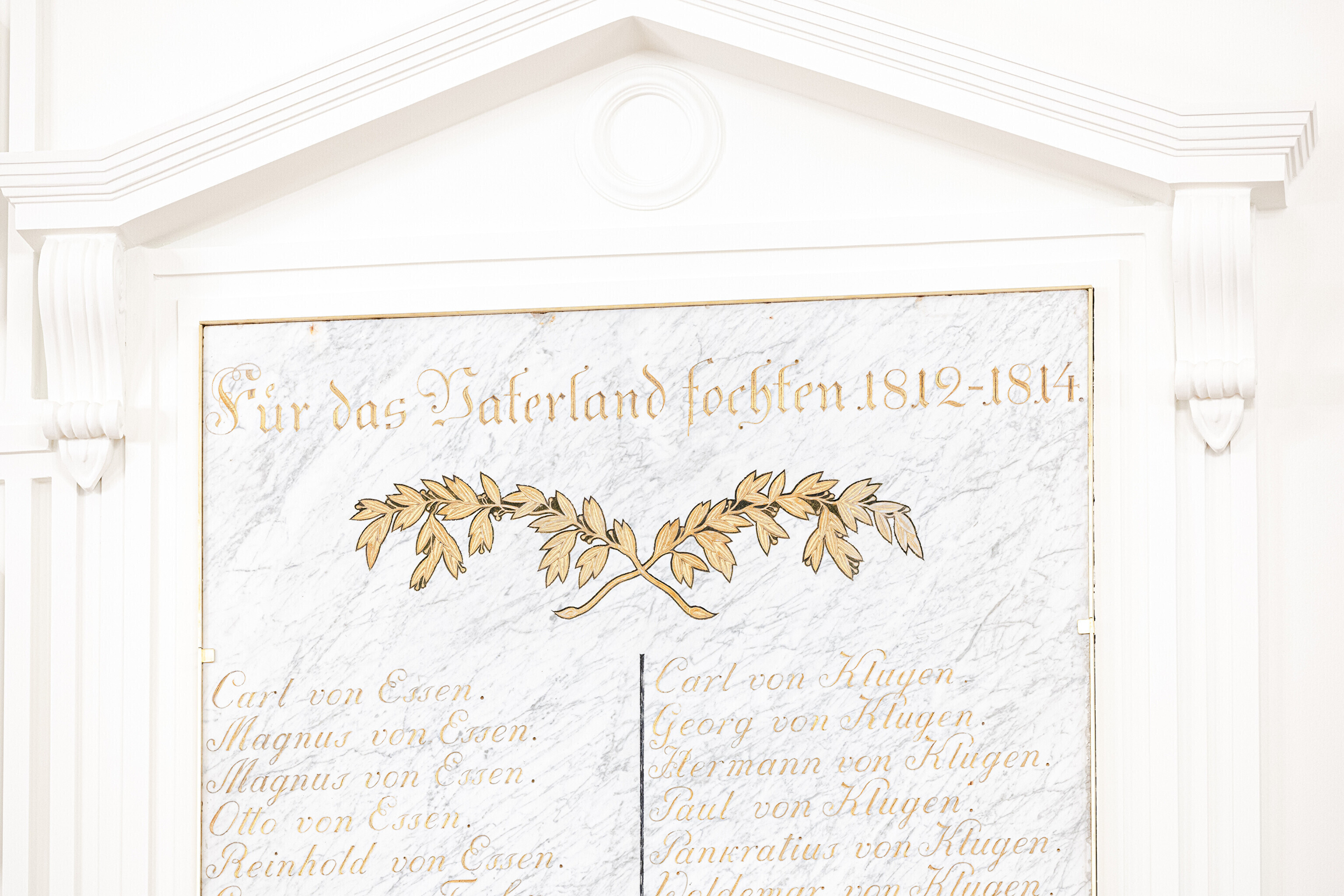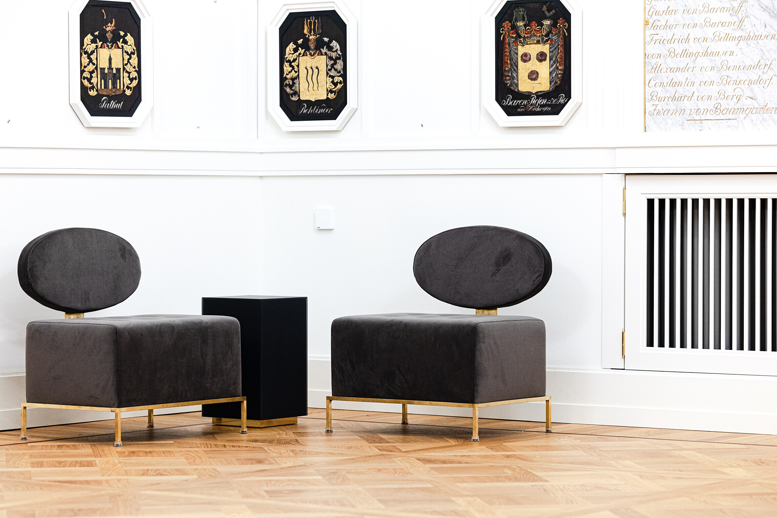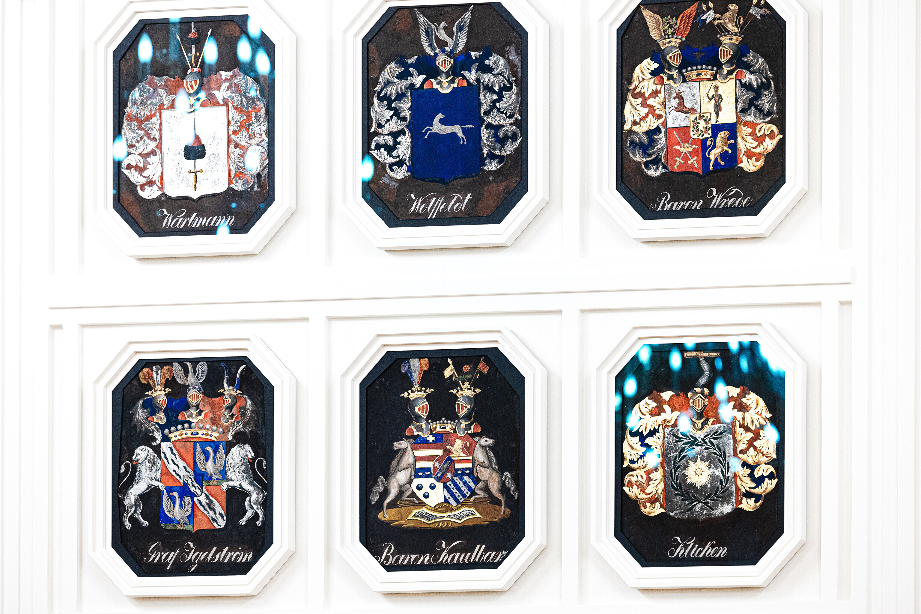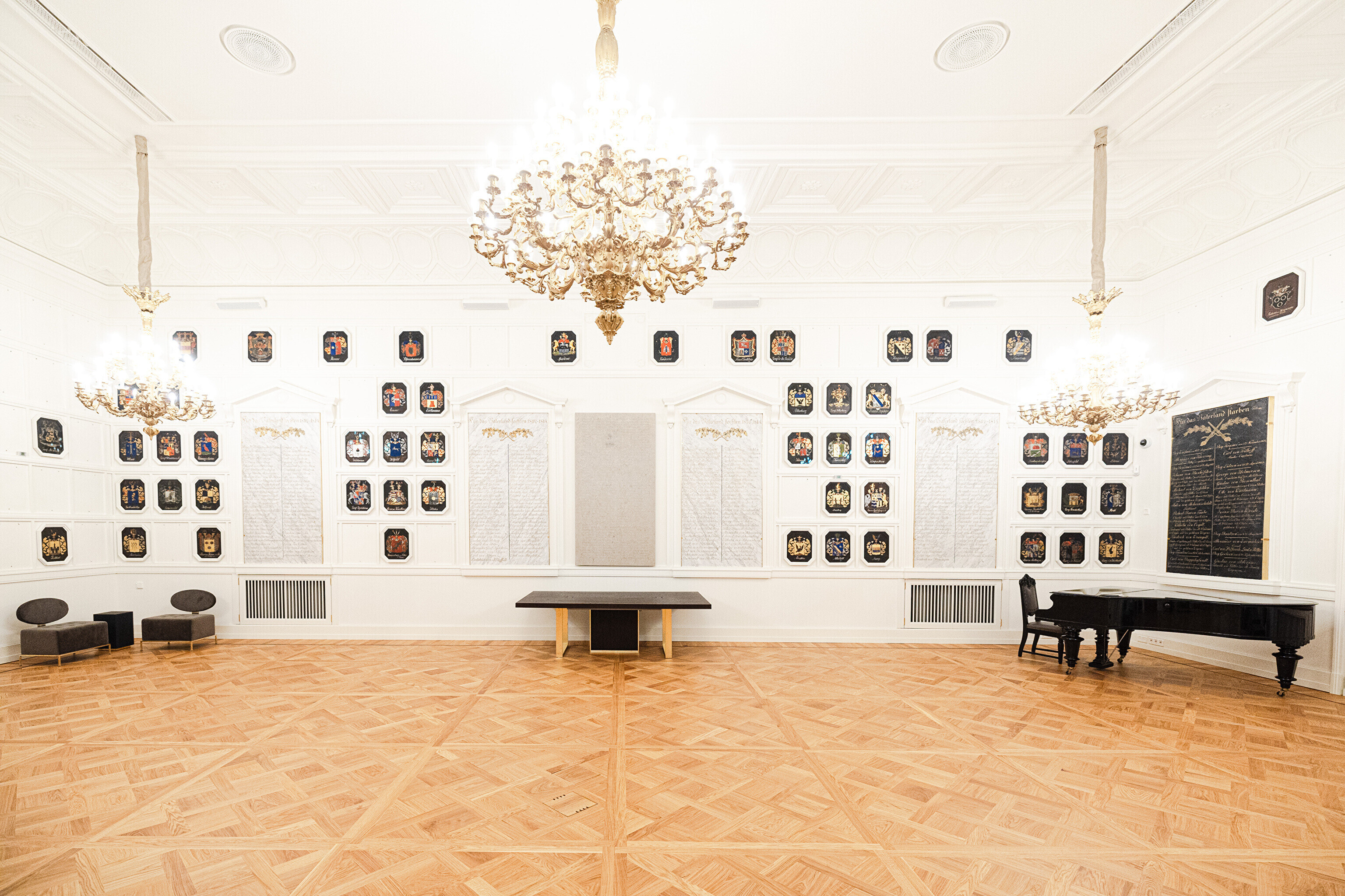 "Самыми важными компонентами этого зала являются, конечно, мемориальные доски с именами участников войн с Наполеоном, а также написанные на картоне дворянские гербы. Памятные плиты хранились до сих пор в Домском соборе, а гербы – в запасниках Художественного музея. Часть этих гербов ещё проходит реставрацию, но в итоге ими украшены все стены этого парадного зала", – рассказала дизайнер интерьеров Пилле Лаусмяэ-Лыоке.
