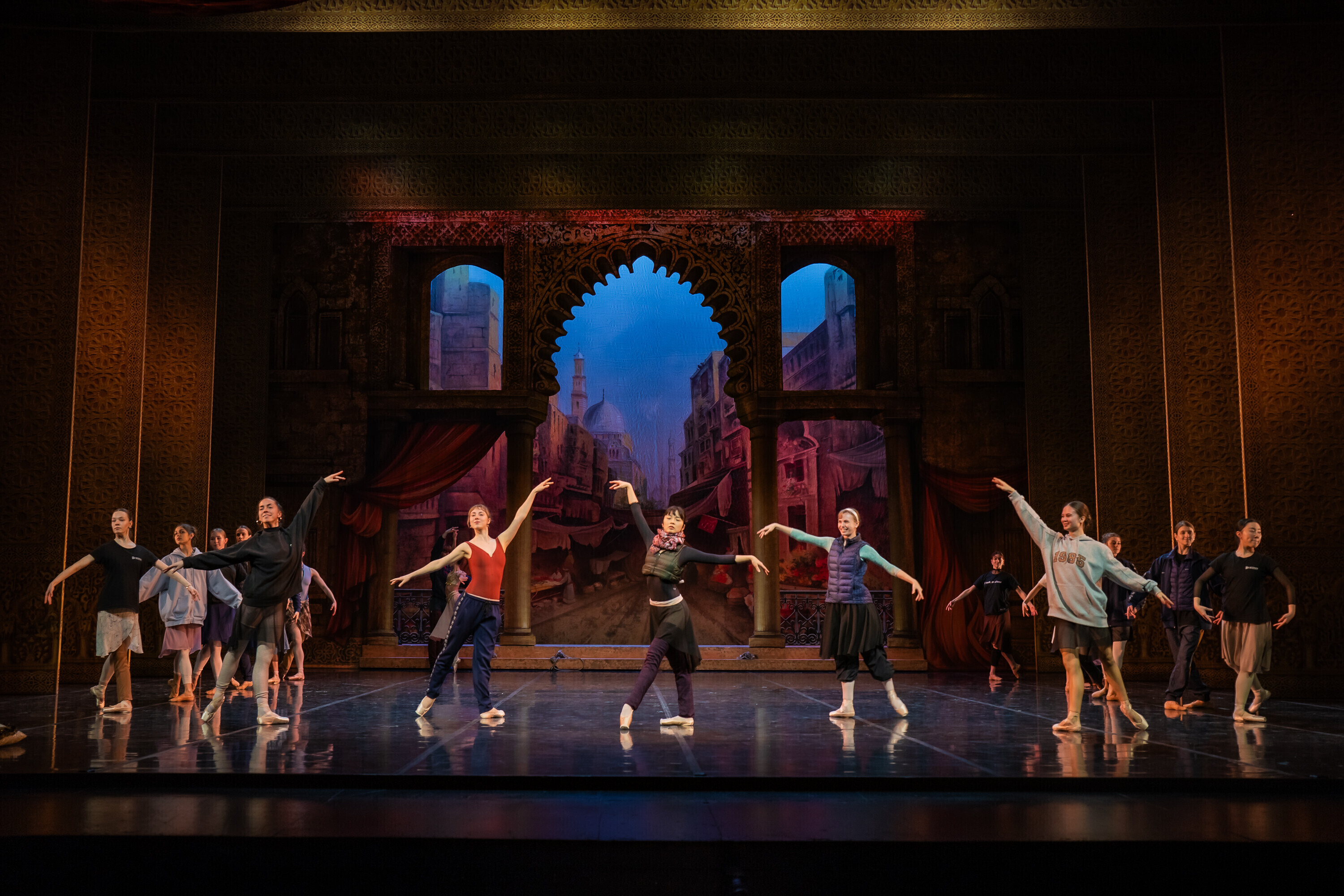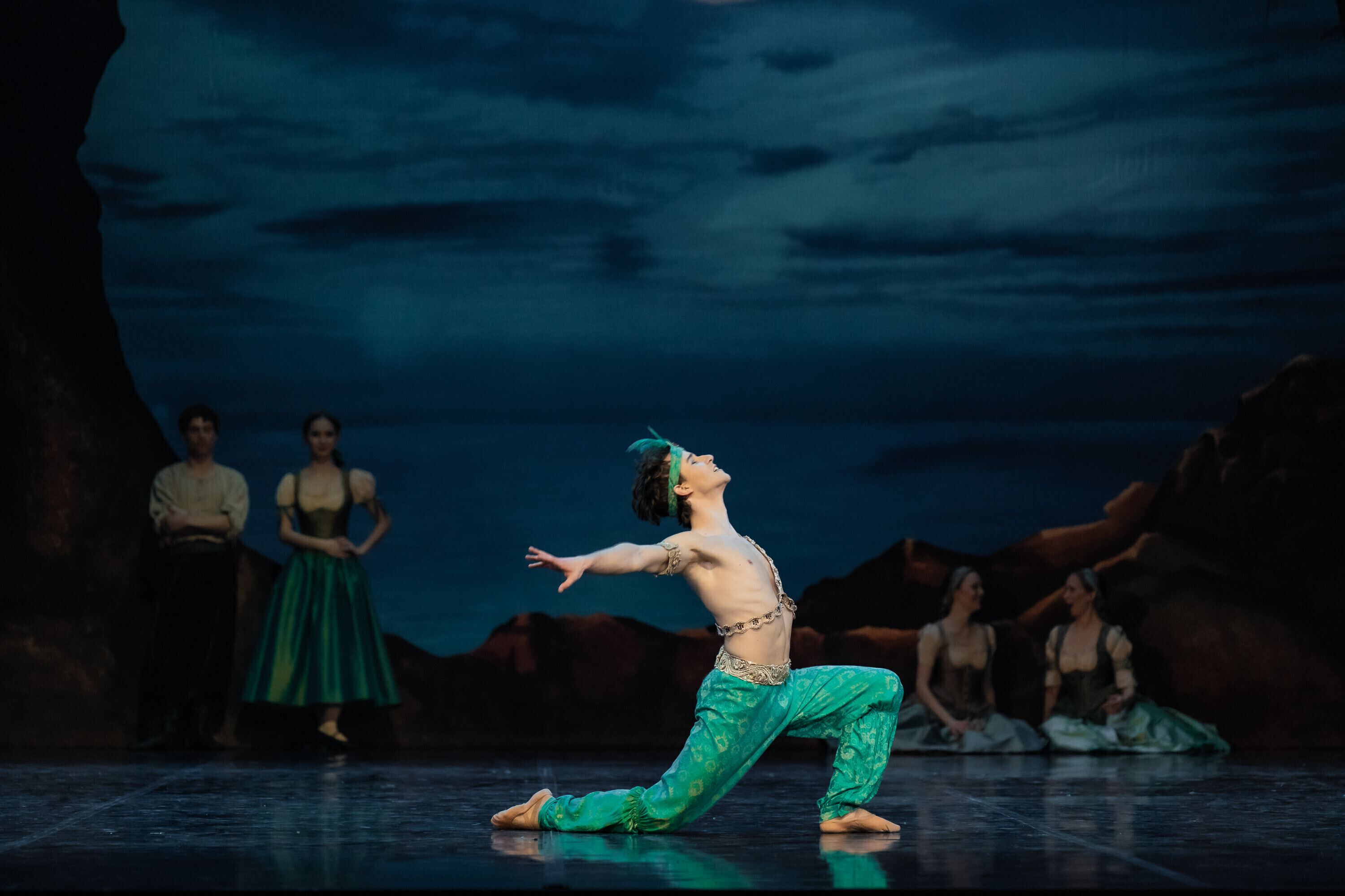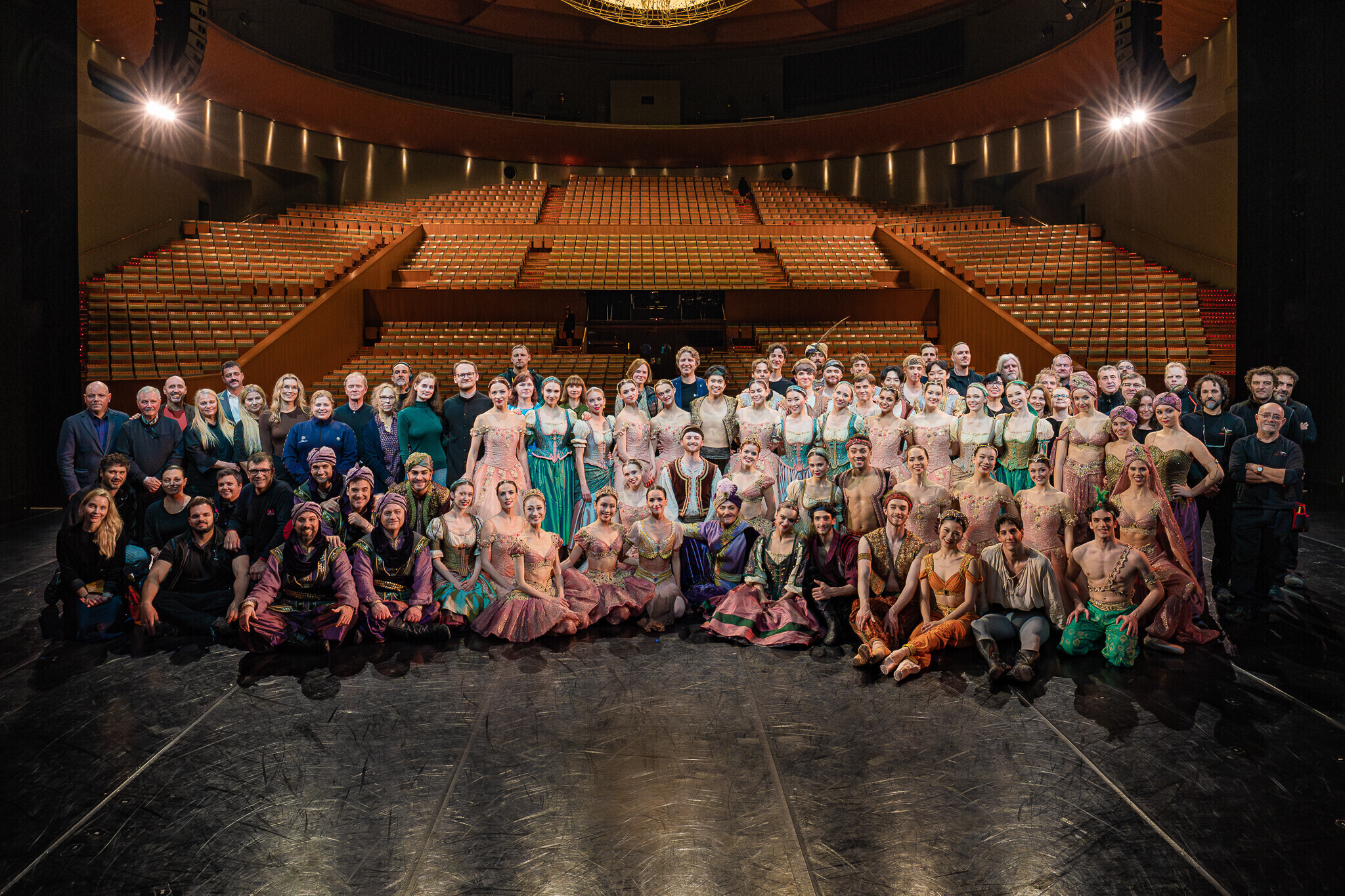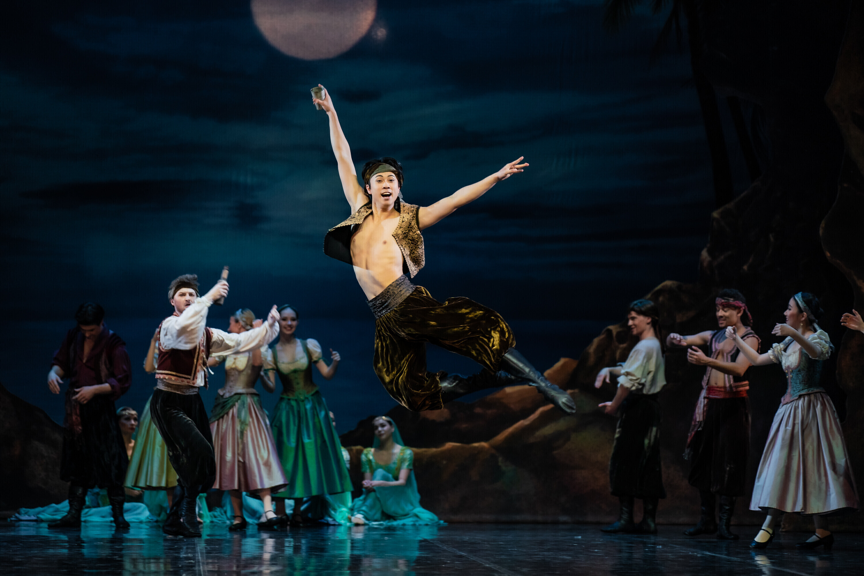 В Испанию отправилась команда из 84 человек, включая труппу и технический персонал. В главных ролях балета "Корсар" в Севилье выступили Анна Роберта, Ами Морита, Кетлин Оя, Лаура Майя, Аканэ Ичии, Джоэл Александр Калстар-Фишер, Уильям Ньютон, Али Урата, Финн Адамс и Кристиано Принчипато. Местным оркестром руководил дирижер Национальной оперы Эстонии Каспар Мянд.