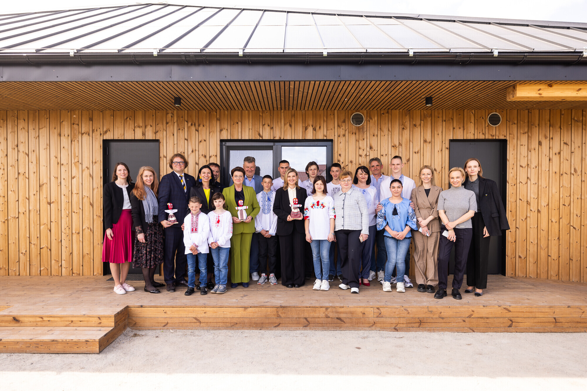 Супруга президента Эстонии Сирье Карис и первая леди Украины Елена Зеленская открыли в Житомире новый семейный дом, ставший жилищем для приемной семьи с девятью детьми, пострадавшей от войны и бежавшей от нее. Супруги президентов двух стран встретились с пятью семьями, для которых при поддержке Эстонии построены или строятся семейные дома.