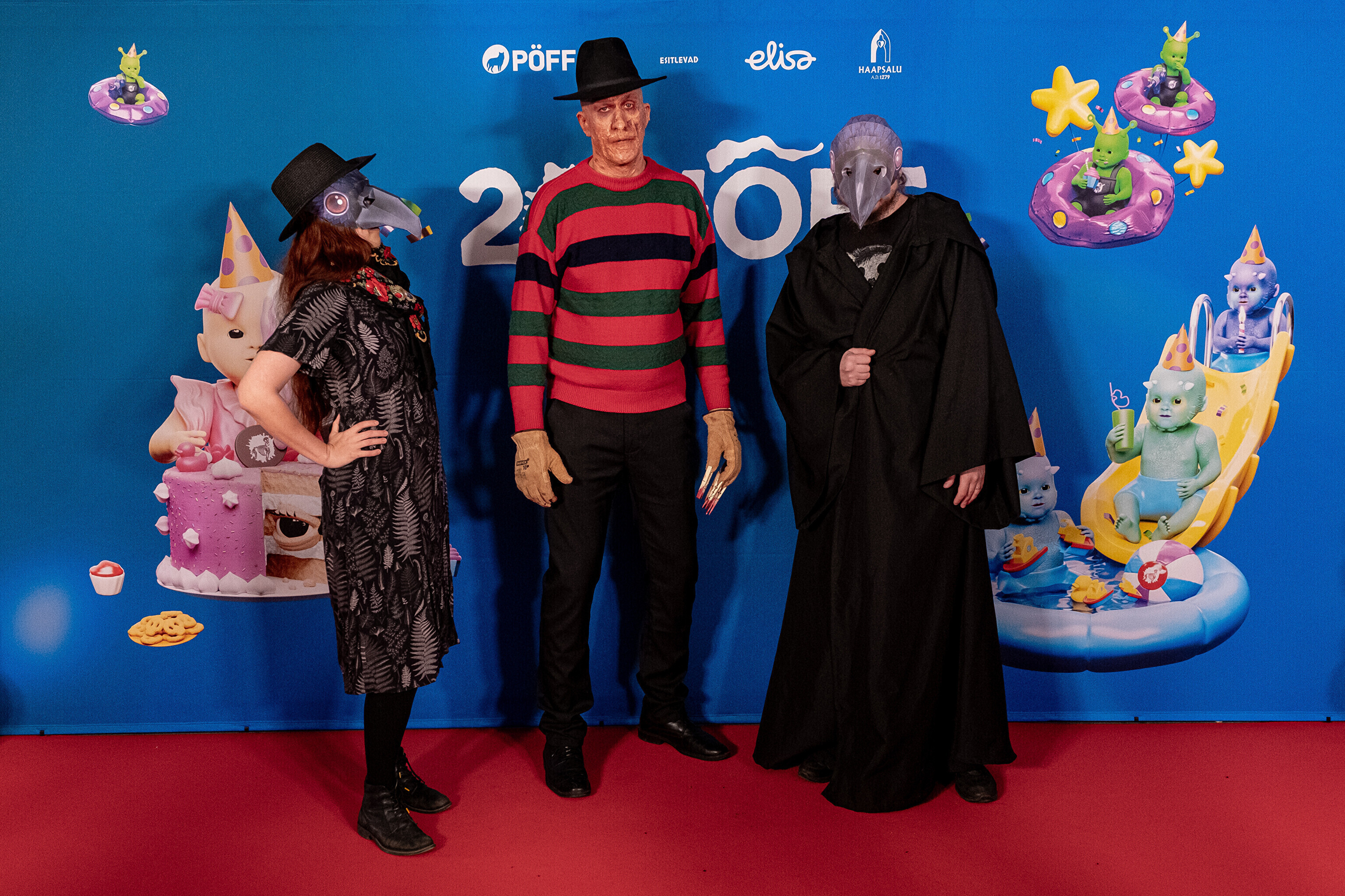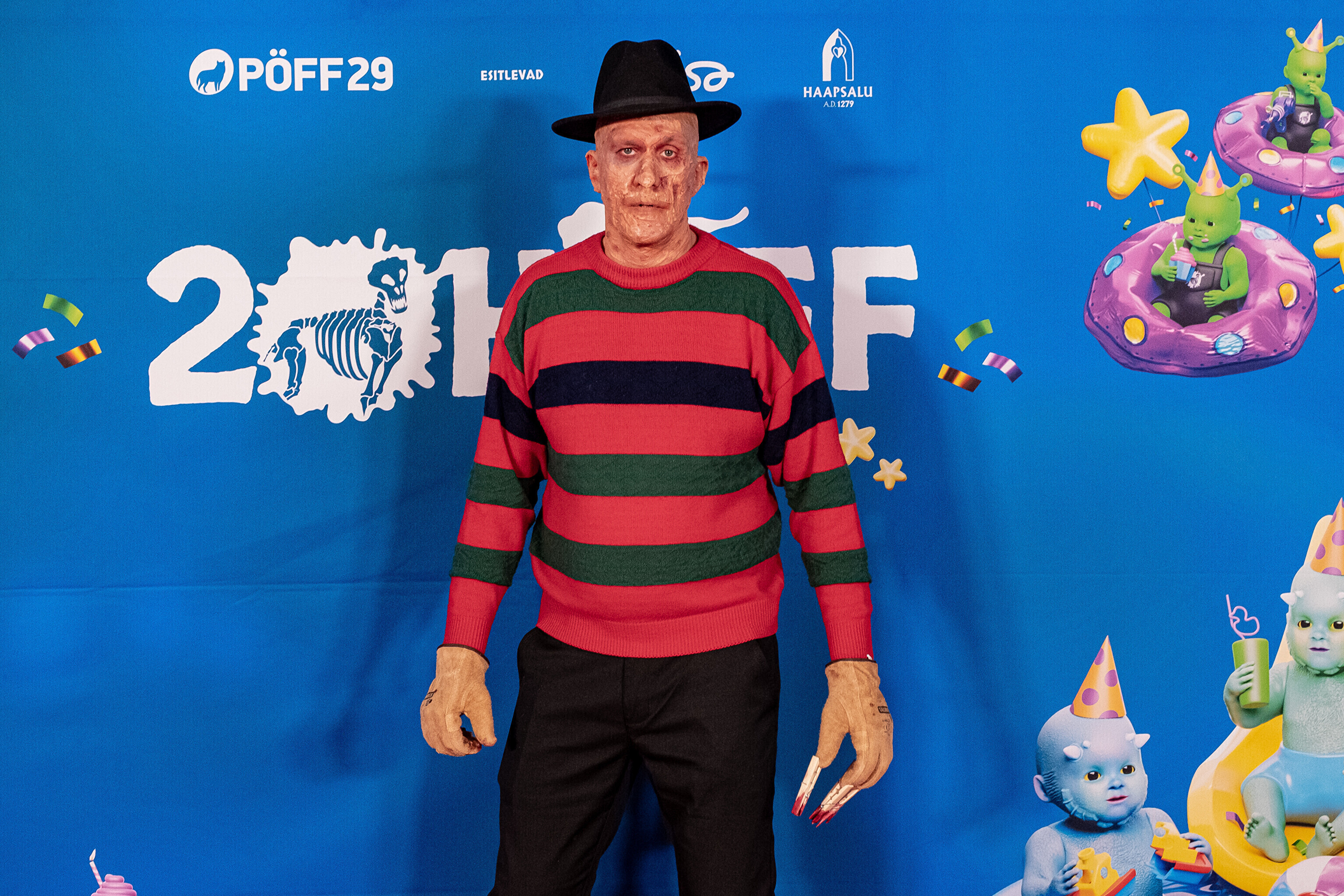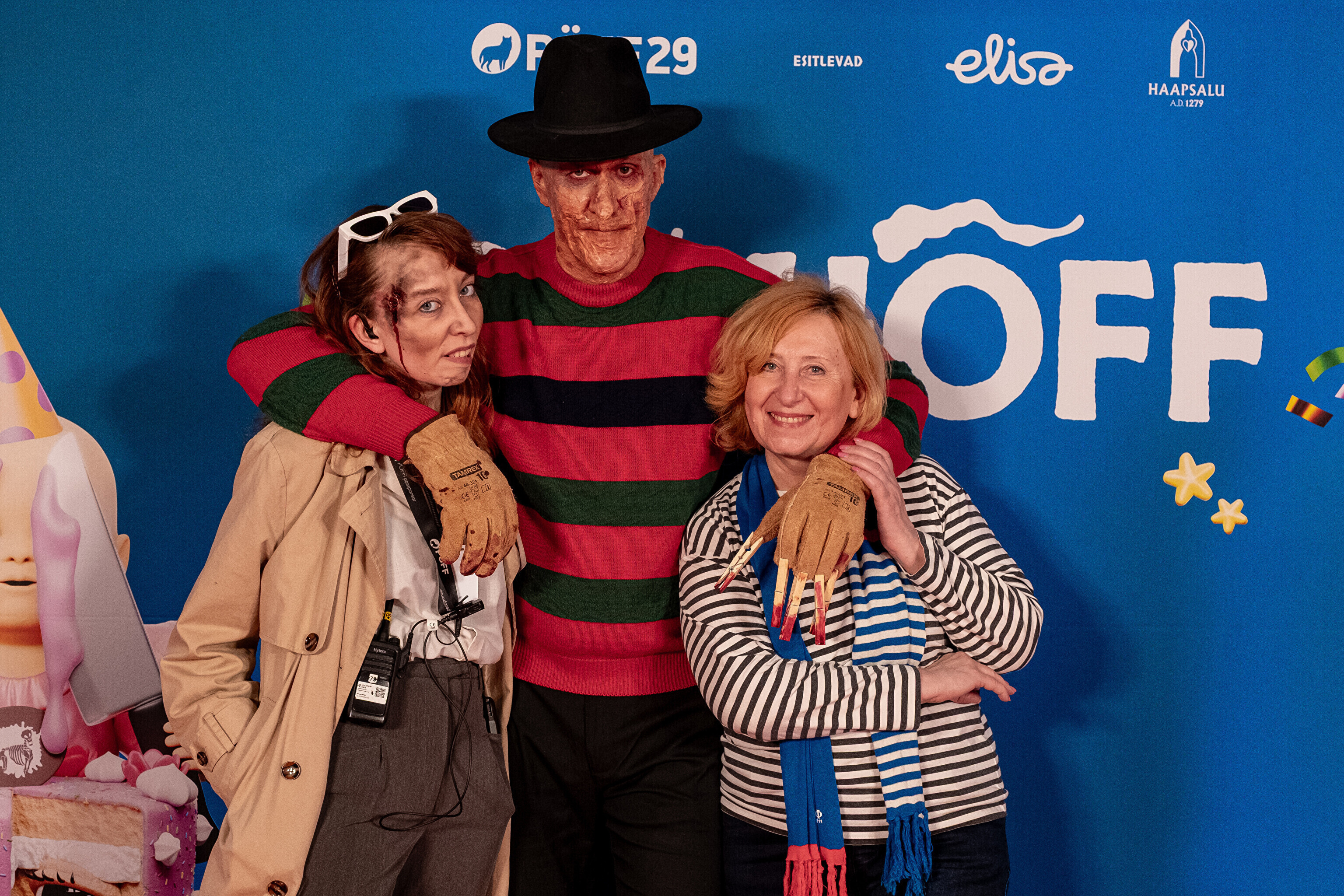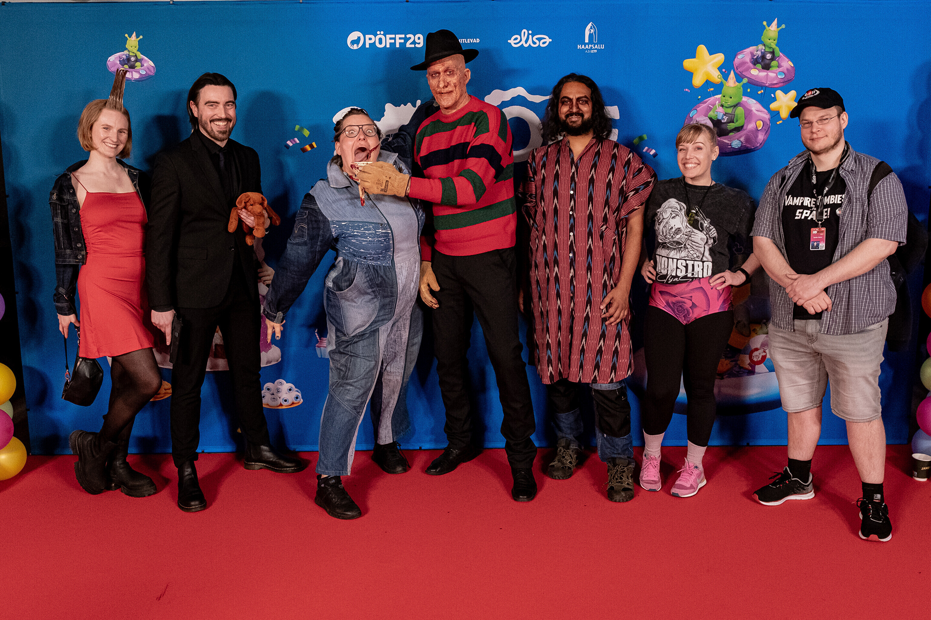 На кроваво-красной дорожке, развернутой в культурном центре, гостей встречал ночной кошмар с улицы Пости. Празднику предшествовало костюмированное шествие, в котором приз за лучший костюм достался "Человеку без кожи".