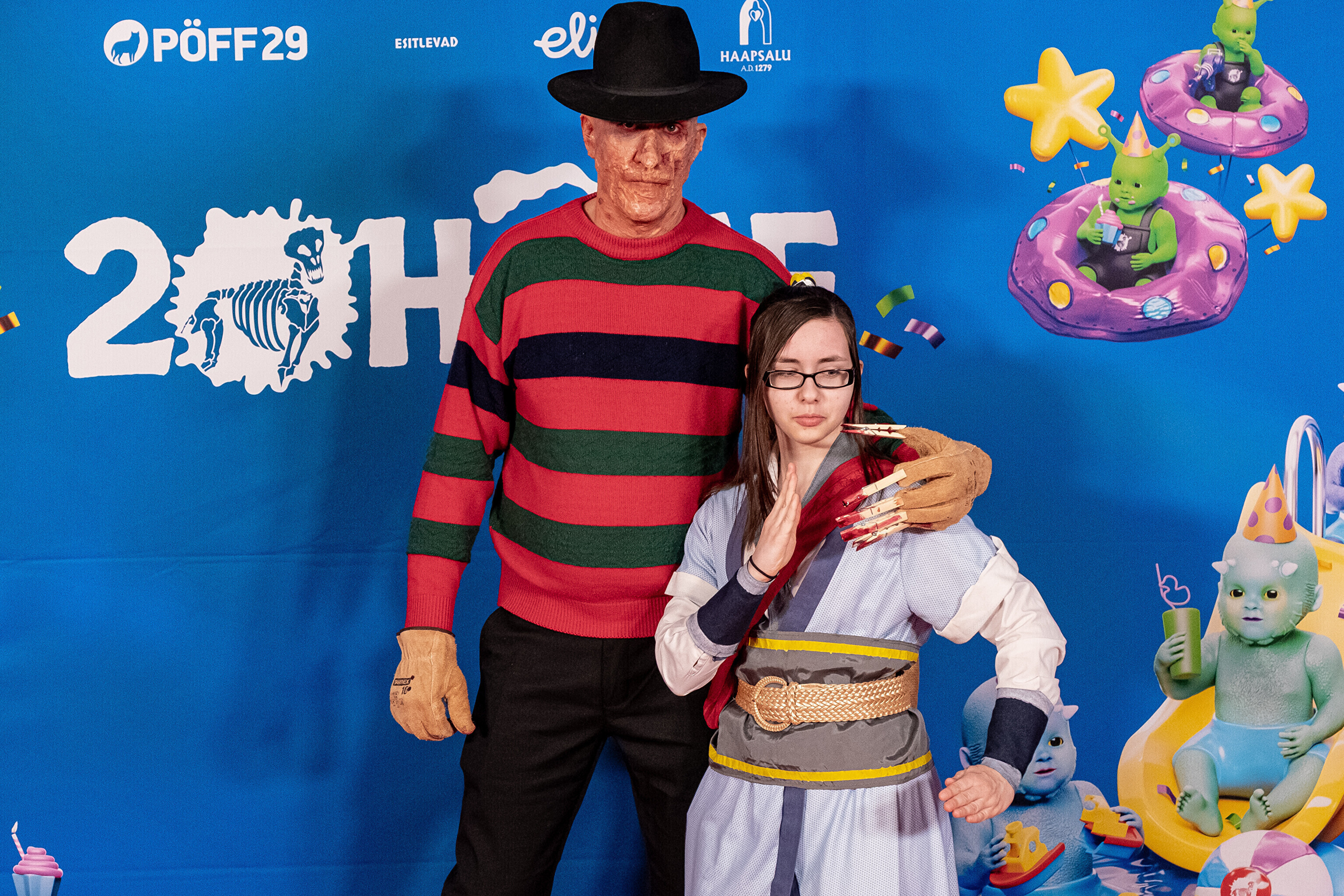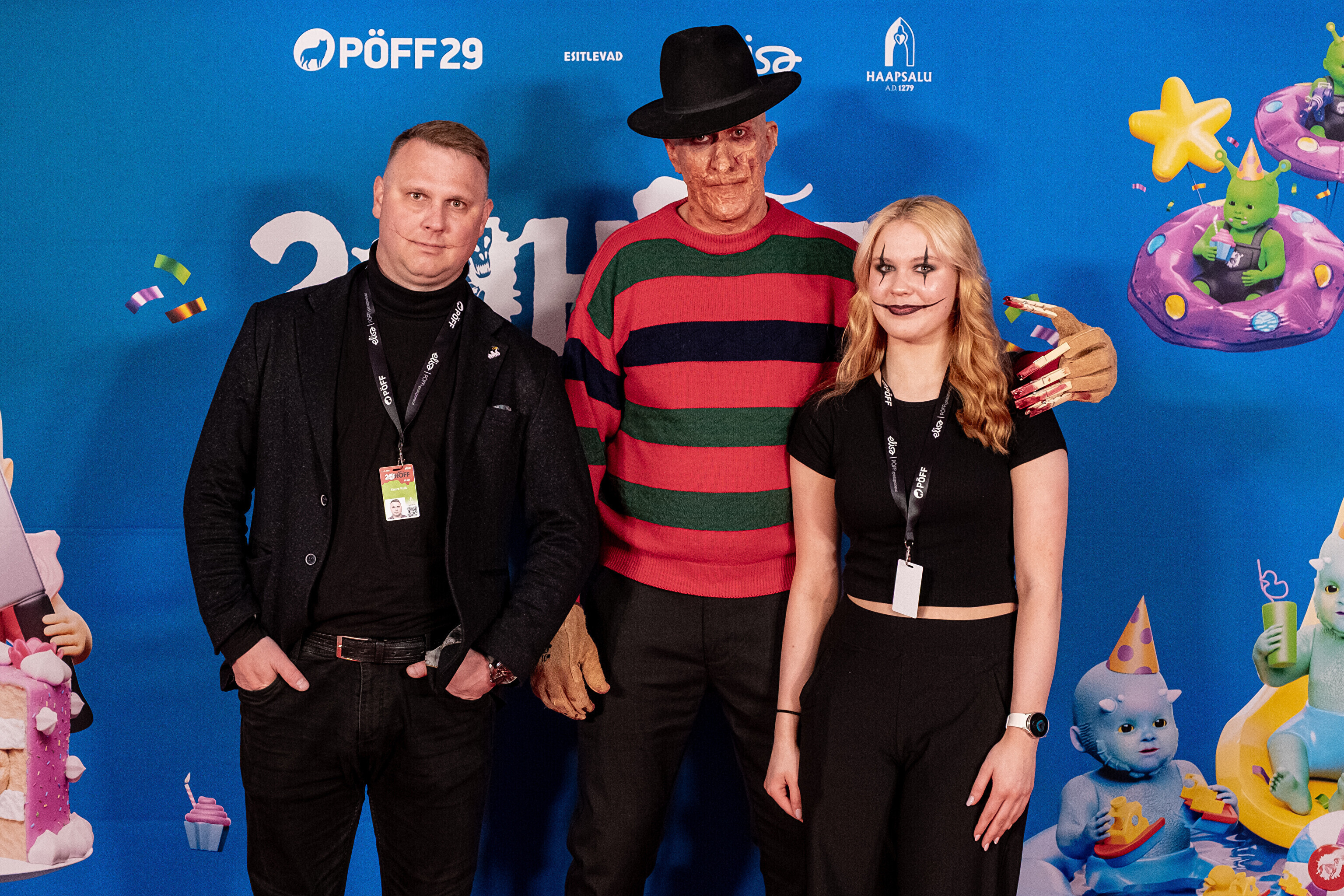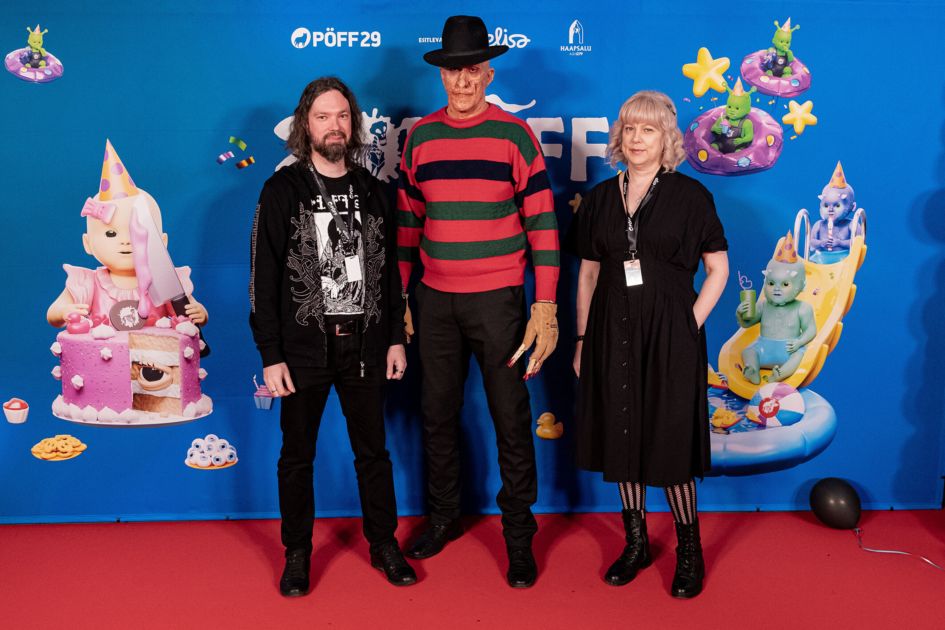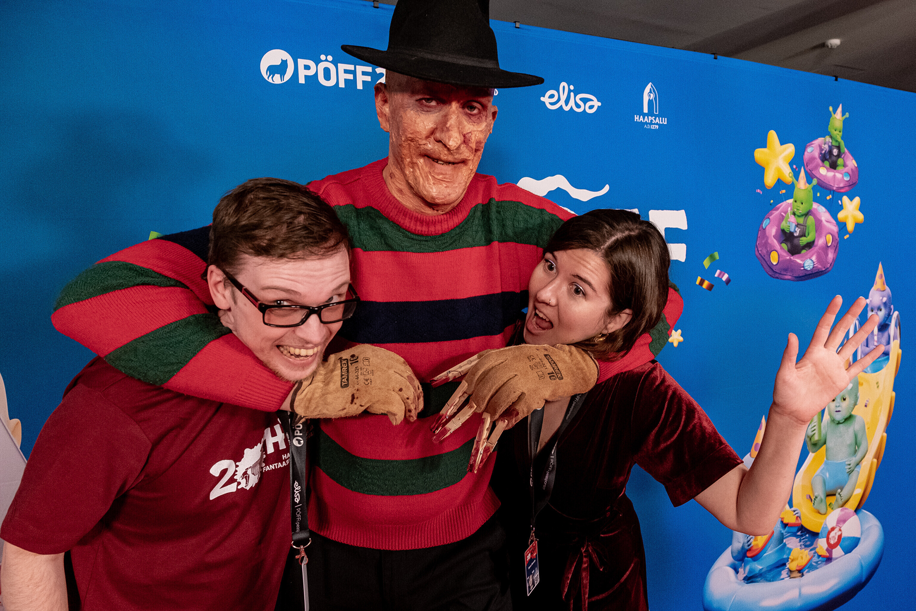 На кроваво-красной дорожке, развернутой в культурном центре, гостей встречал ночной кошмар с улицы Пости. Празднику предшествовало костюмированное шествие, в котором приз за лучший костюм достался "Человеку без кожи".
