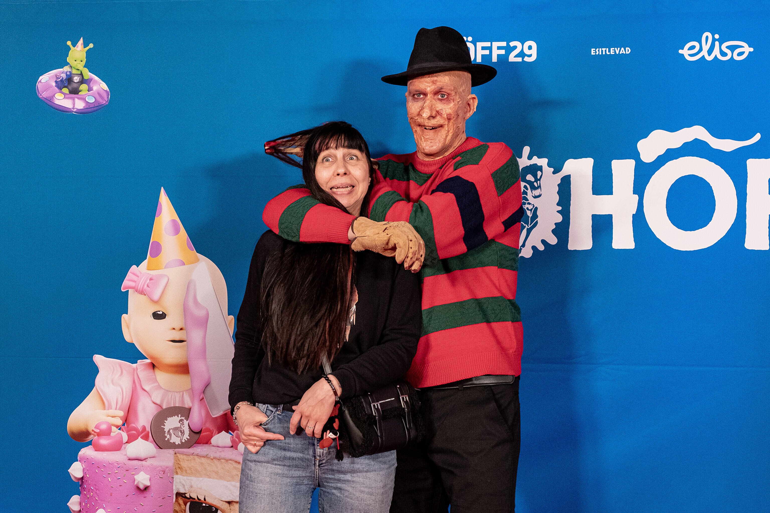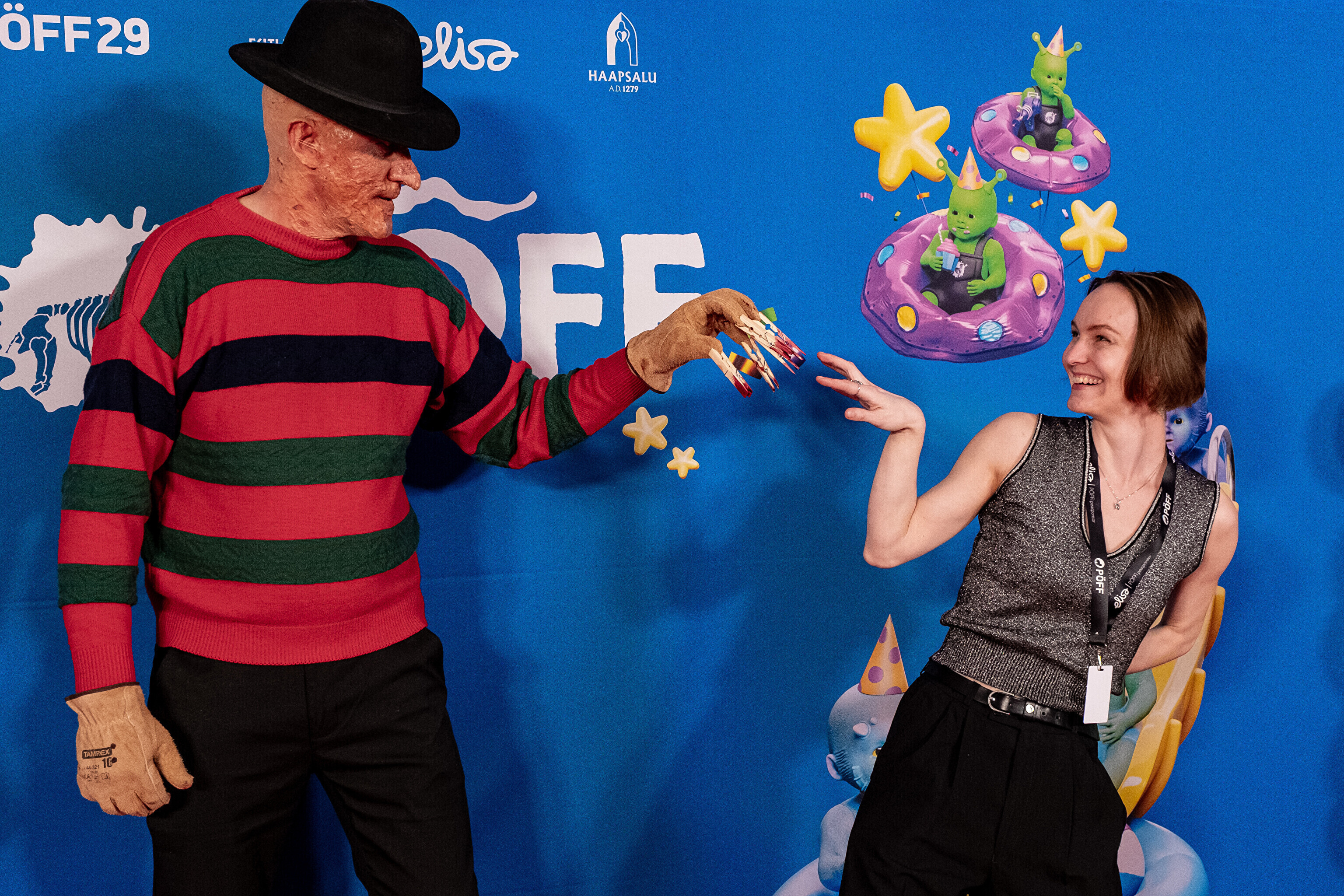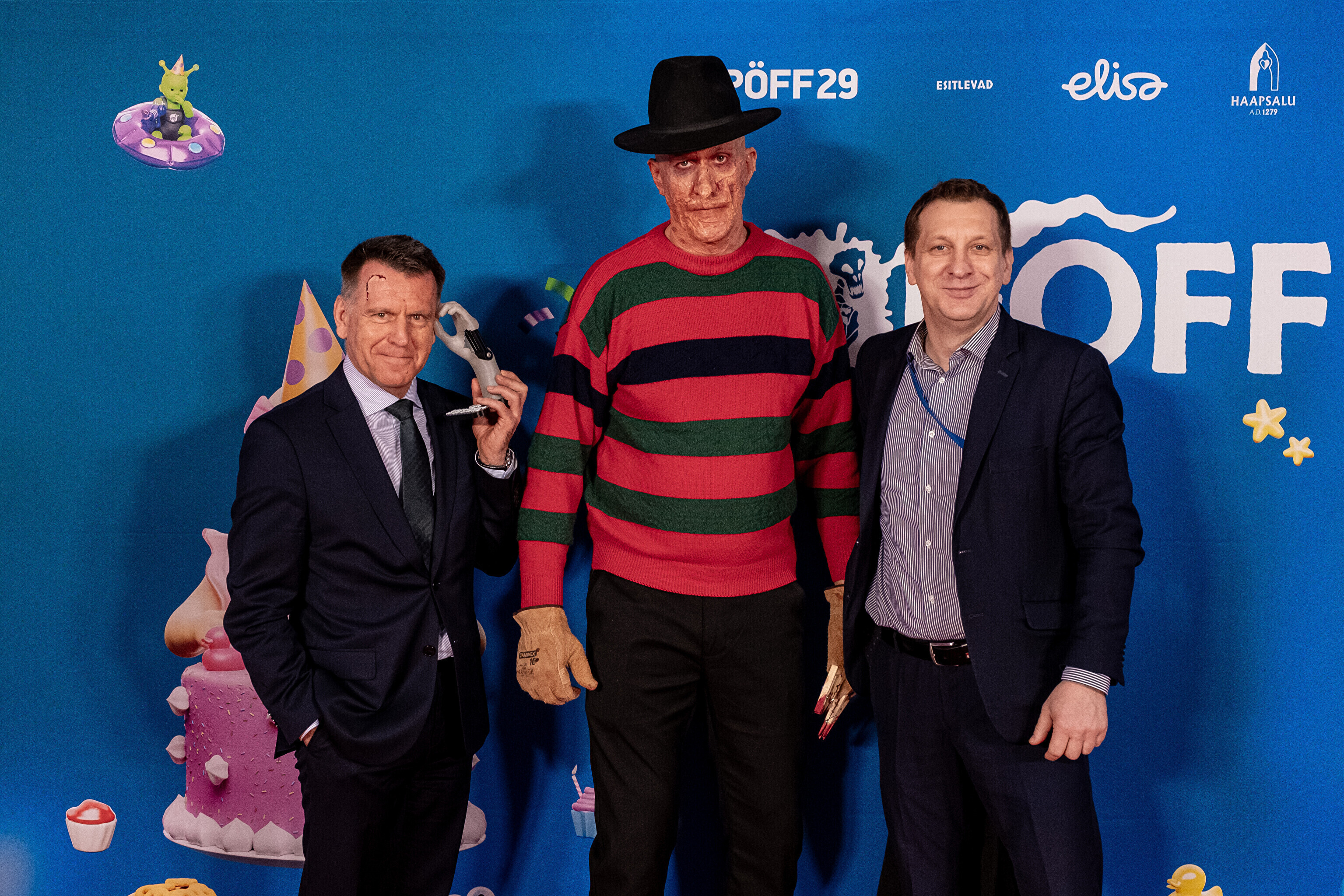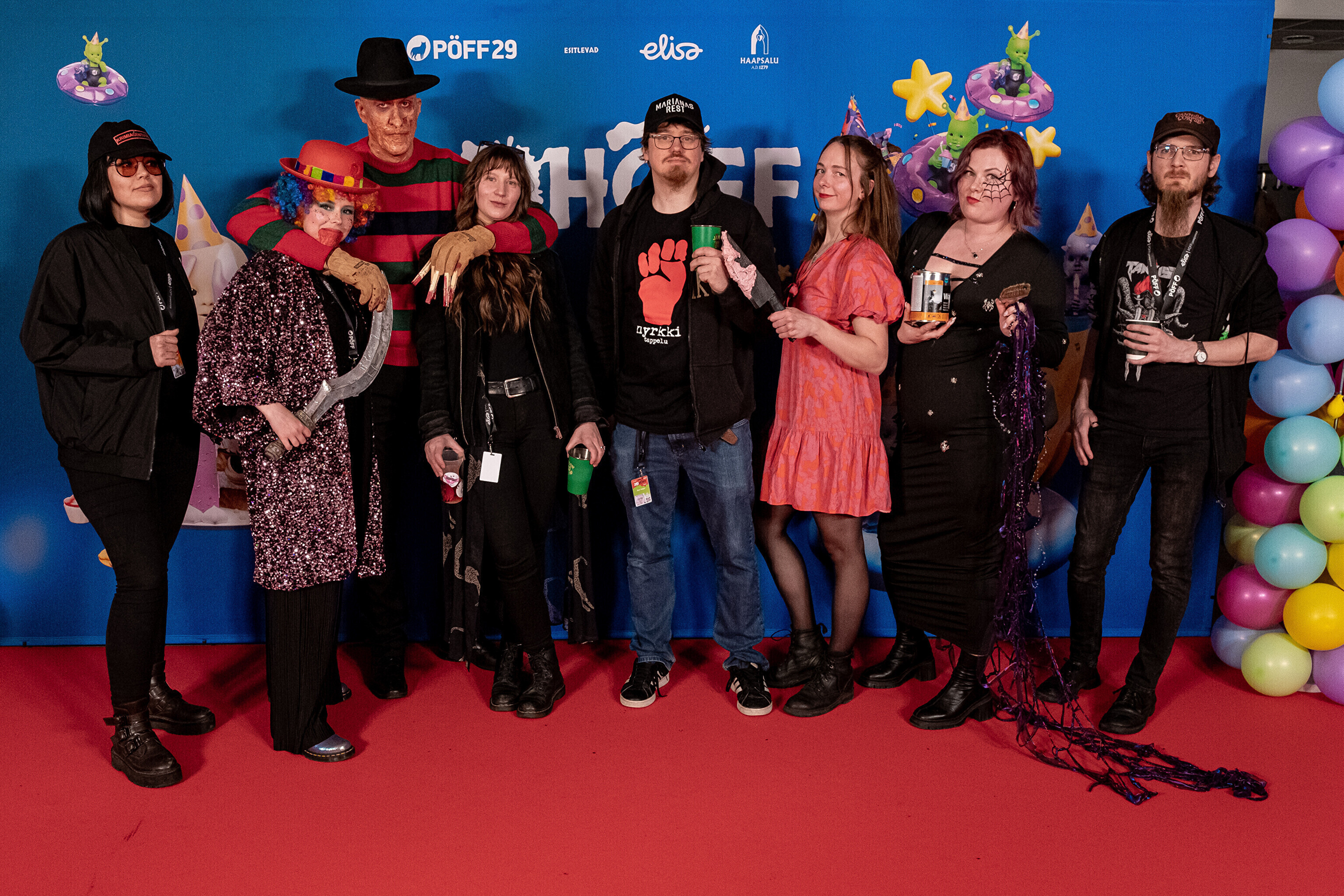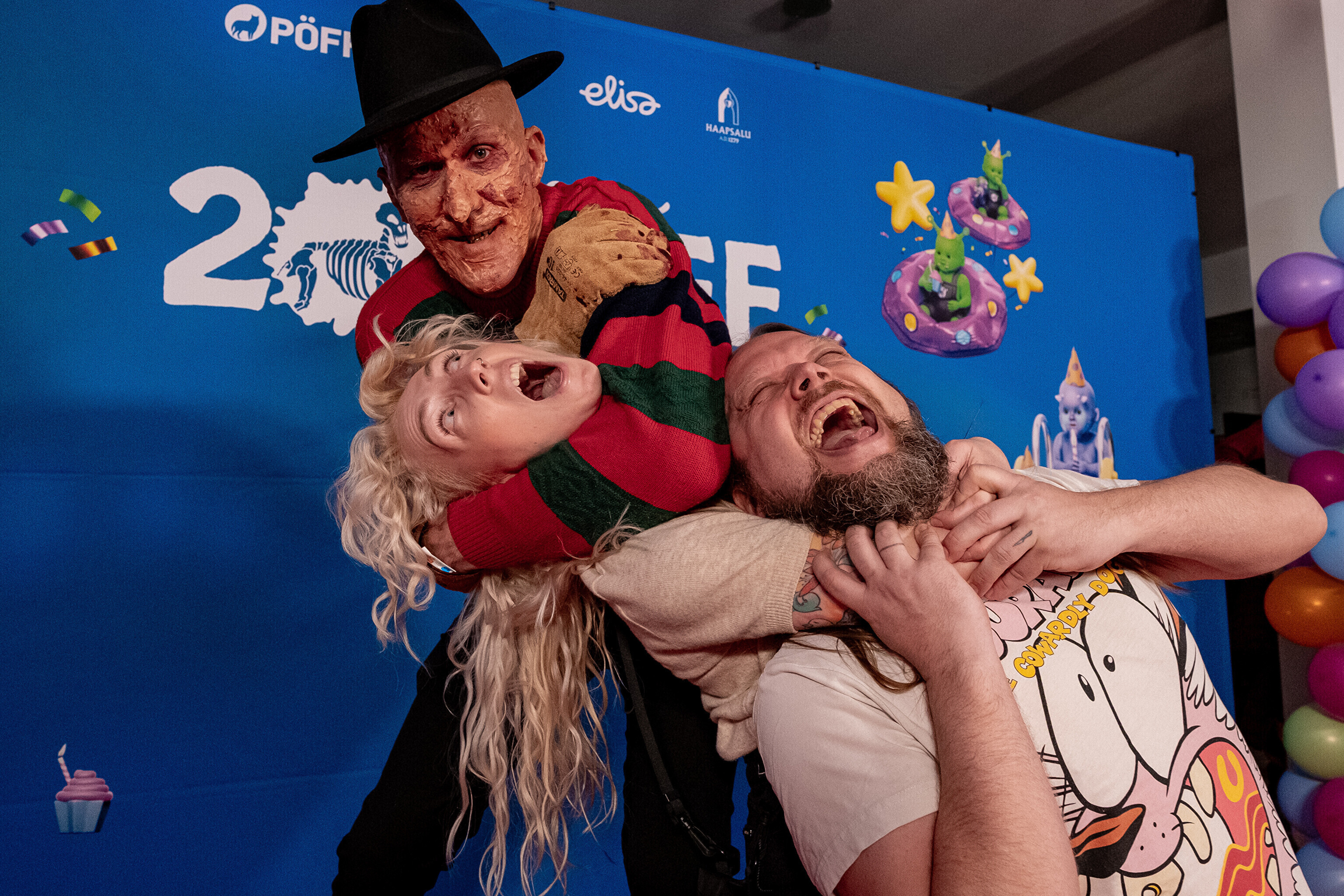 На кроваво-красной дорожке, развернутой в культурном центре, гостей встречал ночной кошмар с улицы Пости. Празднику предшествовало костюмированное шествие, в котором приз за лучший костюм достался "Человеку без кожи".