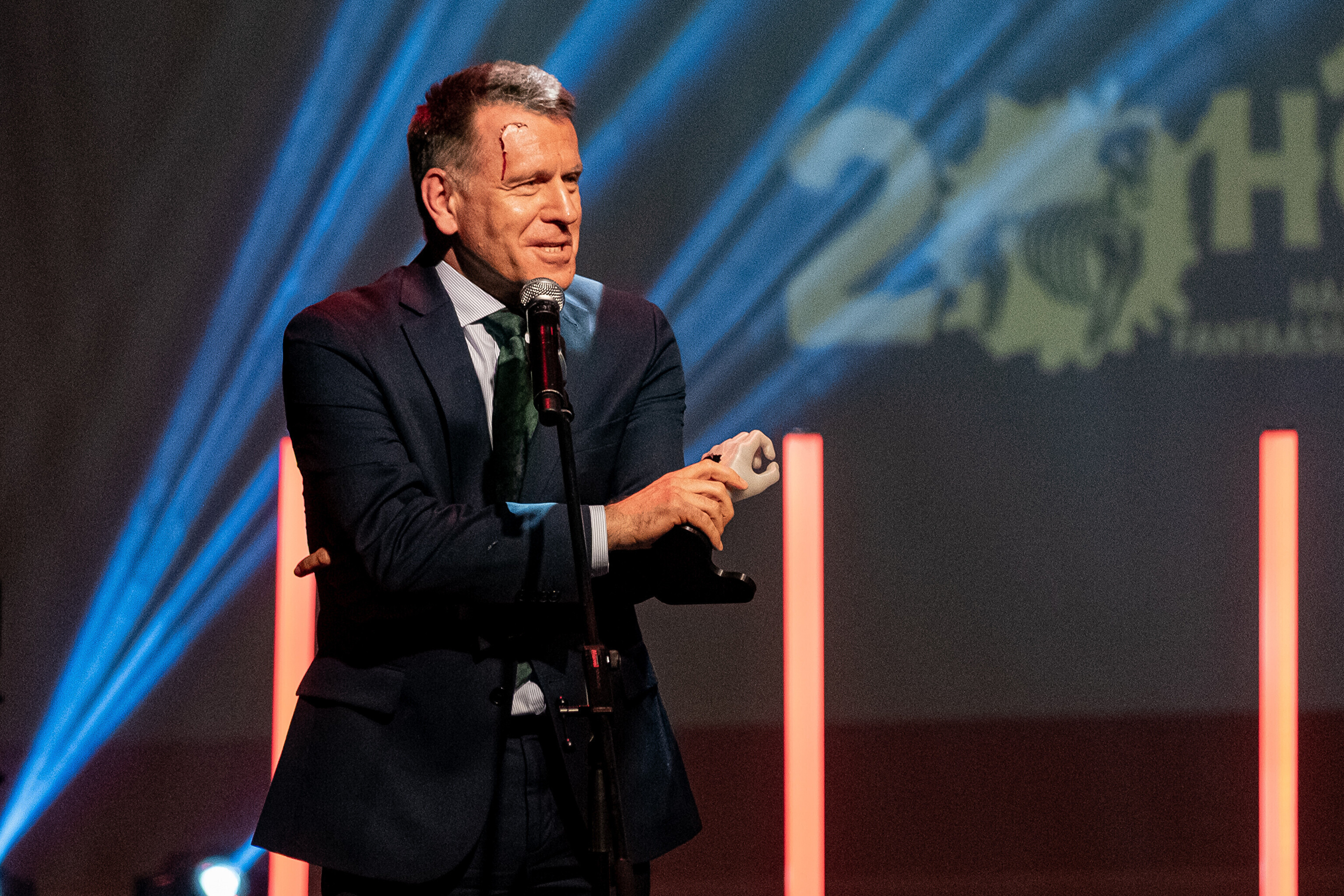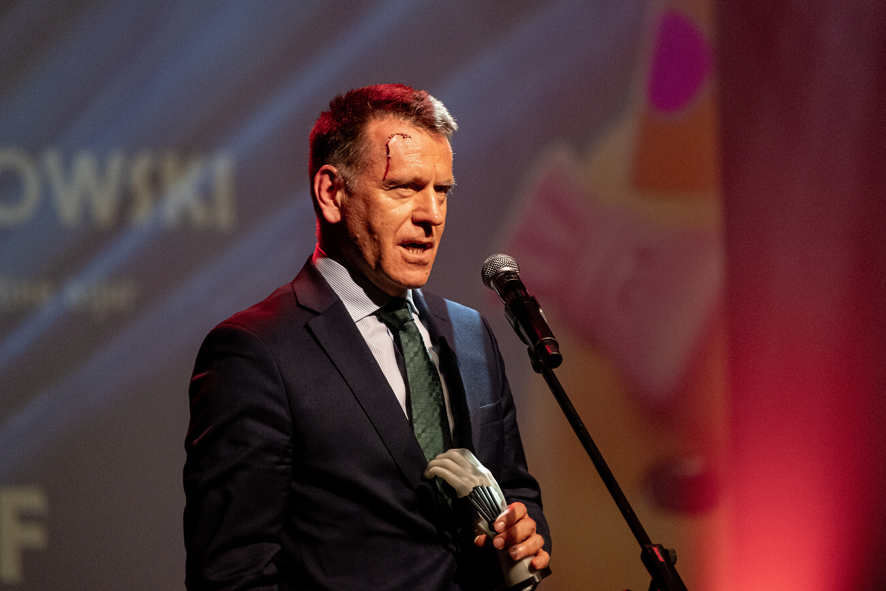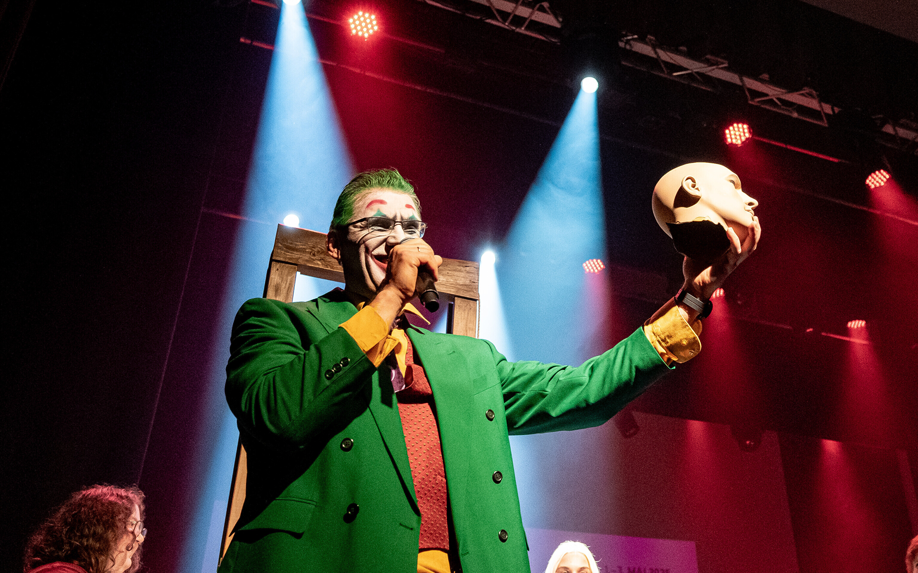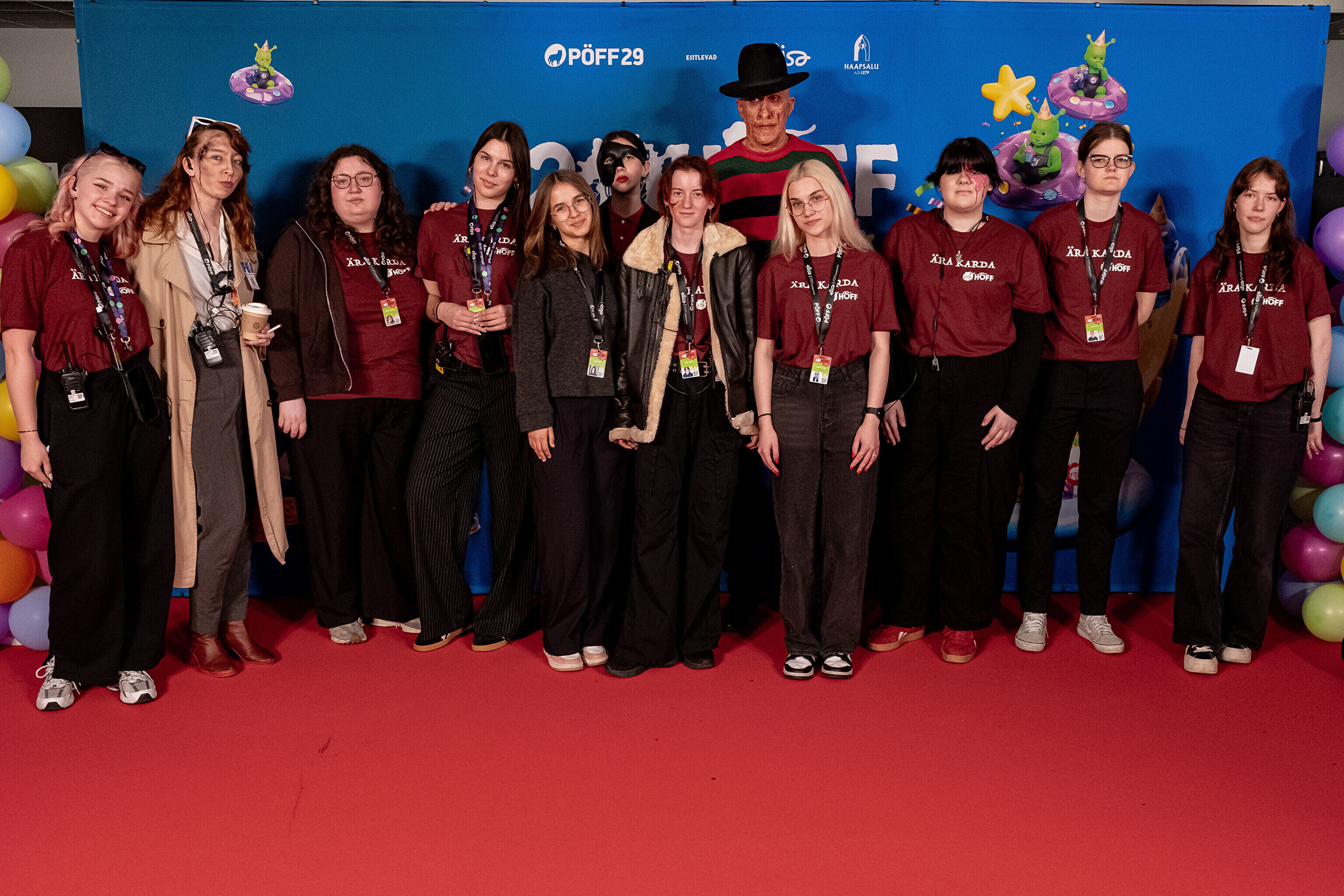 На кроваво-красной дорожке, развернутой в культурном центре, гостей встречал ночной кошмар с улицы Пости. Празднику предшествовало костюмированное шествие, в котором приз за лучший костюм достался "Человеку без кожи".
