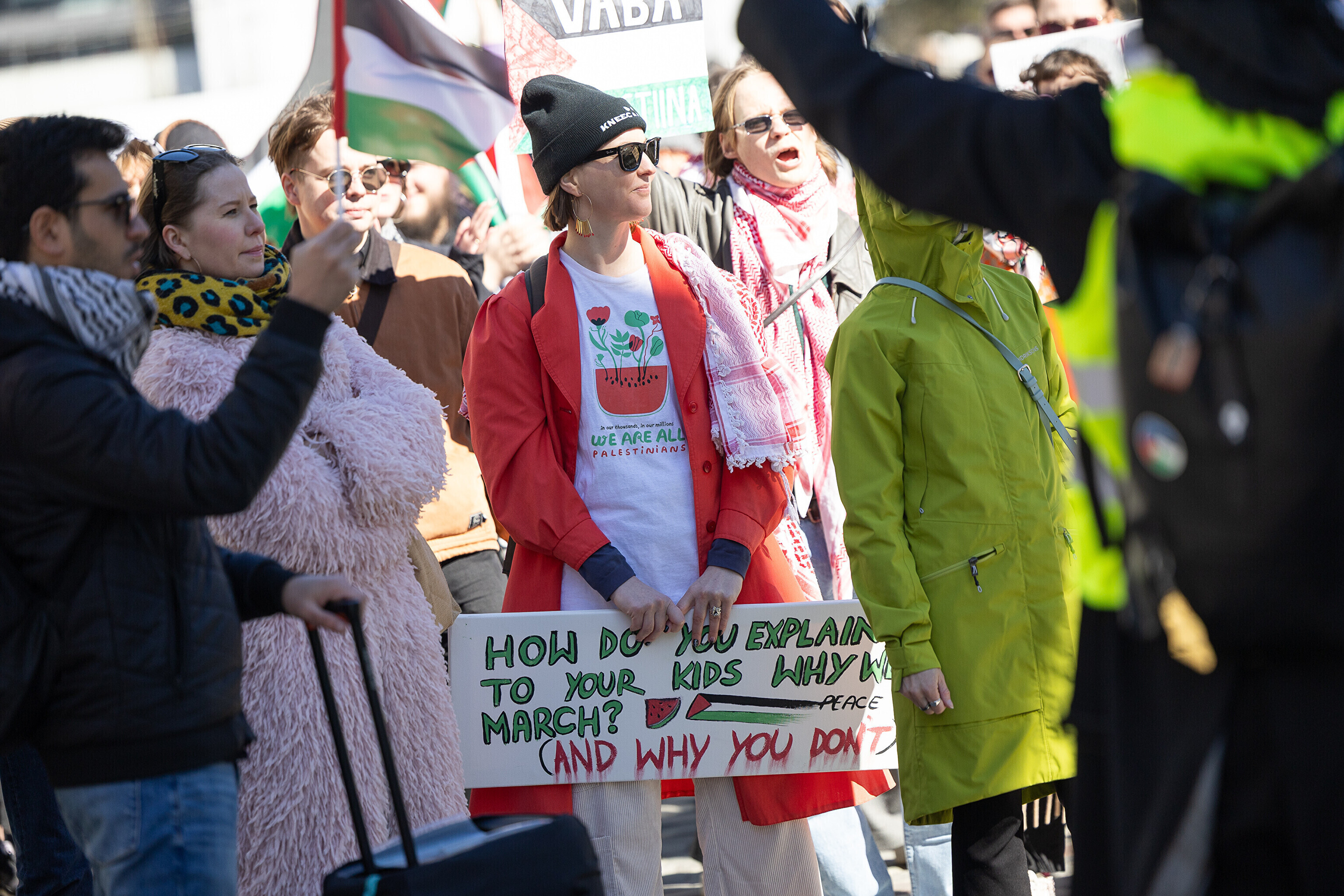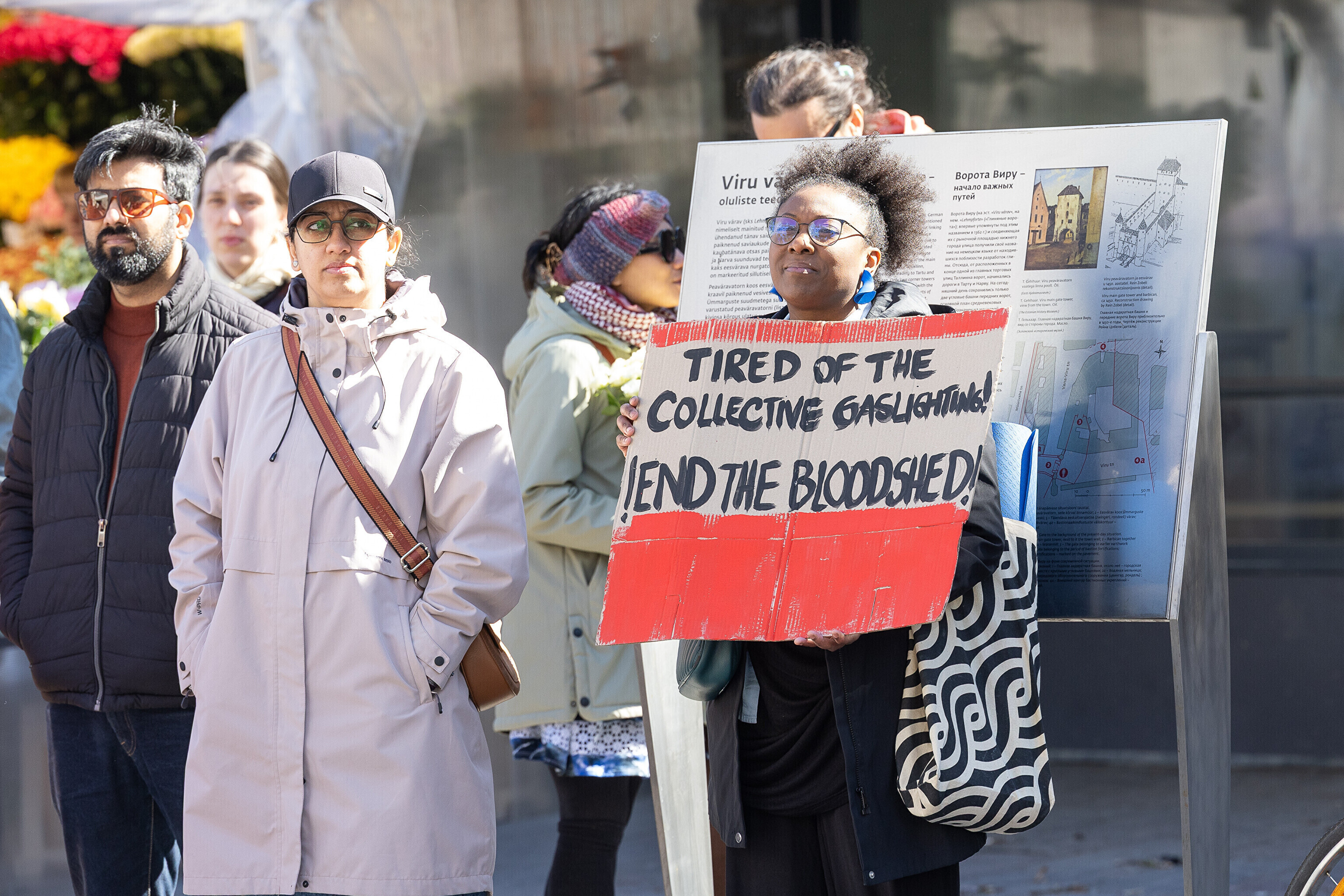 В описании события организаторы заявили, что израильские атаки представляют собой "величайшую гуманитарную катастрофу нашего времени". Организаторы акции также подчеркнули, что международное право должно применяться ко всем сторонам конфликта, а внешняя политика Эстонии — оставаться последовательной и строиться на международных нормах. При этом они добавили, что одинаково осуждают антисемитизм, исламофобию и все другие формы расизма.