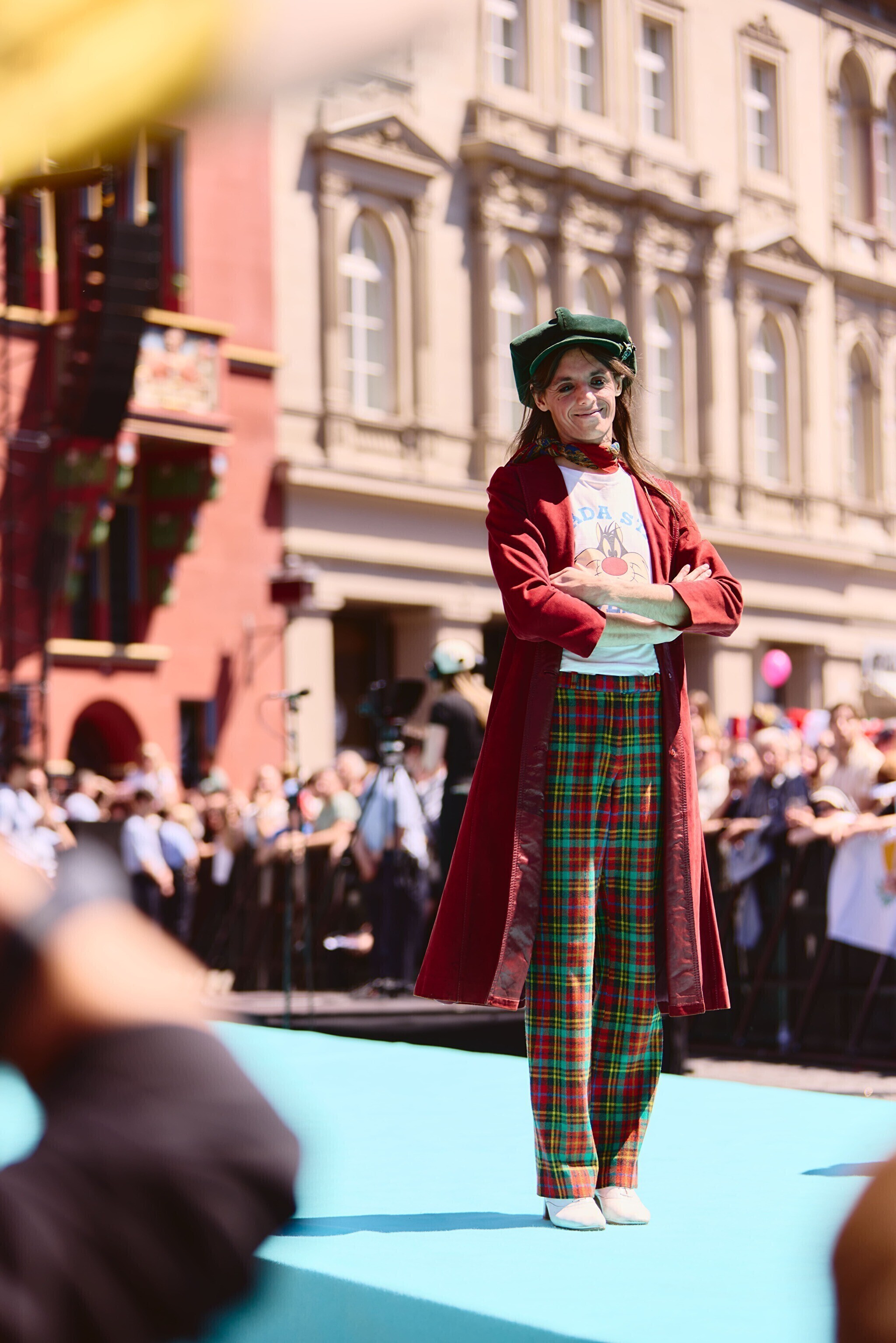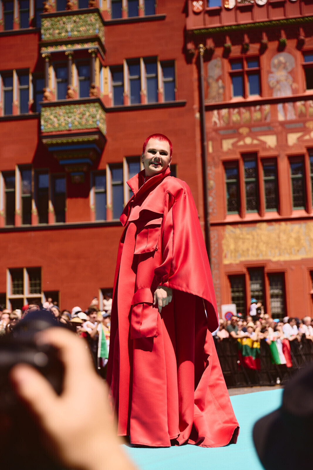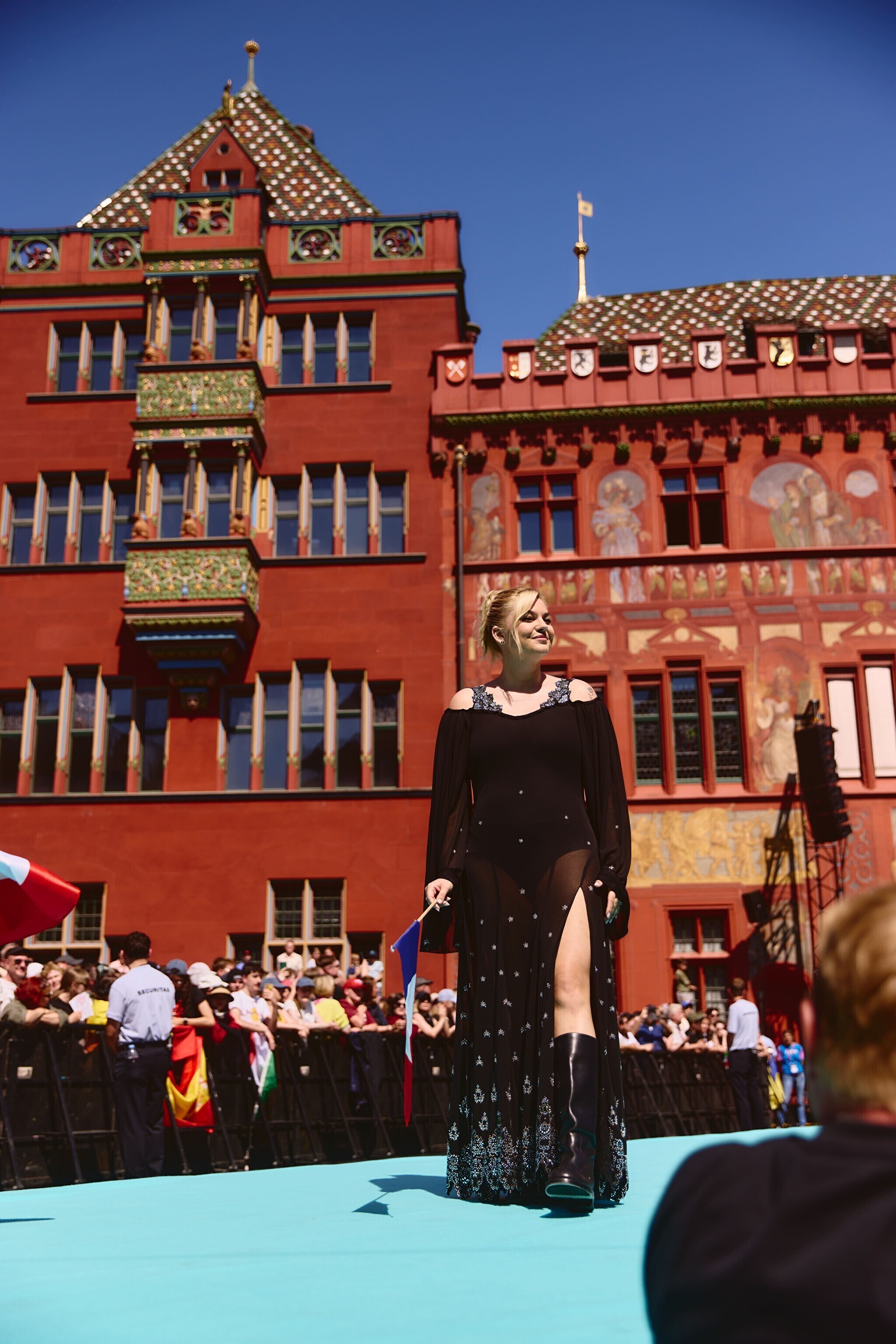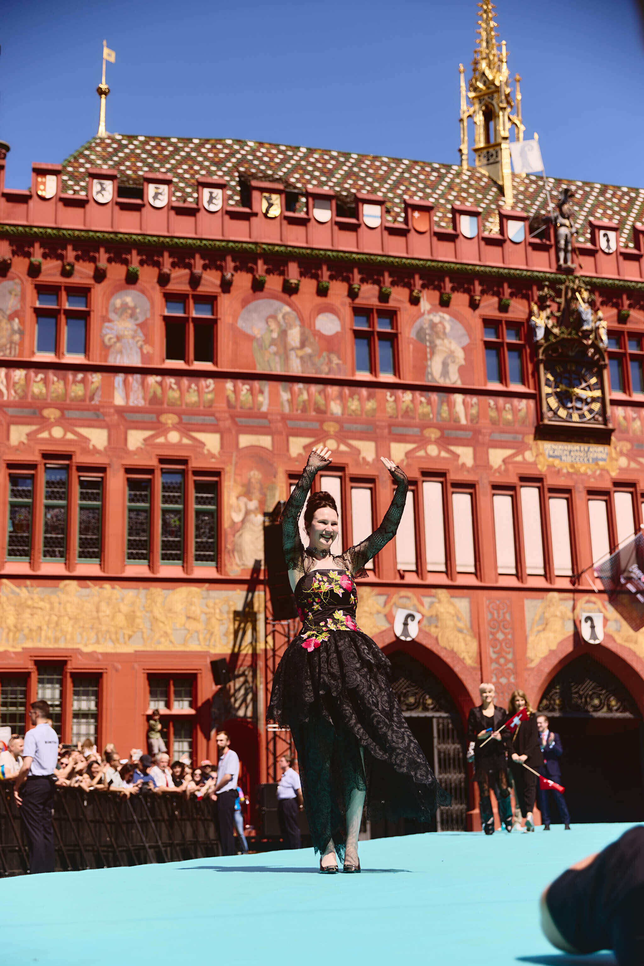 На них они в сопровождении духовых оркестров, музыкантов карнавальных обществ и фольклорных групп переехали по мосту через Рейн, с которого открывается один из красивейших видов на средневековый Базель к выставочному центру. Здесь конкурсантов ждали журналисты и торжественный прием.