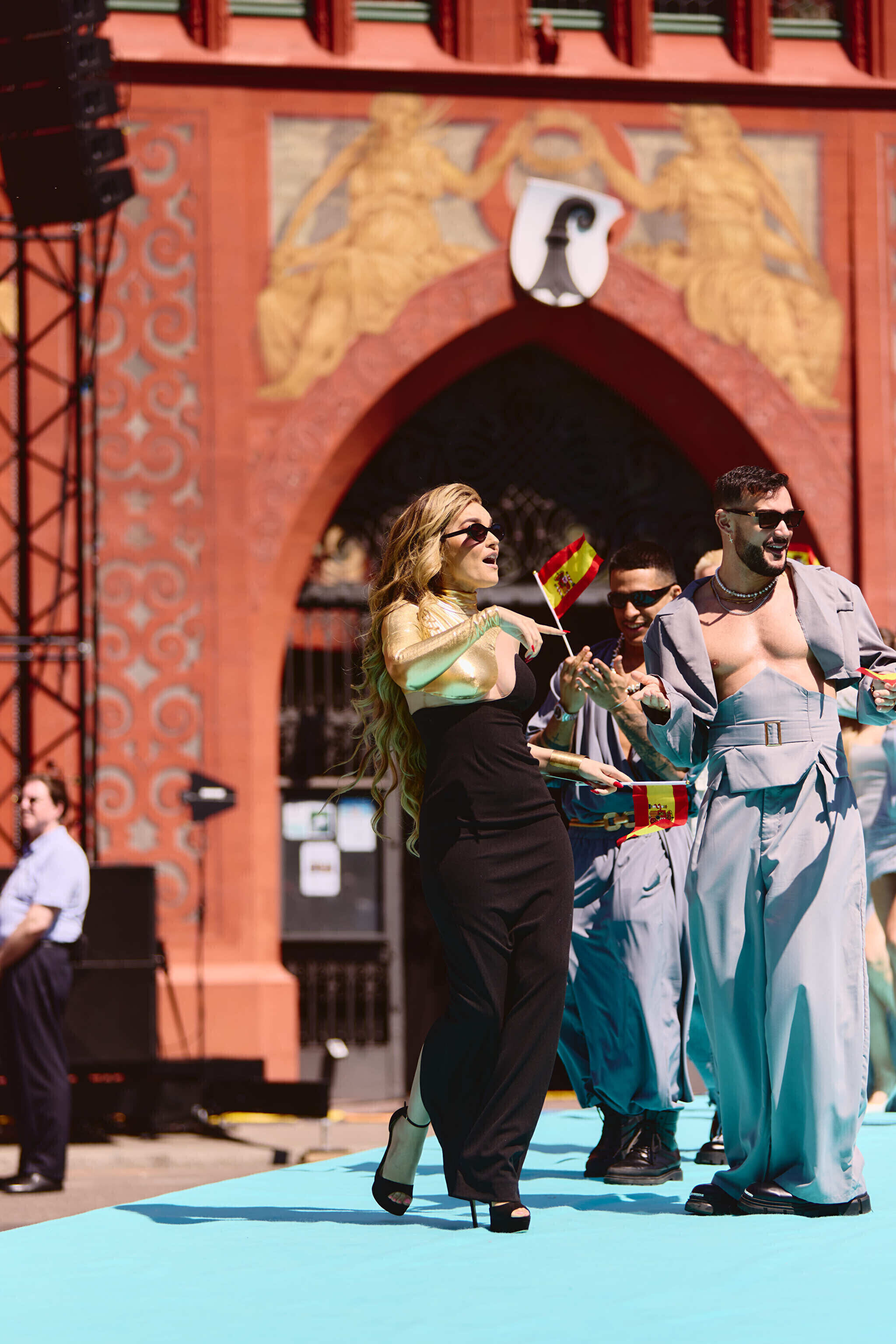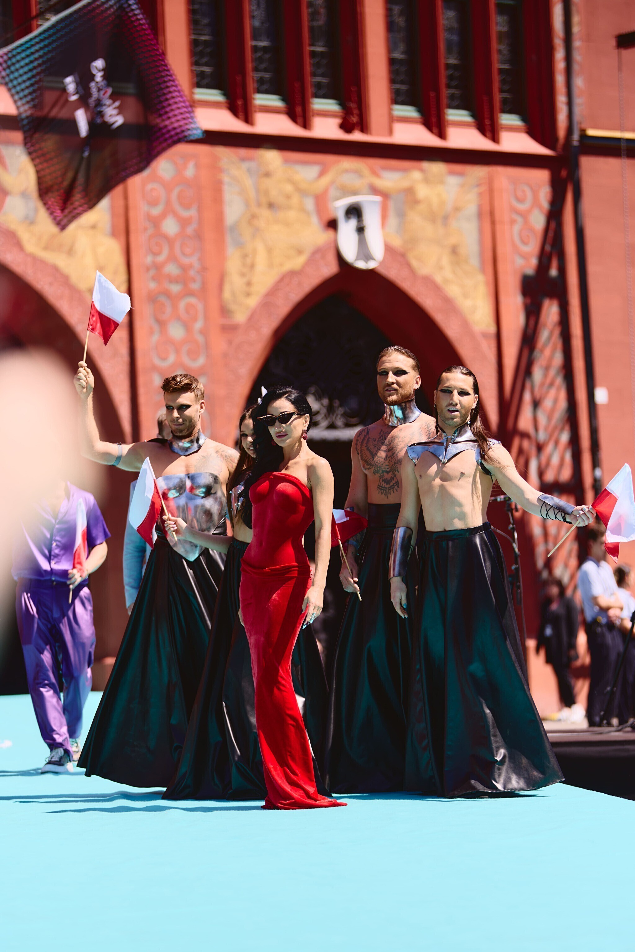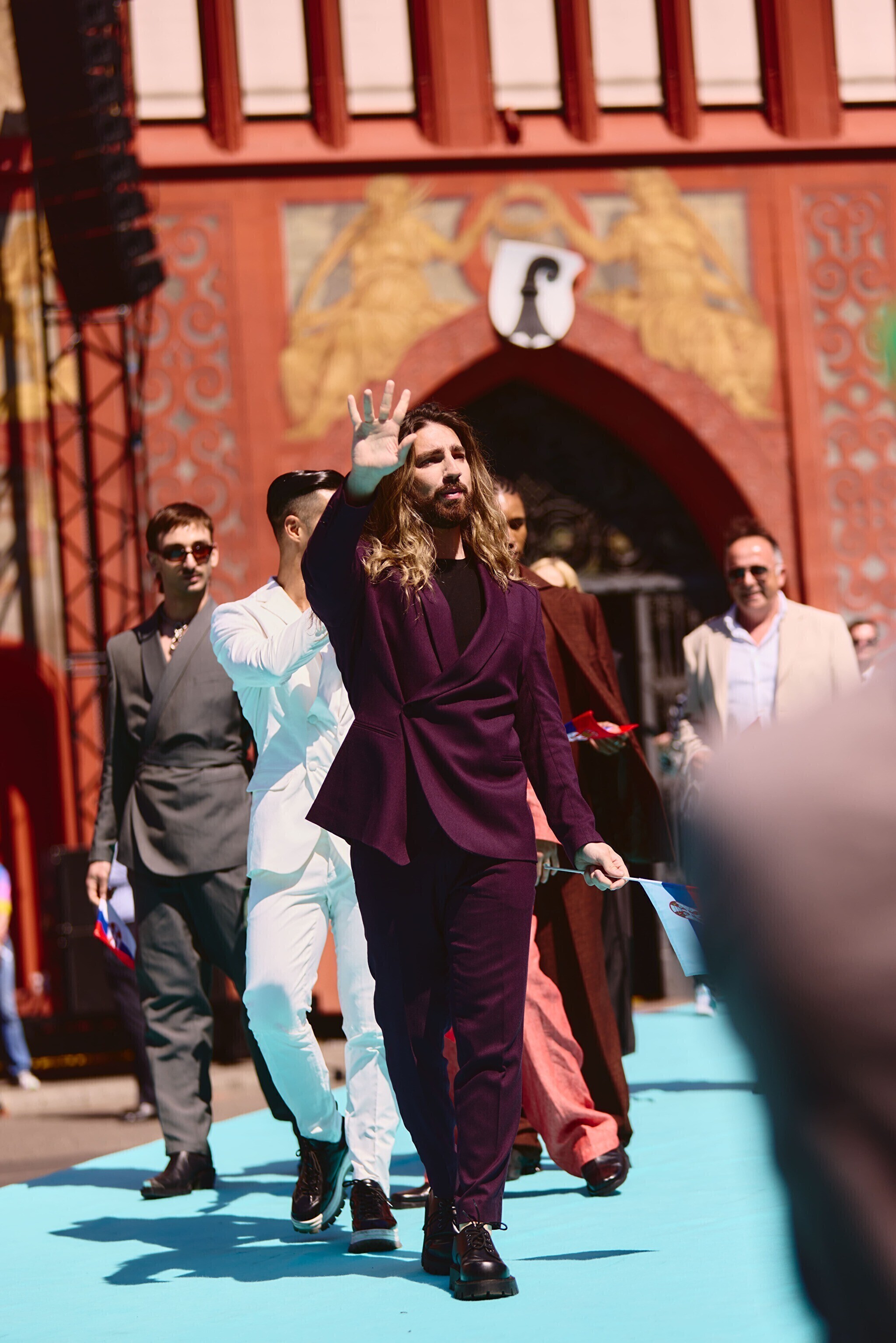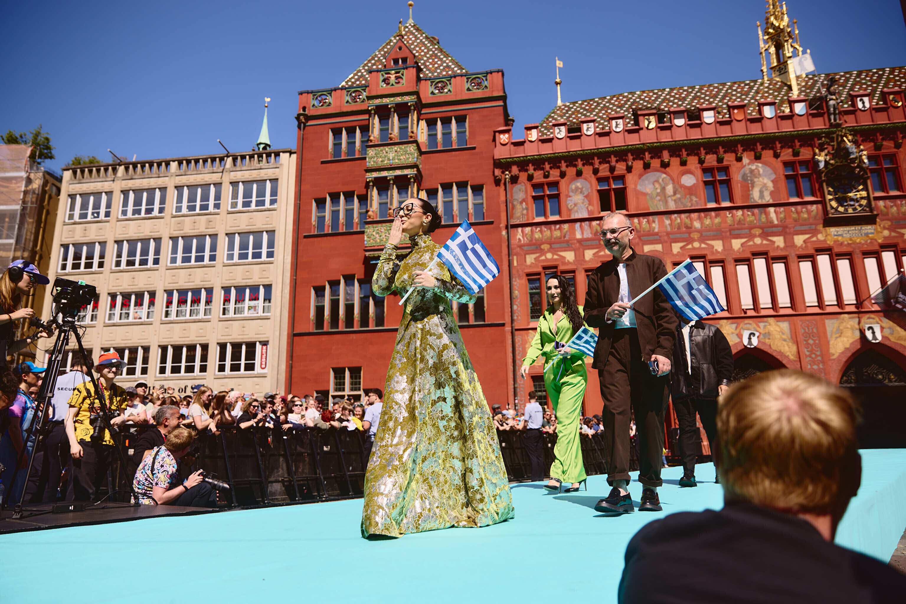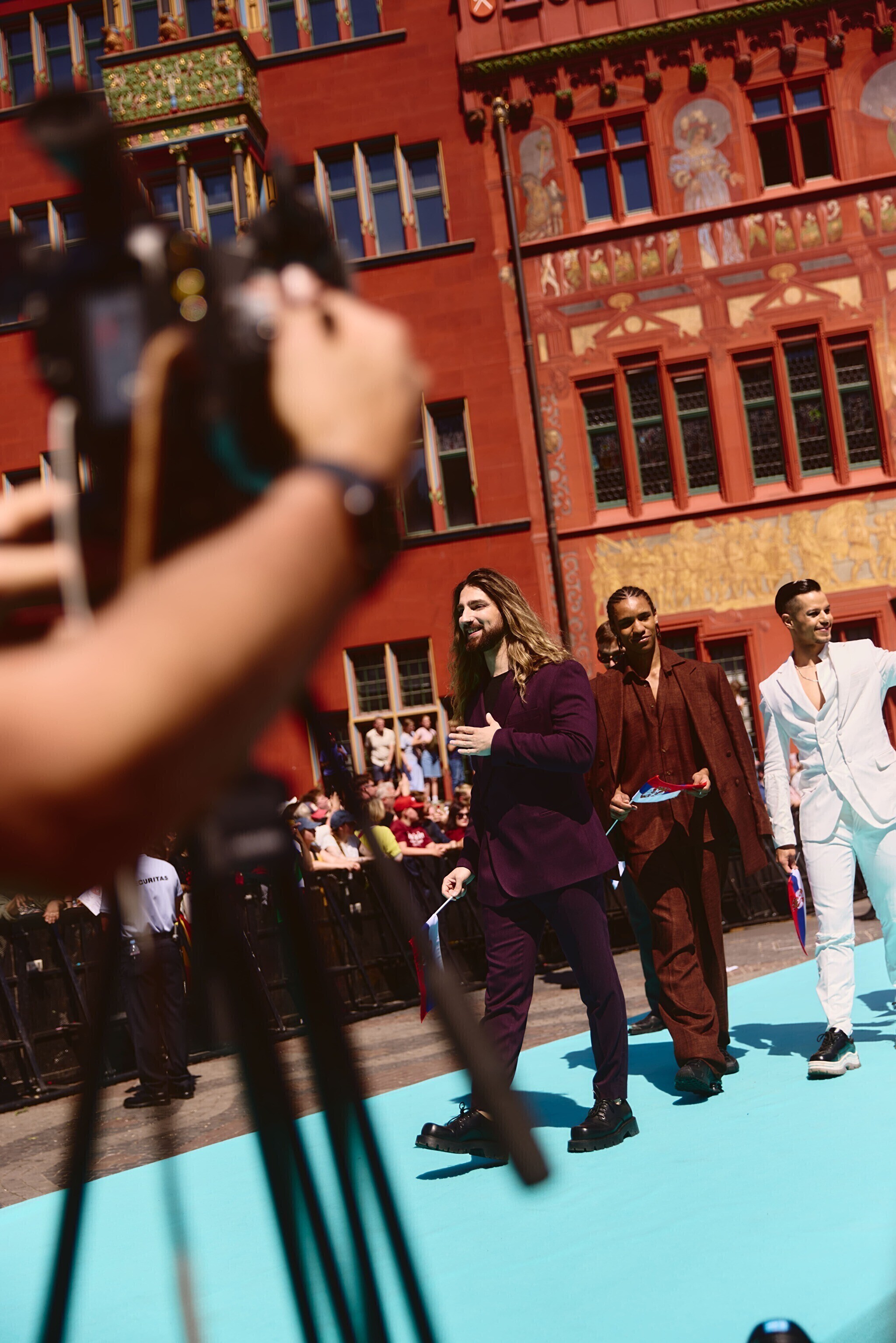 Шествие началось на главной площади города, где представителей 37 стран, принимающих участие в нынешнем конкурсе, приветствовали городские власти и заполнившие площадь фанаты. Затем исполнители и члены официальных делегаций сели в олдтаймеры или в старинные трамваи, передает Deutsche Welle.